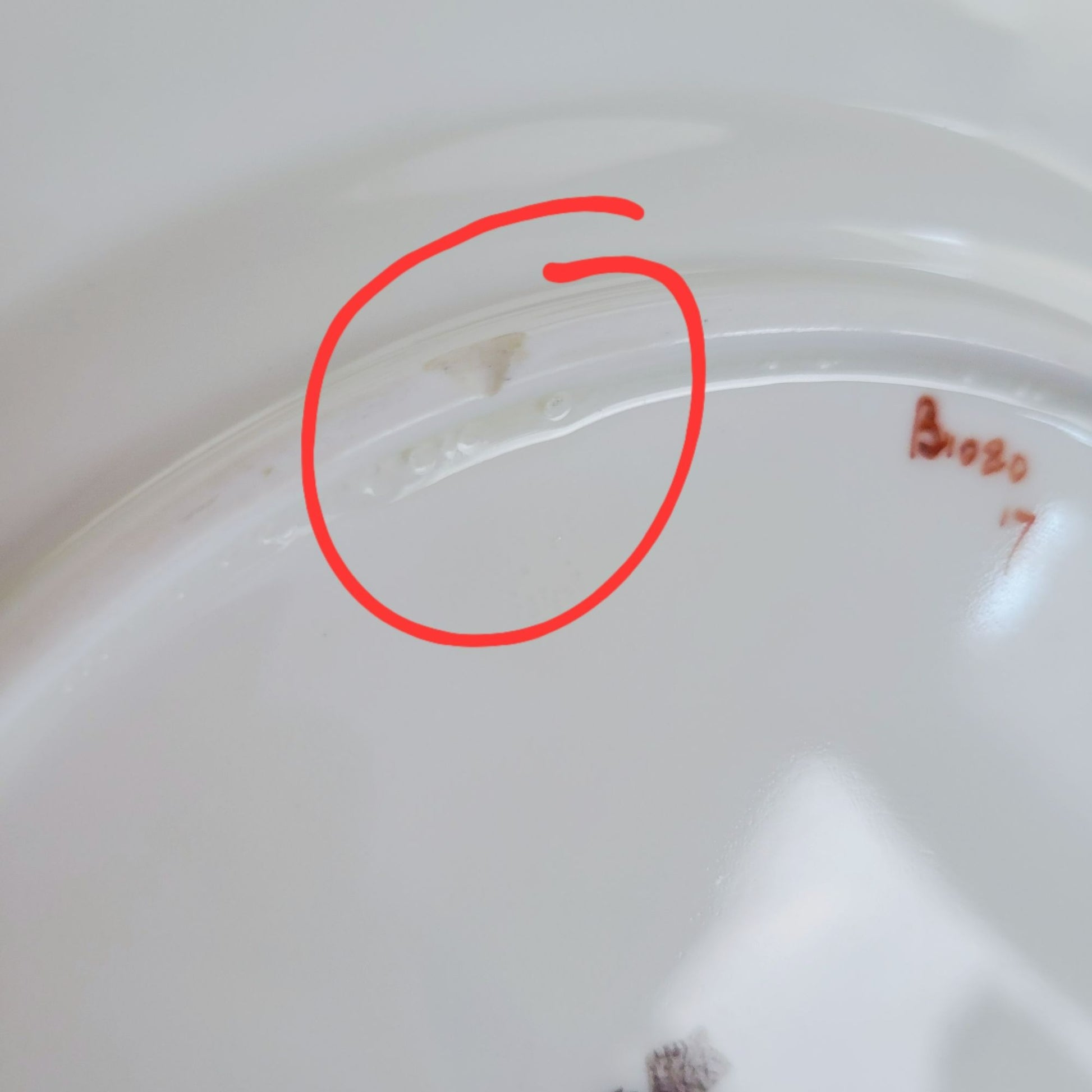 Plates are in good condition with no cracks or chips. There is a small chip out of the underside foot of the plate (see photo).