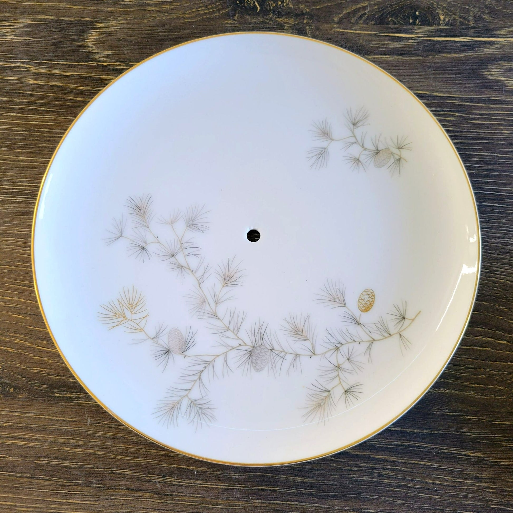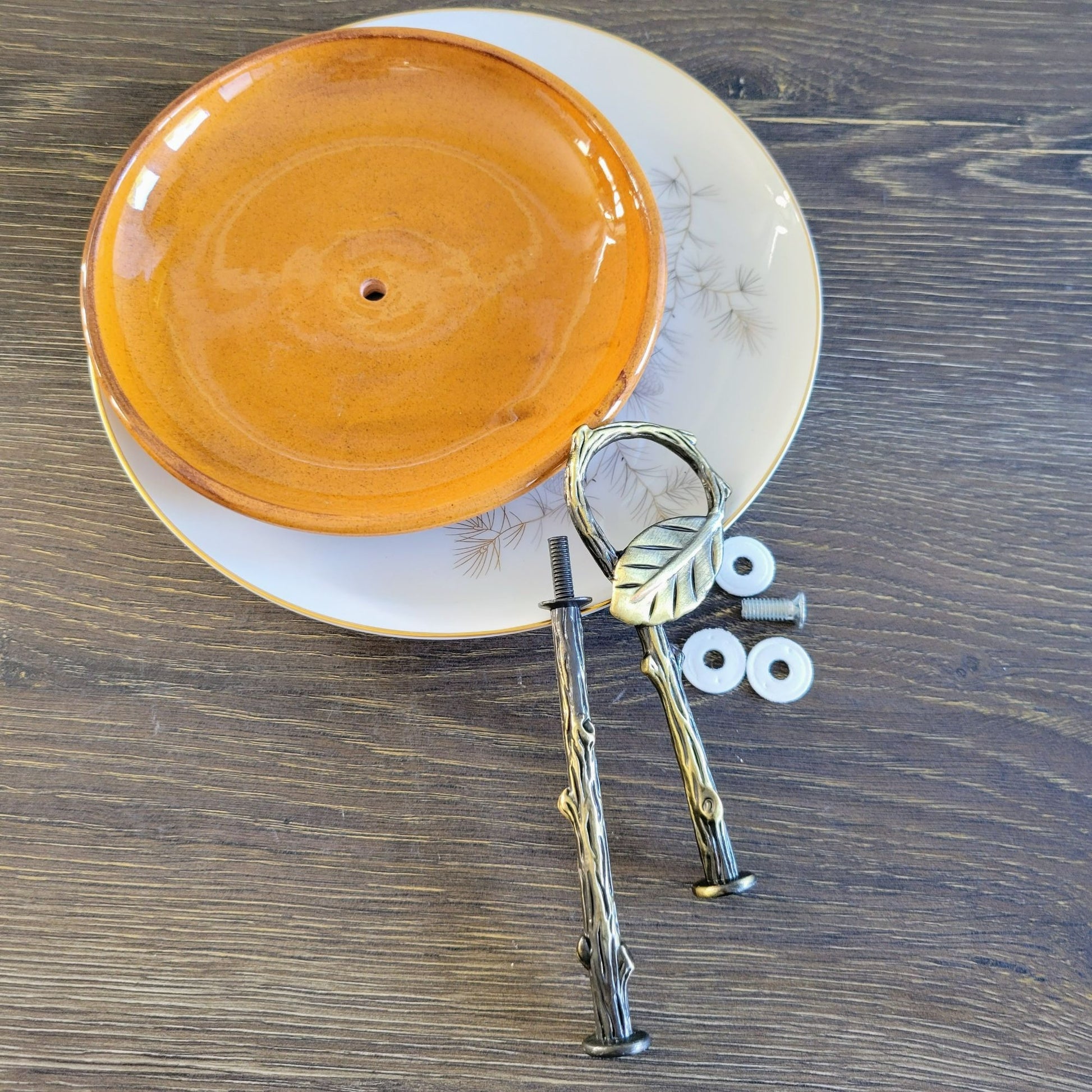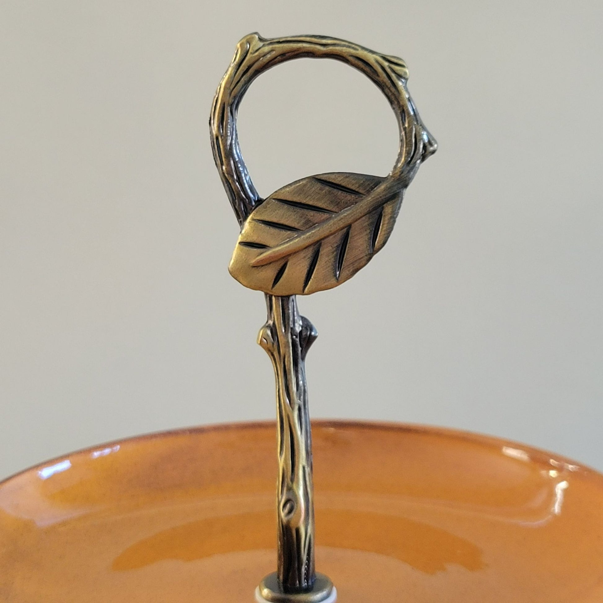 Mismatched 2 Tiered Dessert Stand, Burnt Orange w/ Pinecone & Branch Design