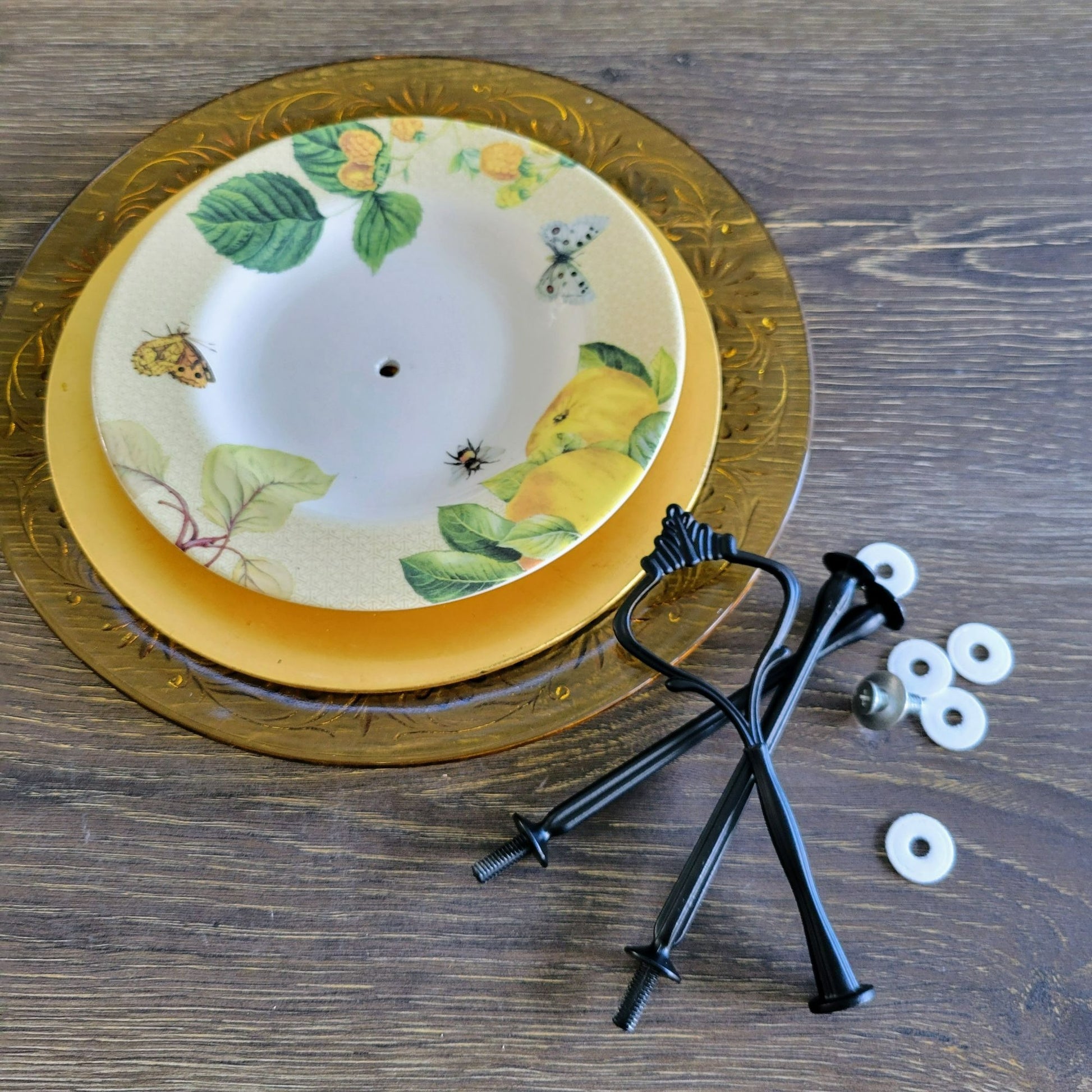 Dessert stand is designed, hand-drilled and assembled by Seller using vintage pieces. Stand will be shipped disassembled for easy shipping and storage. Instructions for assembly and hardware will be included.