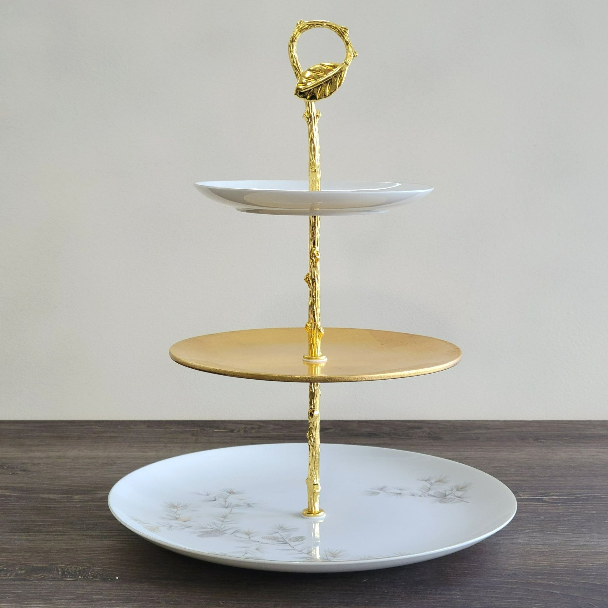 Mismatched 3 Tiered Dessert Stand, Pinecone & Branch Design