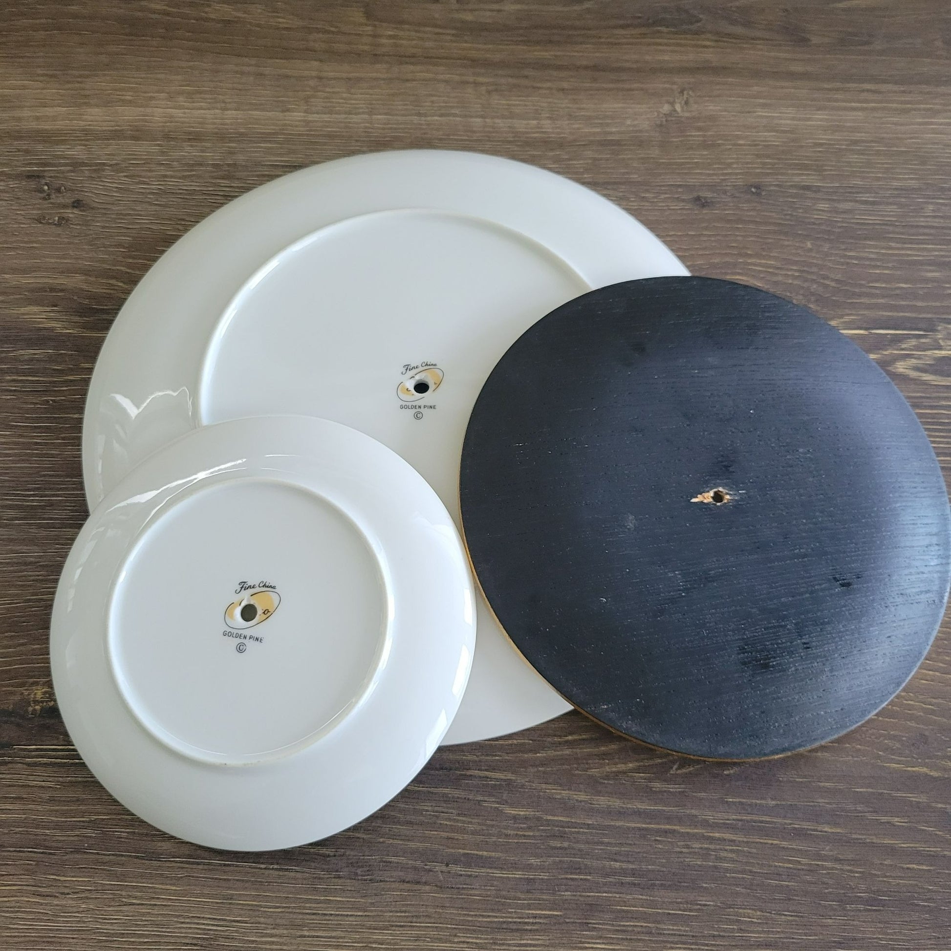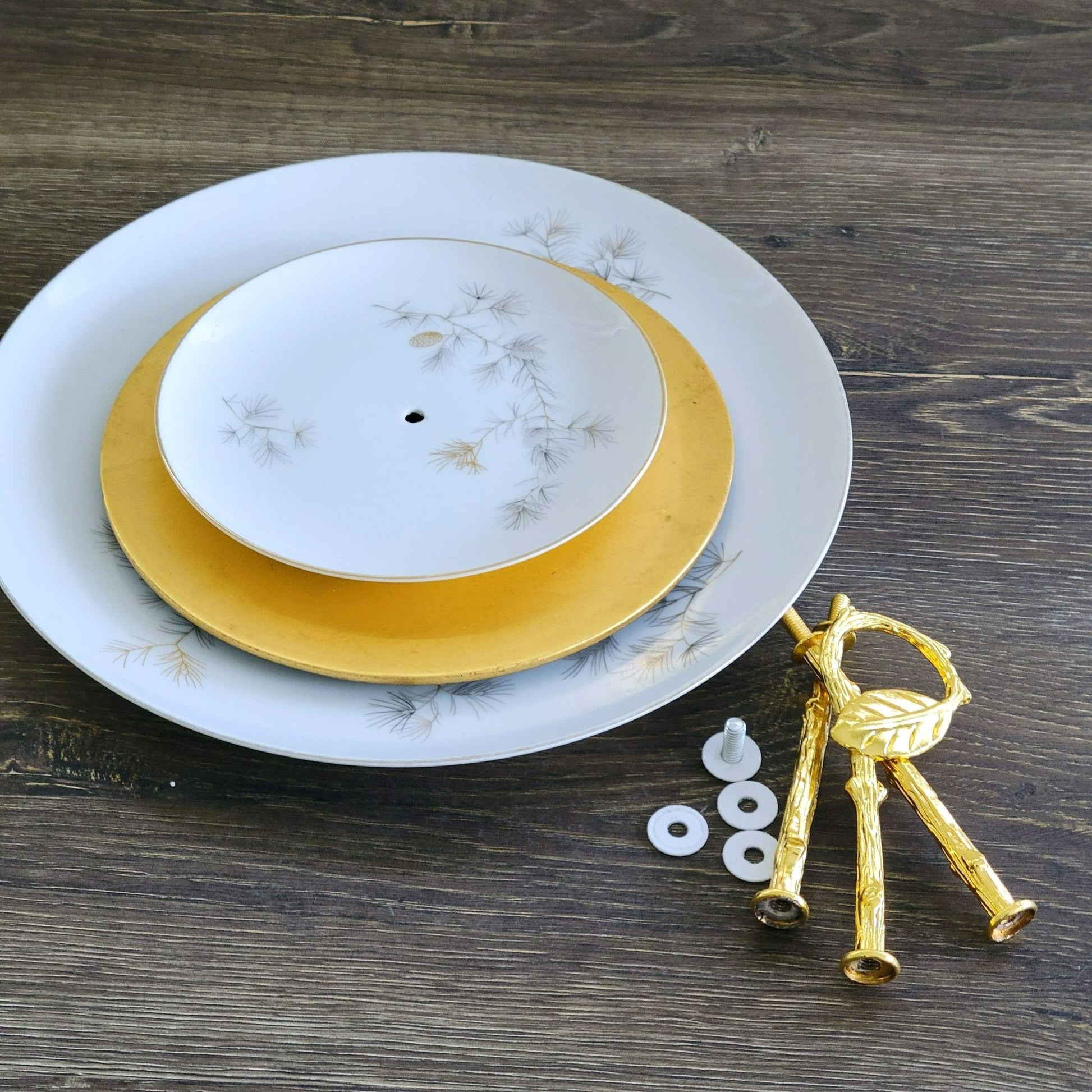 Dessert stand is designed, hand-drilled and assembled by Seller using vintage pieces. Stand will be shipped disassembled for easy shipping and storage. Instructions for assembly and hardware will be included.