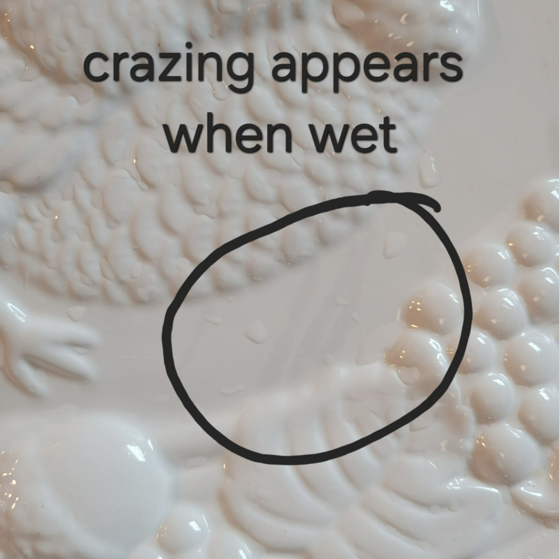 Overall platter is in good condition. There is one small chip (see photo) and when the platter is wet, you can see crazing marks (see photo).