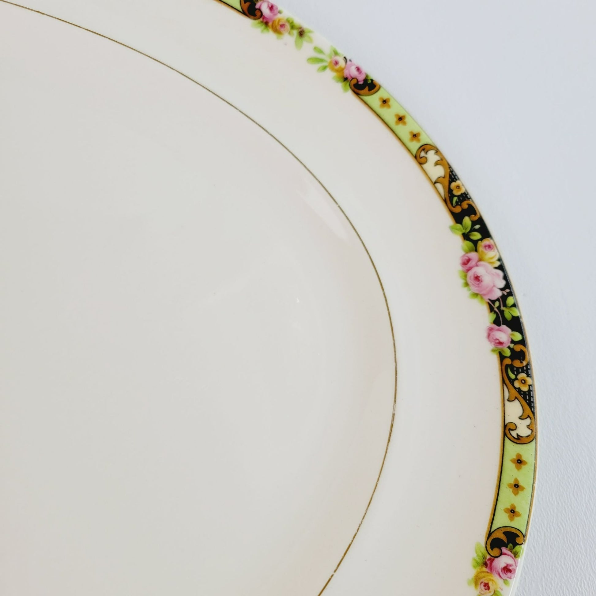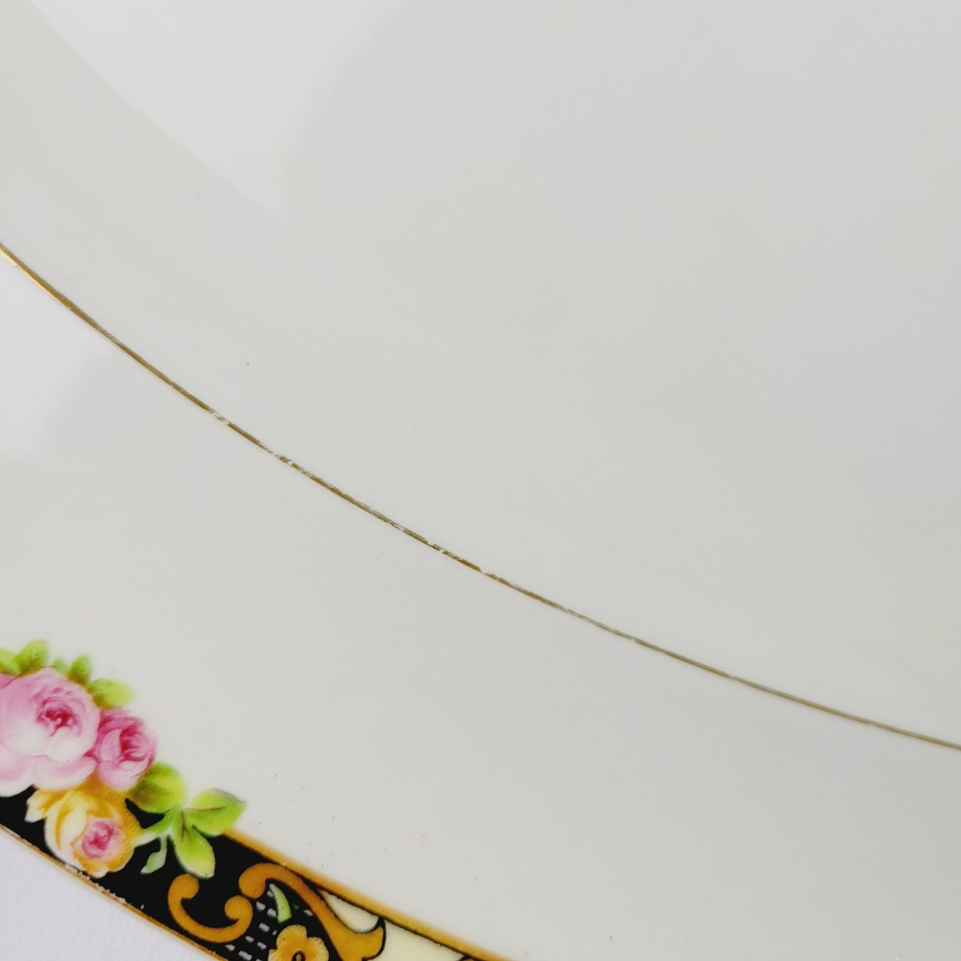 Platter is in good condition with no cracks, chips or crazing. There is wear on the boarder and gold center trim.