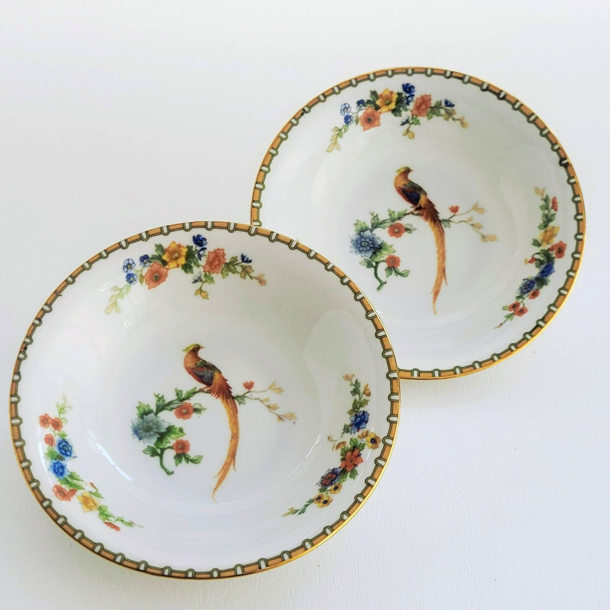 MZ Altrohlau Golden Pheasant Dessert Bowl Set of 2, c.1910s Czechoslovakia