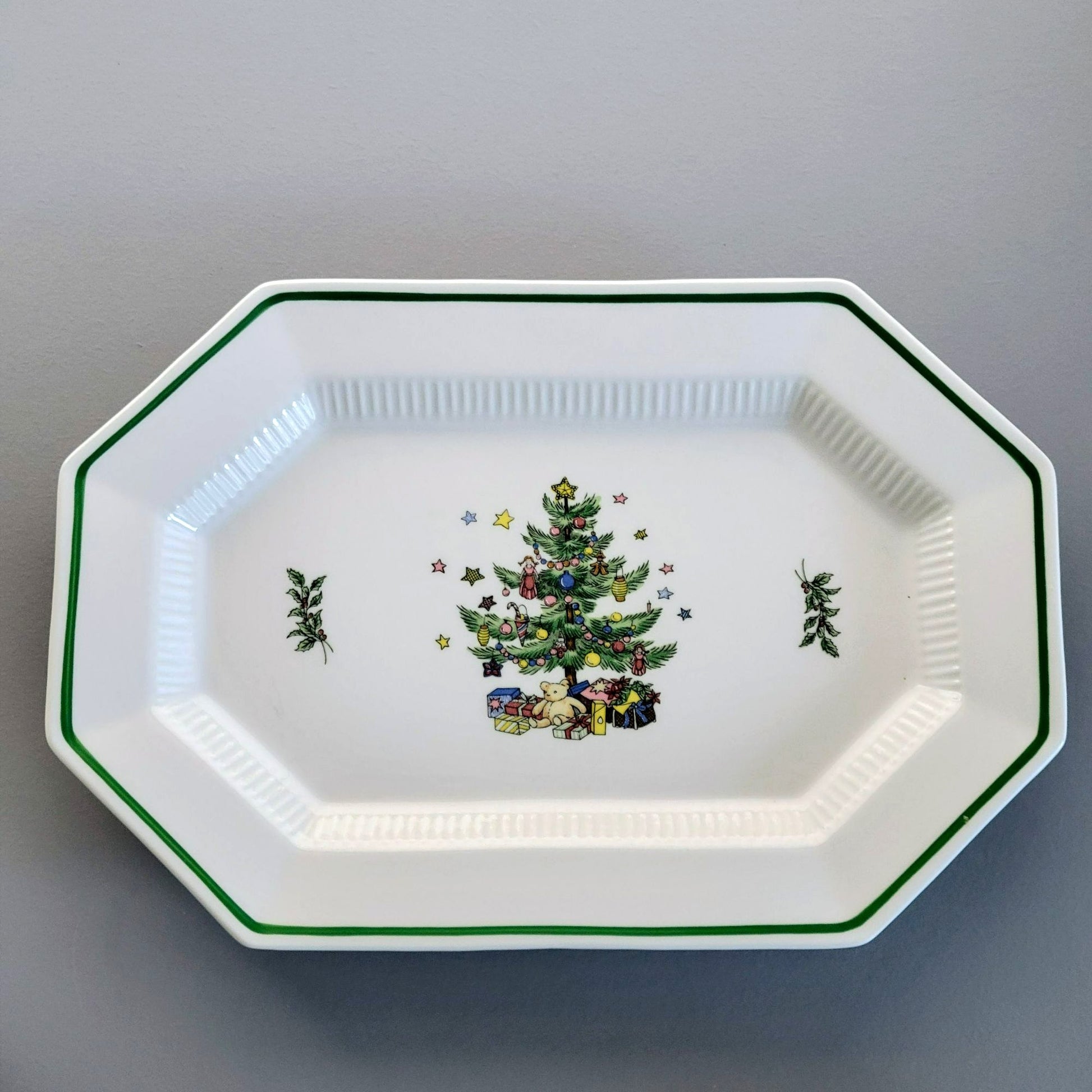 Add a touch of nostalgia to your holiday table with Nikko Christmastime Dishes. These vintage octagonal dinnerware pieces from the Classic Collection (c.1979-83) feature charming presents under the Christmas tree, meticulously crafted in Japan.