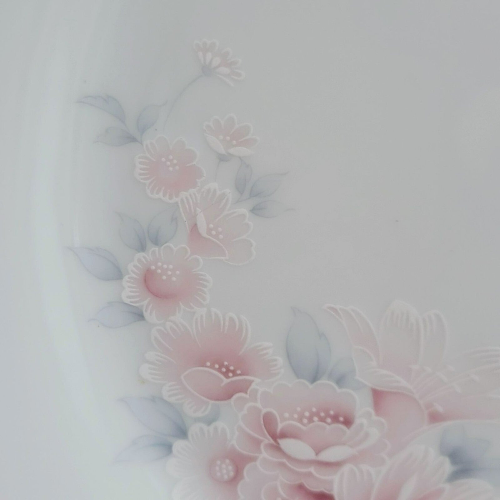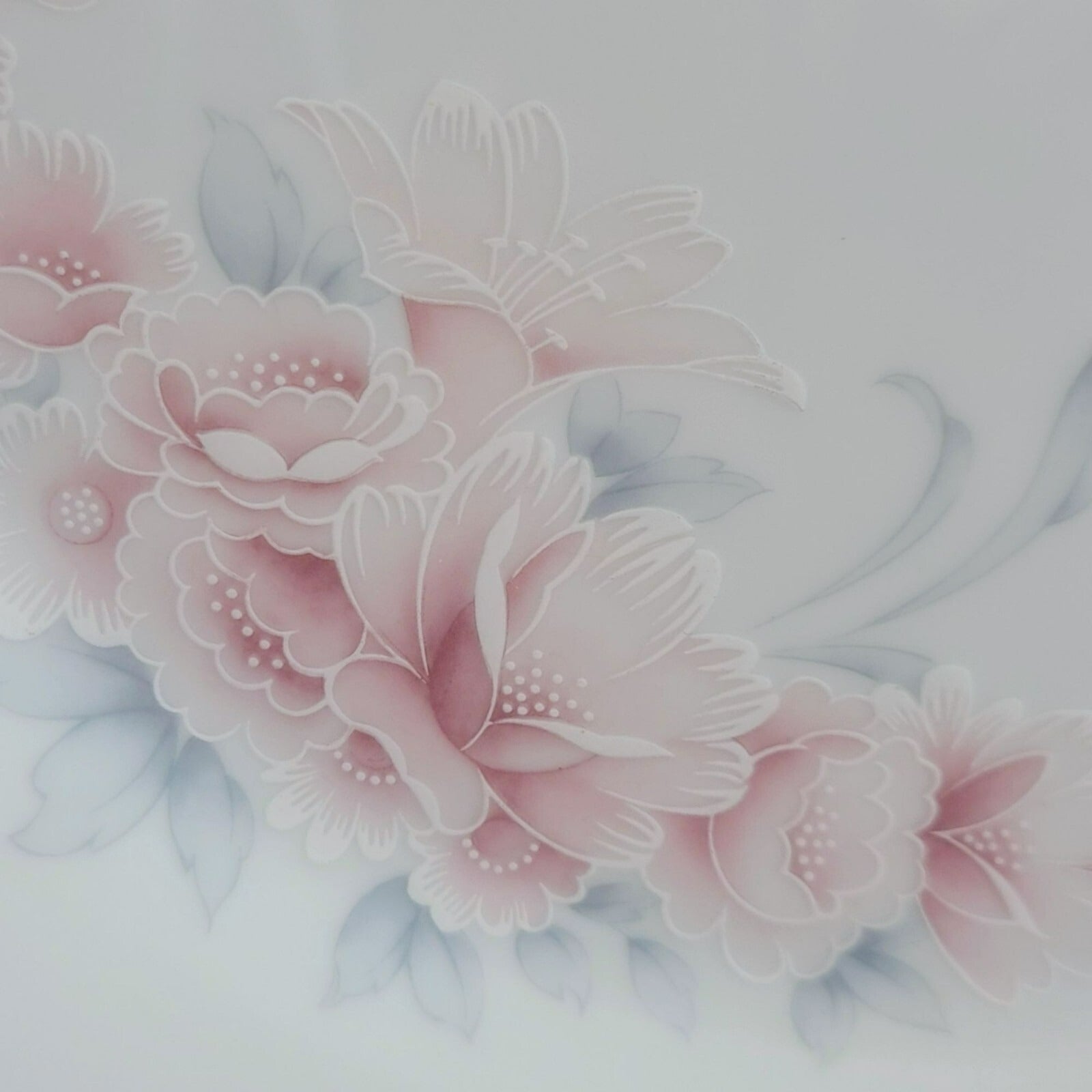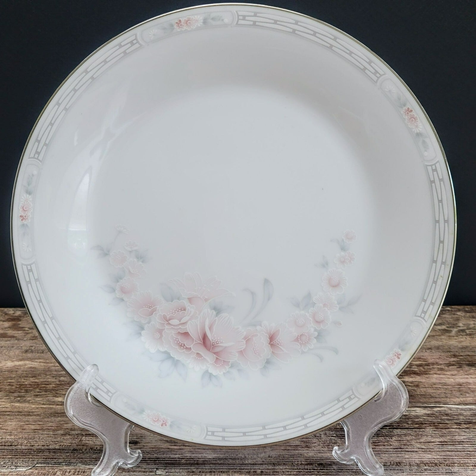 Add a vintage touch to your dining experience with these Noritake Carthage plates. Featuring delicate pale pink flowers and gray leaves, these discontinued shabby chic dishes are perfect for collectors and enthusiasts.