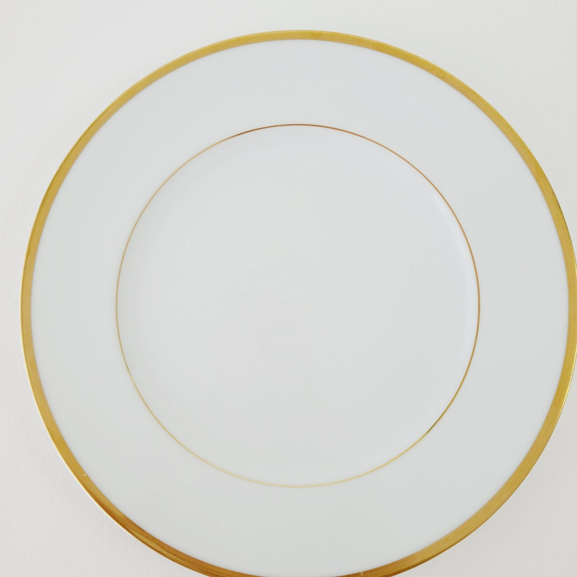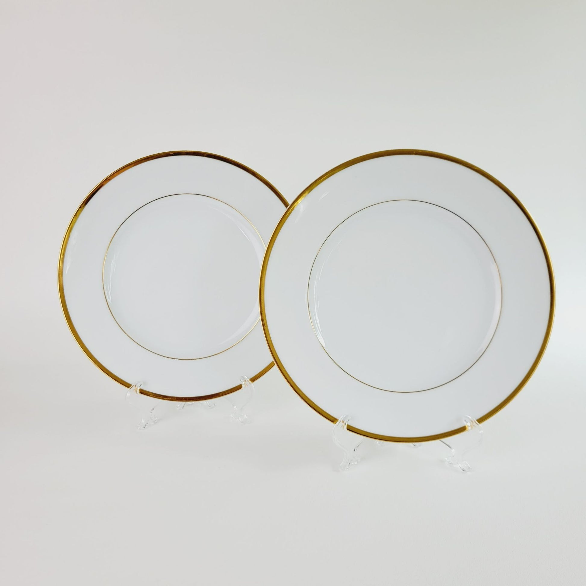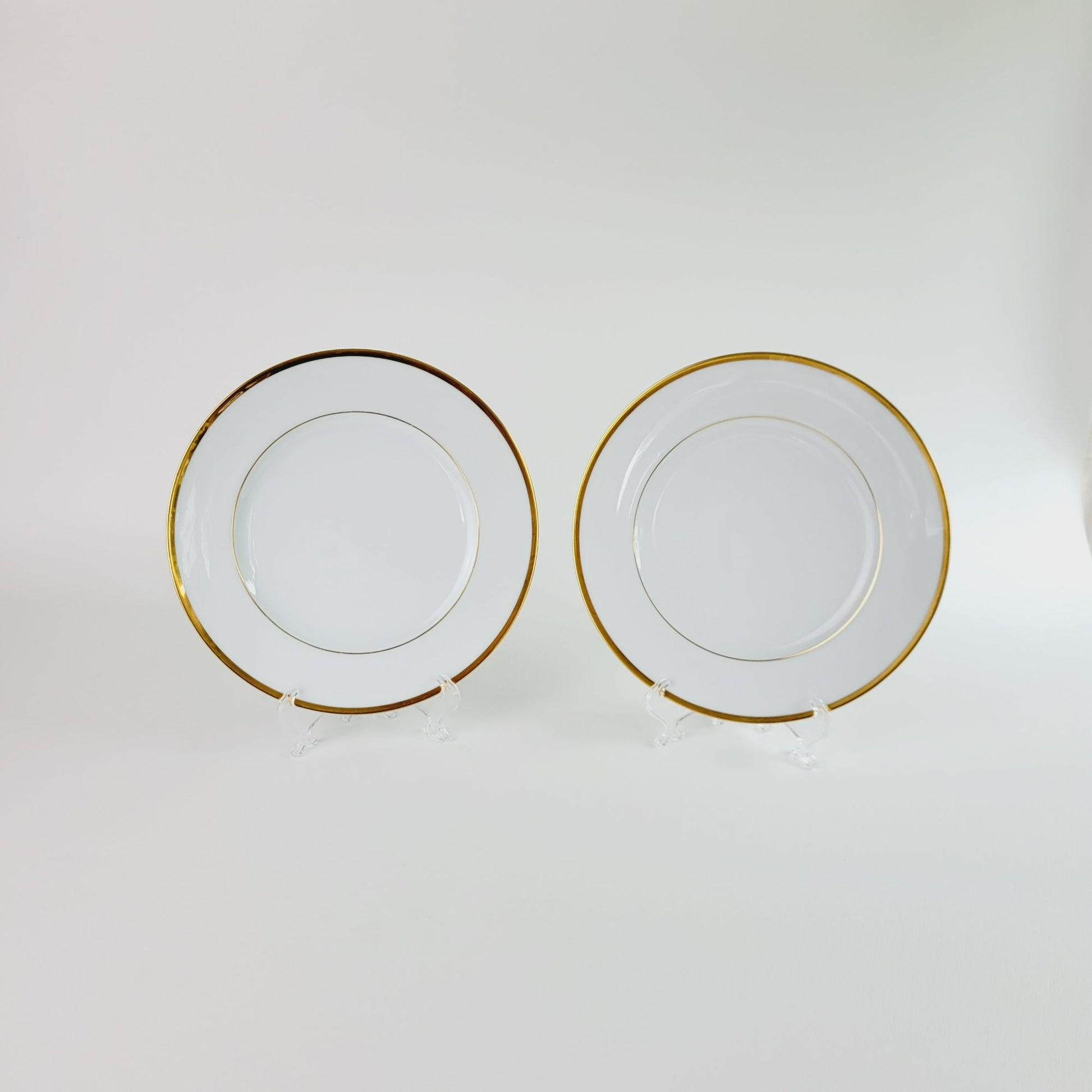 Noritake's sophisticated vintage white and gold Carrie salad plate, measuring 8.25", made in Ireland from bone china, adds elegance to any dinner decor.