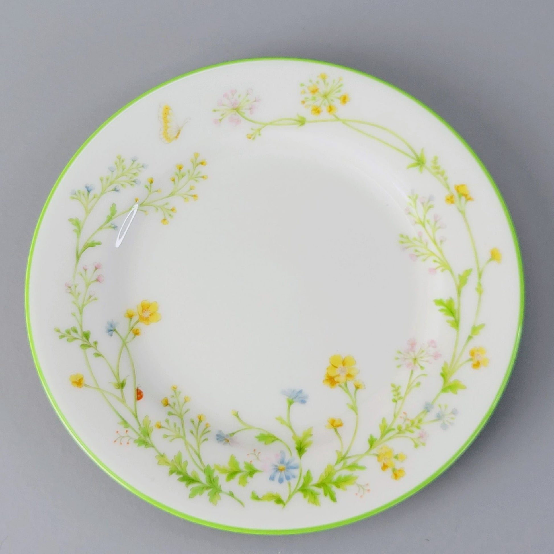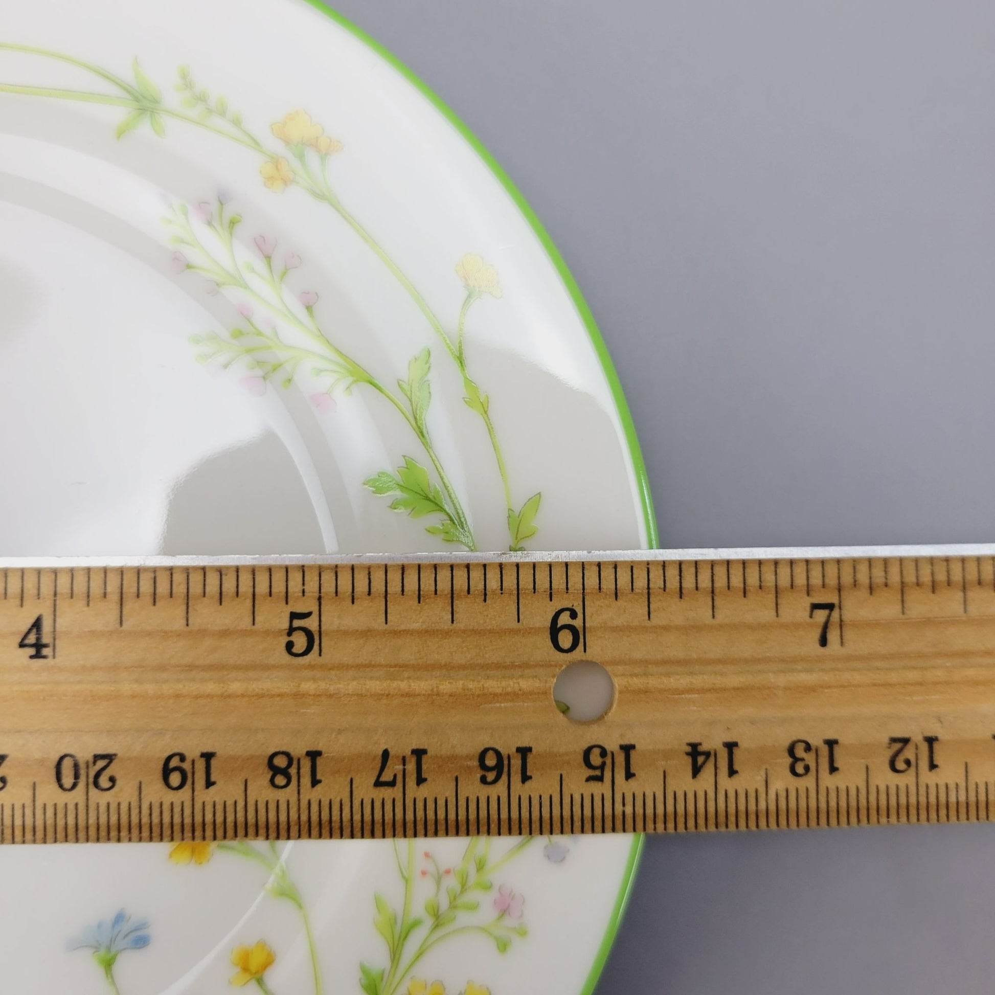 This Noritake Reverie Green Trim Bread Plates features an off-white base with a spring wildflower and butterfly pattern. Ideal for spring or summer dishes, it's made in Japan and measures 6 3/8"".