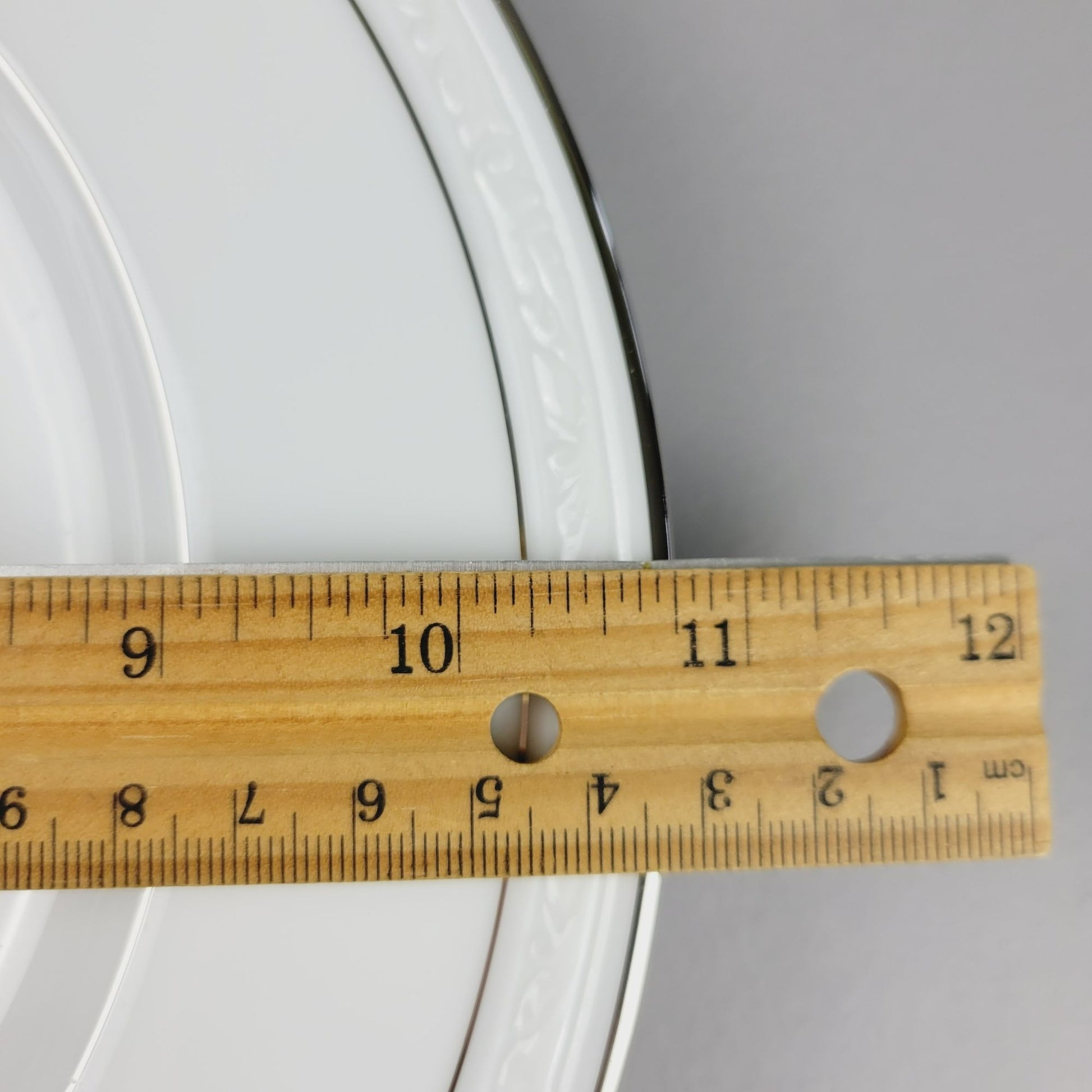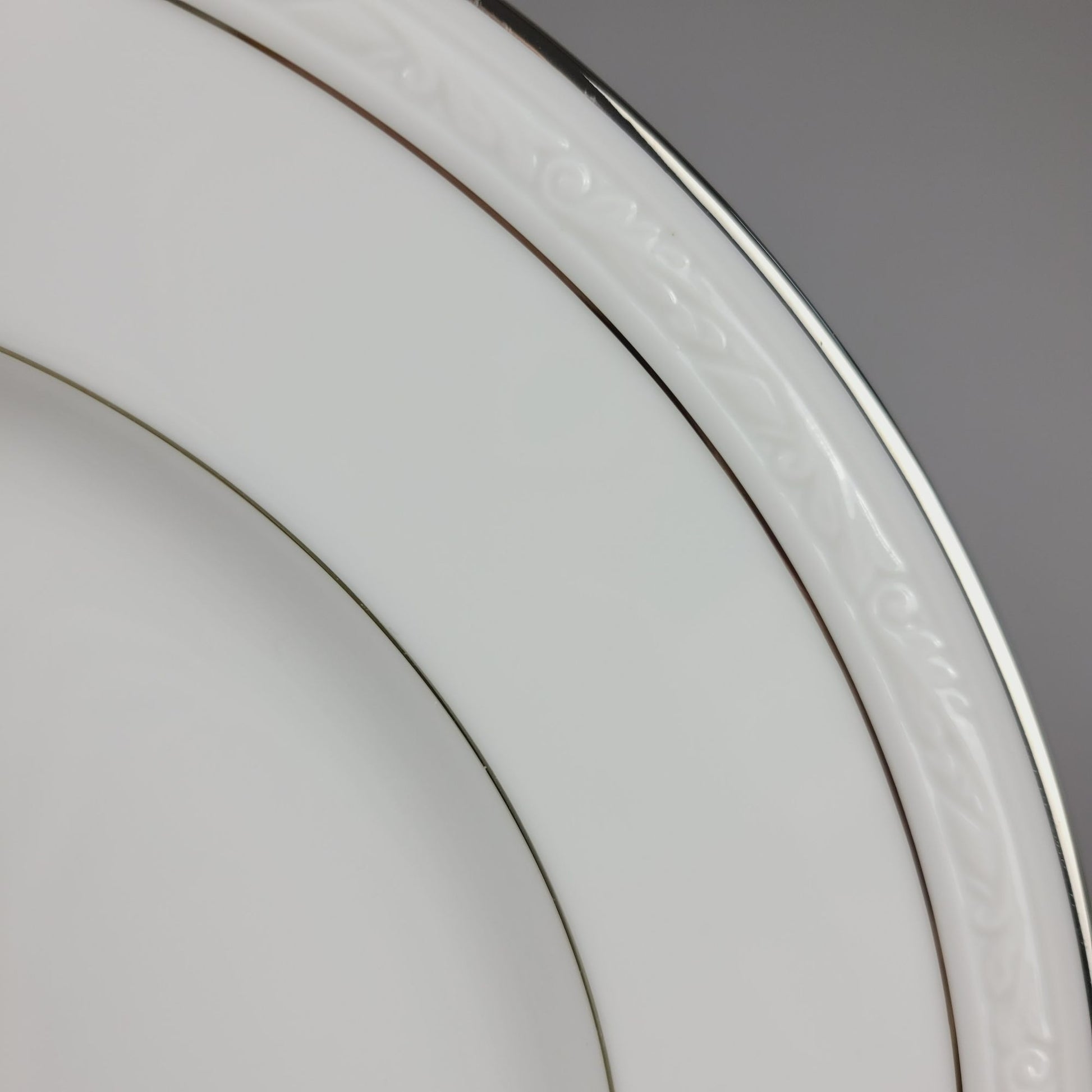 Noritake Stoneleigh Dinner Plate, Embossed Scroll Band & Platinum Rings