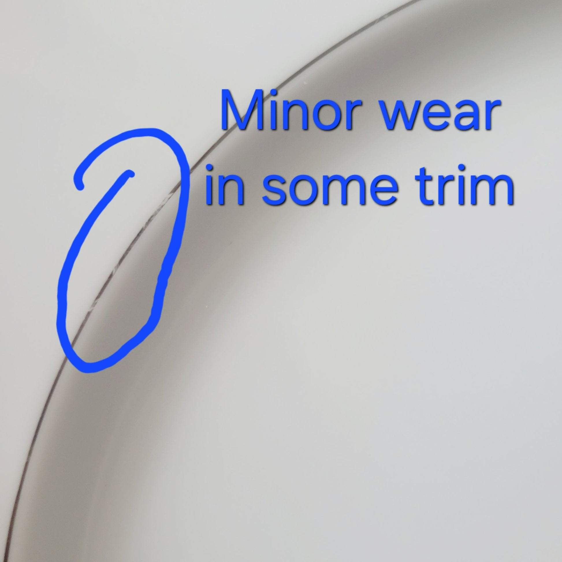 Available plates are in good condition with no cracks, chips or crazing. There is minor wear on the platinum ring (see photo).