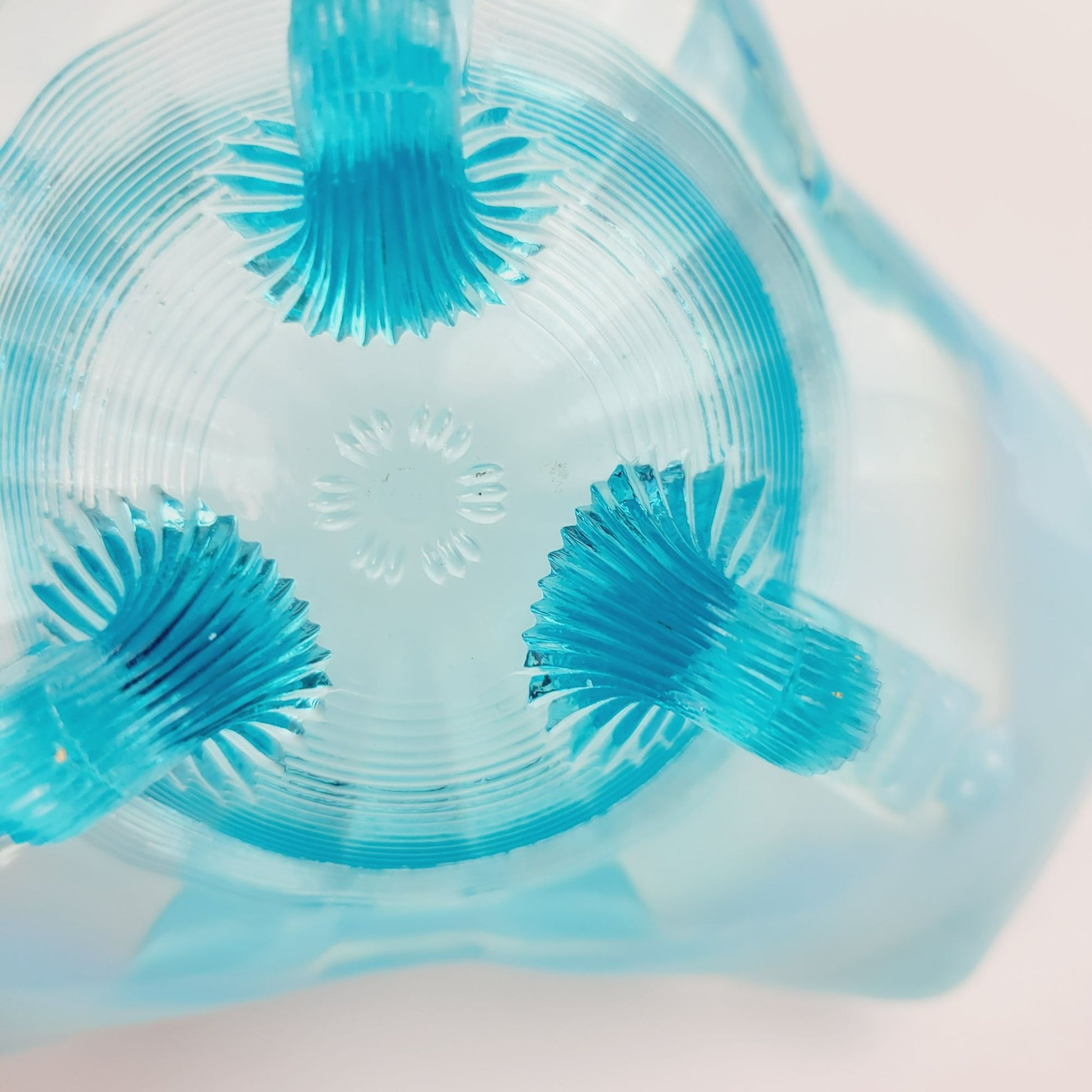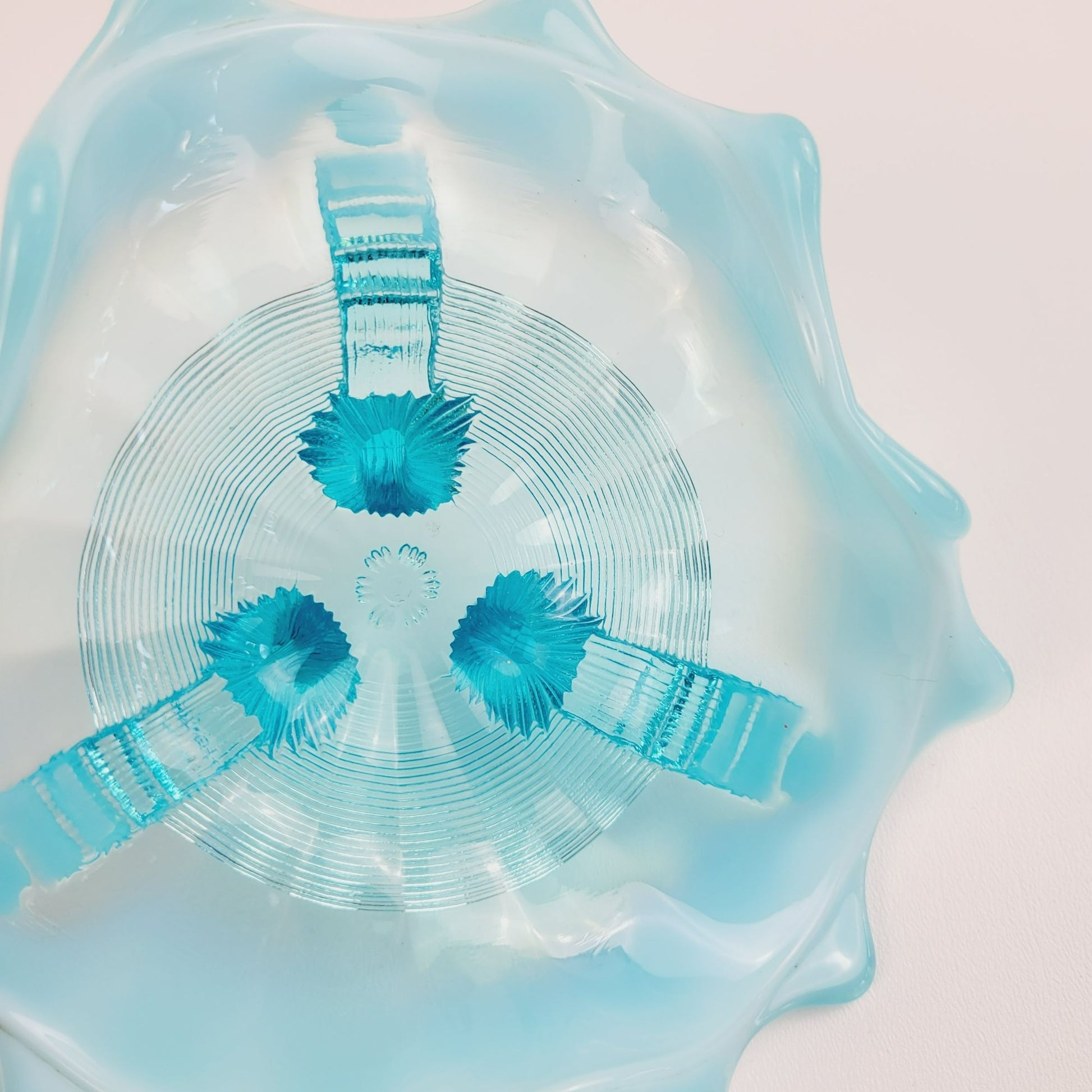 • Blue opalescent glass