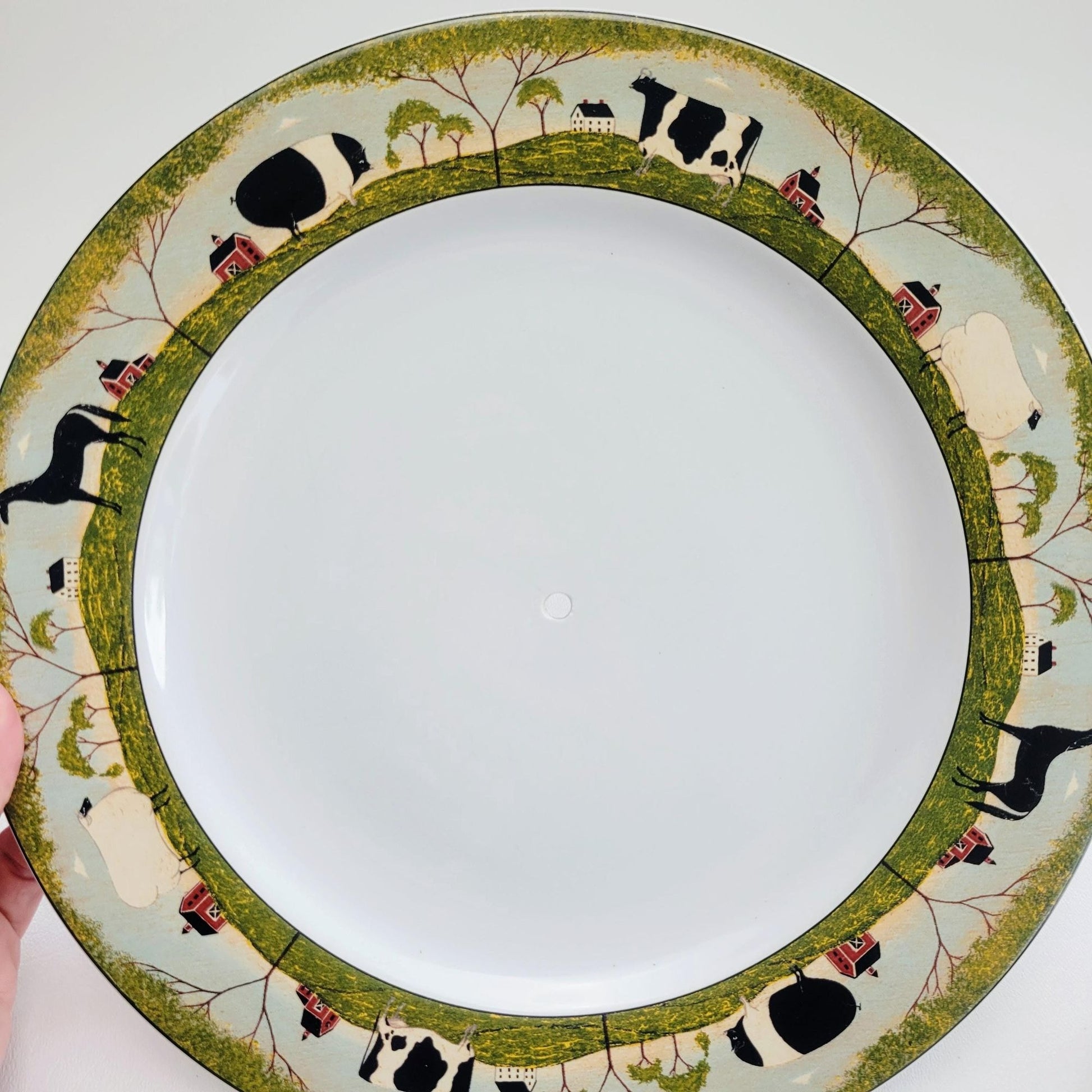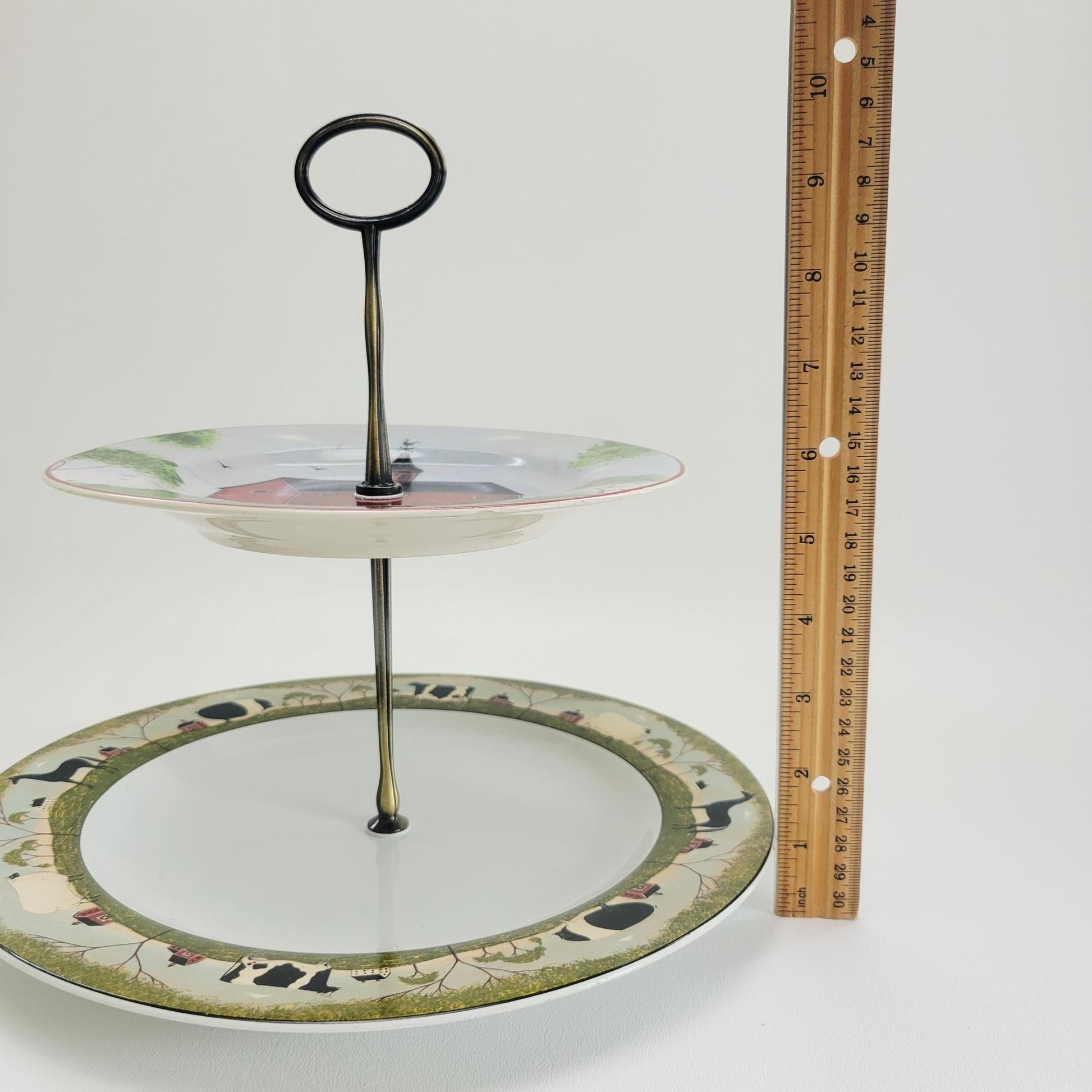 Dessert stand is designed, hand-drilled and assembled by Seller using vintage pieces from Warren Kimble plates. Stand is a one-of-a-kind.