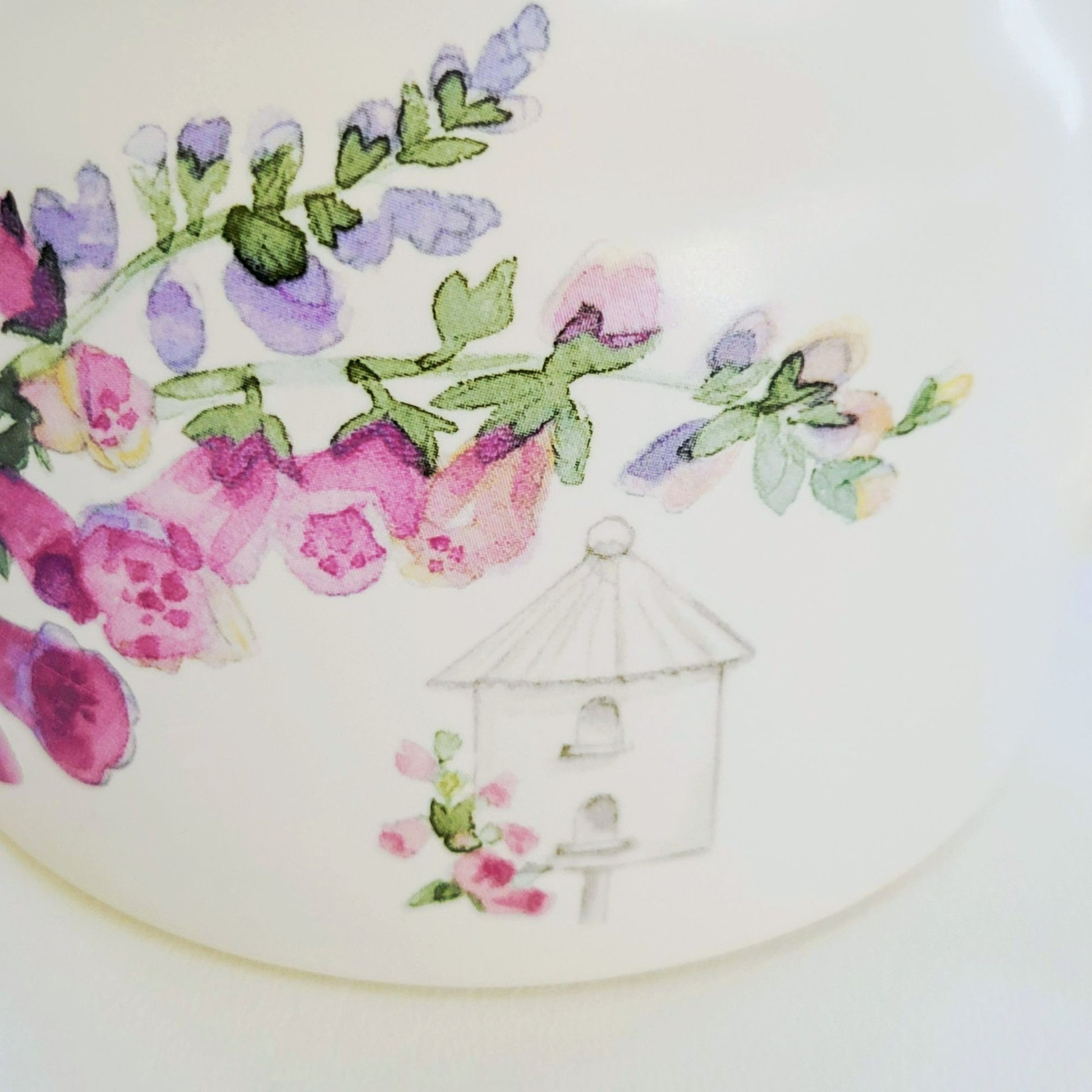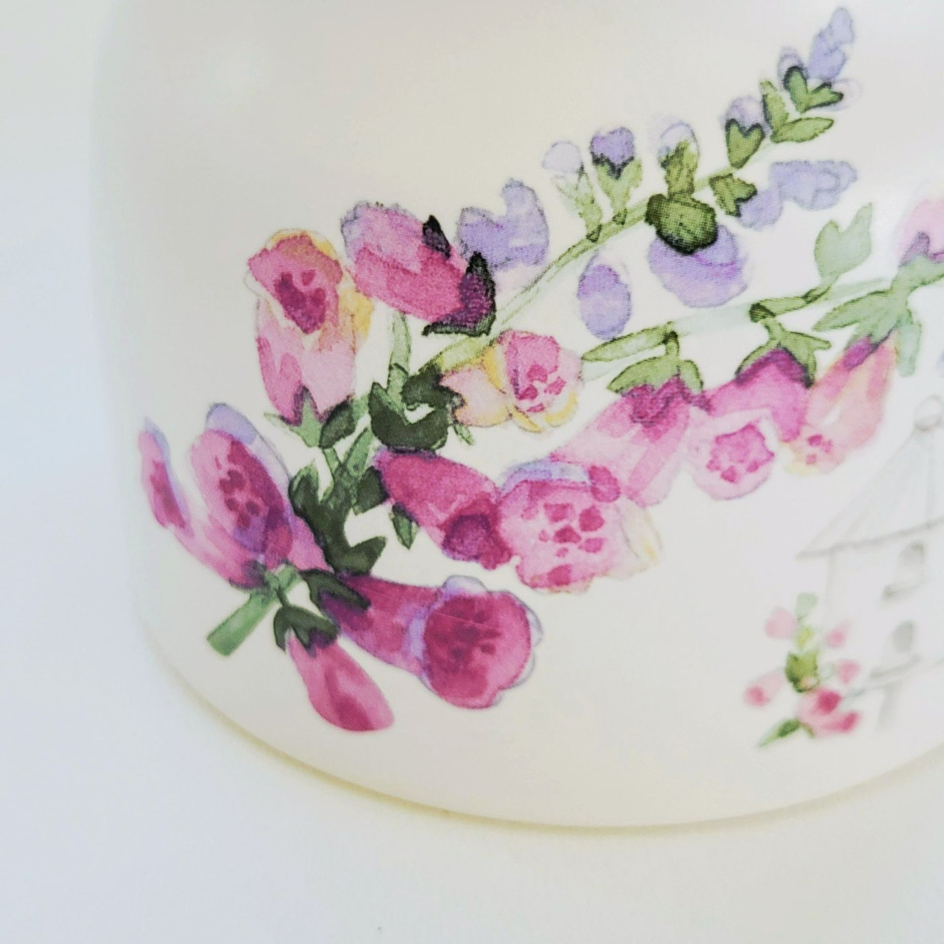 This vintage Pfaltzgraff Cape May stoneware features a charming light purple / pink floral design. Crafted in the USA between 1998-2001, it adds a nostalgic touch to any collection.