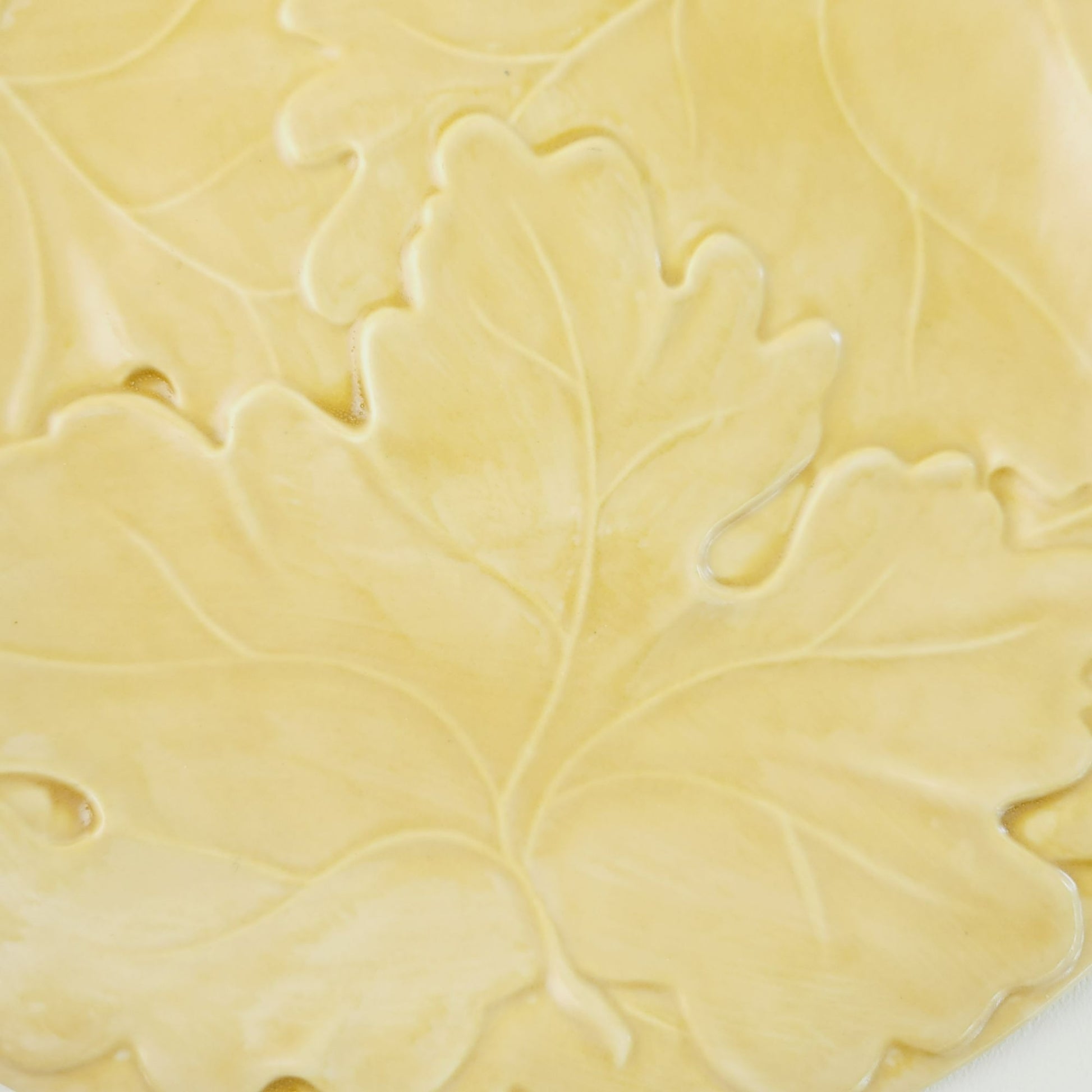 This Pfaltzgraff Jamberry Salad Dessert Plate, a discontinued c.2000 design, features a 3D embossed leaf in beige and mustard colors. Ideal for fall dining or as autumn wall decor.