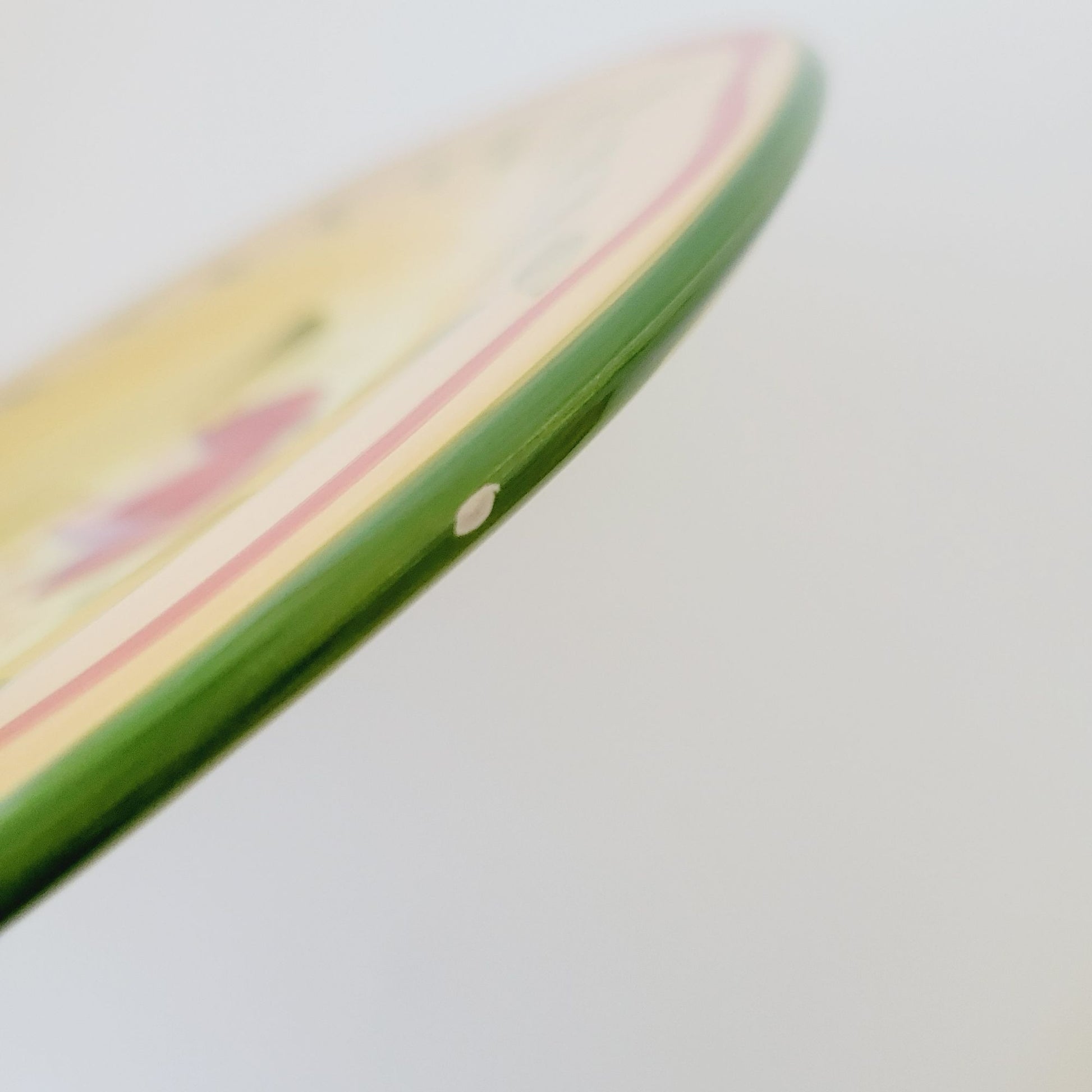 One plate has a small scratch out of the green edge (see pics), the other plate has no flaws.