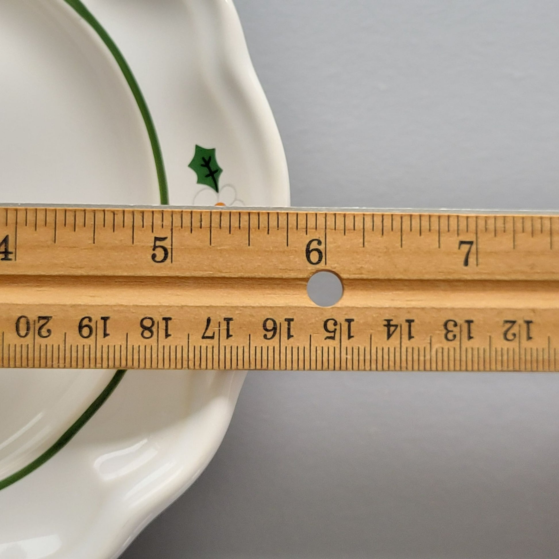 Plate is in good condition with no cracks or chips. There is wear from use.