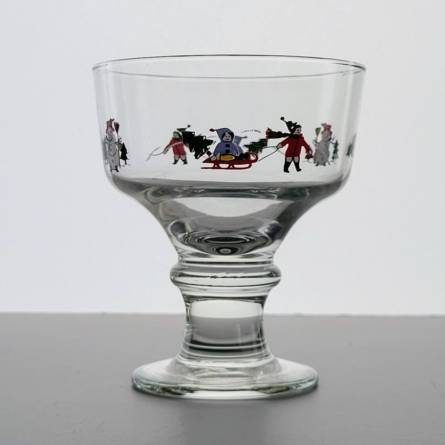 Pfaltzgraff Snow Village Footed Glass Dessert Berry Bowl, c.1990s