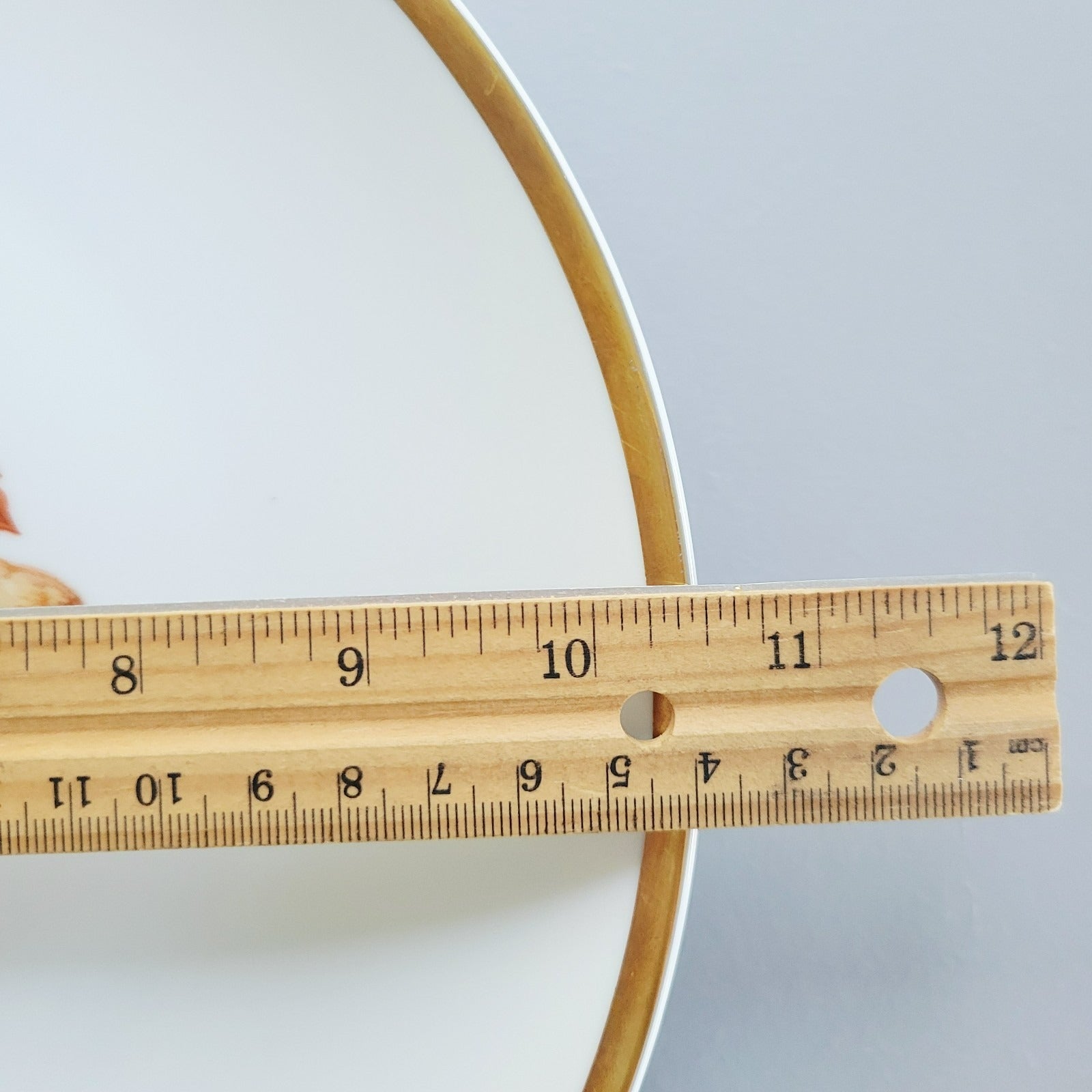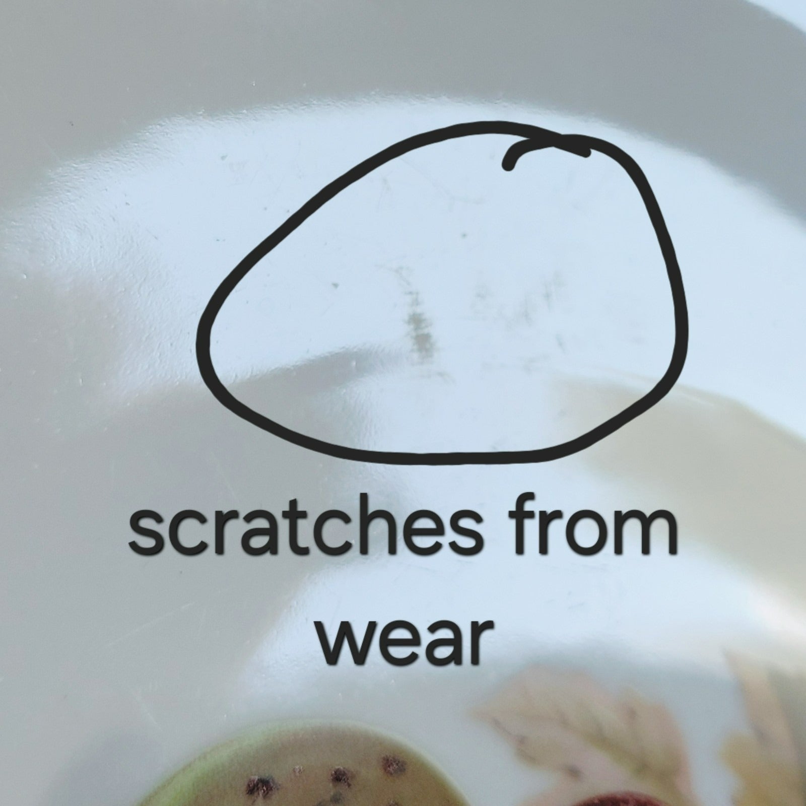 Plate is in overall good condition. There are scratches from use (see photo) and wear on gold trim (see photo).