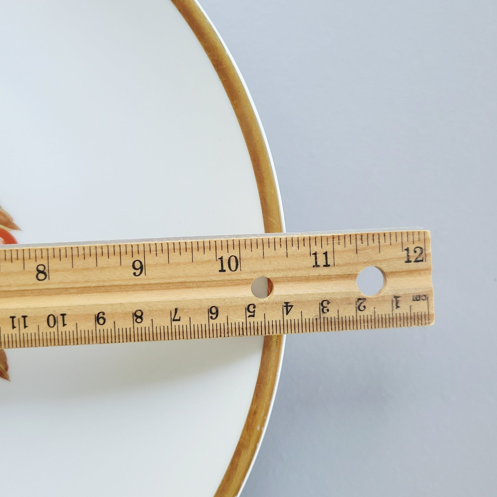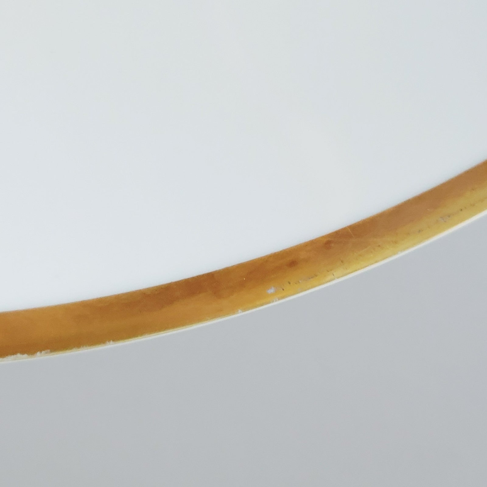 Plate is in overall good condition. There are scratches from use (see photo) and wear on gold trim (see photo).
