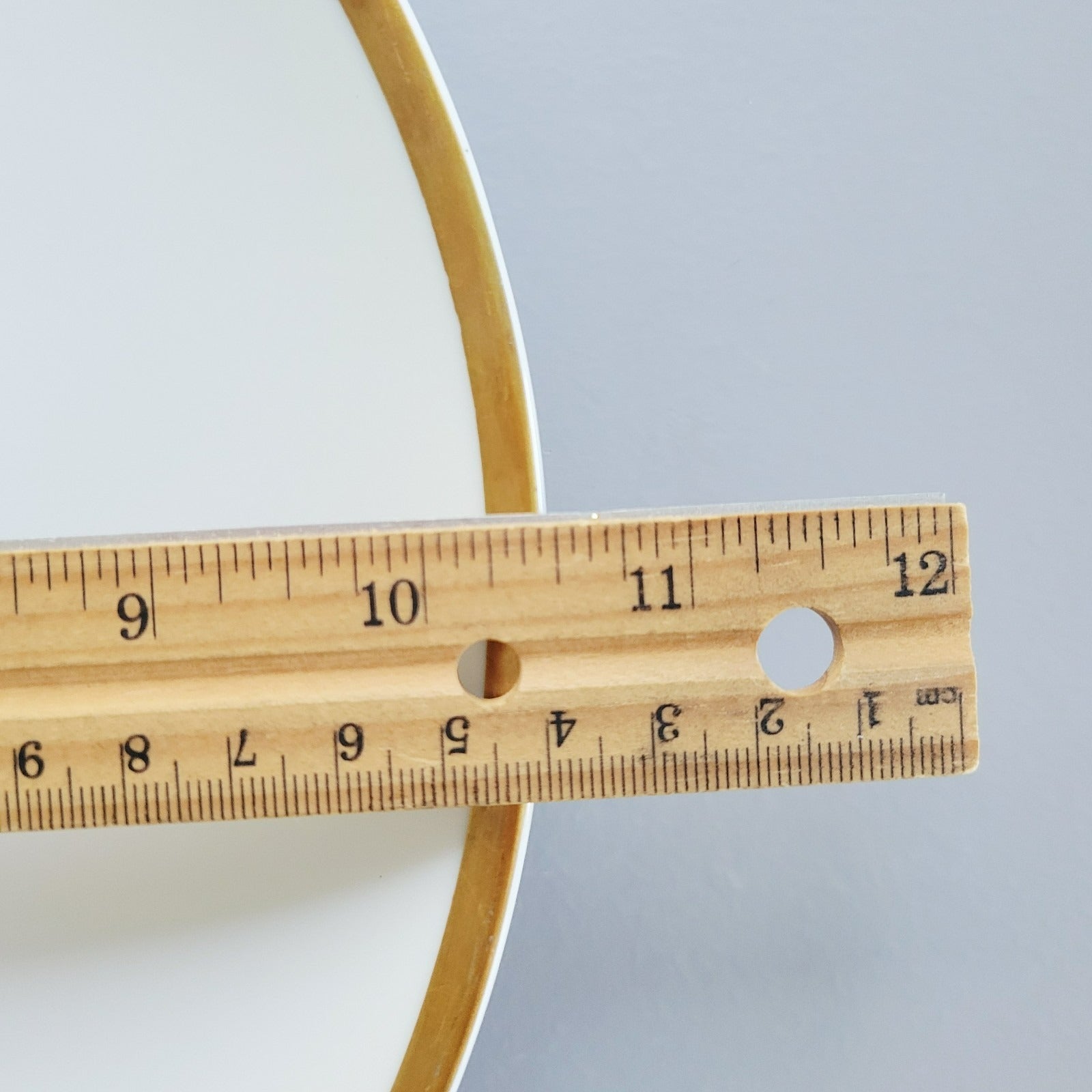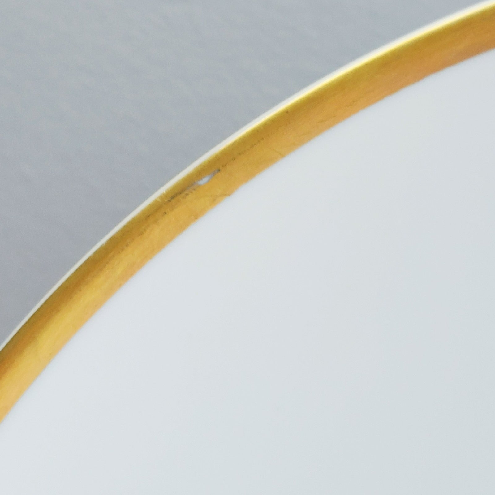 Plate is in overall good condition. There are scratches from use (see photo) and wear on gold trim (see photo).