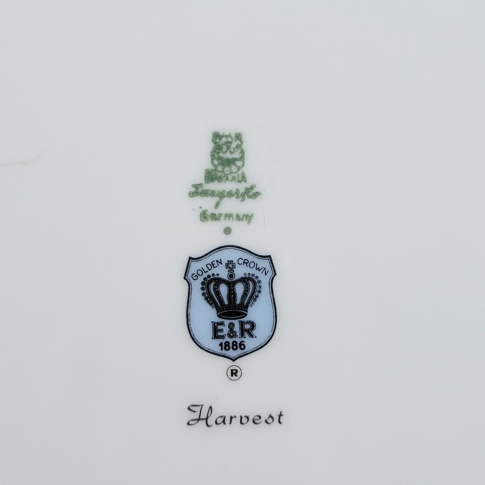 This exquisite vintage dinner plate from PM Jaeger & Co, circa 1950-60, features a fruit design with heavy gold trim. Made in Bavaria, Germany, and distributed by E&R from Philadelphia USA, it’s a beautiful addition to any collection.