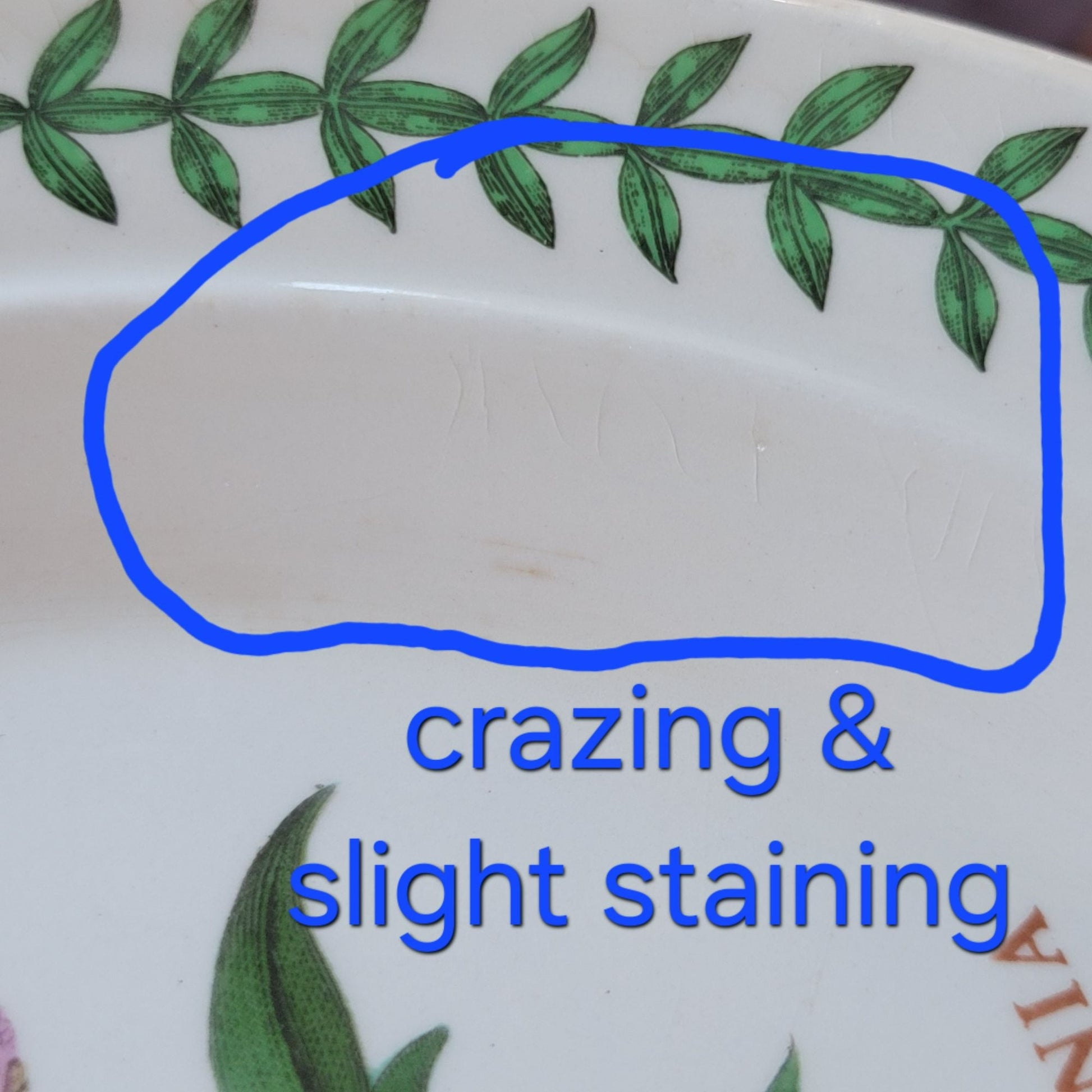 Plate are in overall good condition with no cracks or chips, however there is wear in some of the coloring and light crazing along an edge on one of the plates (see photos).
