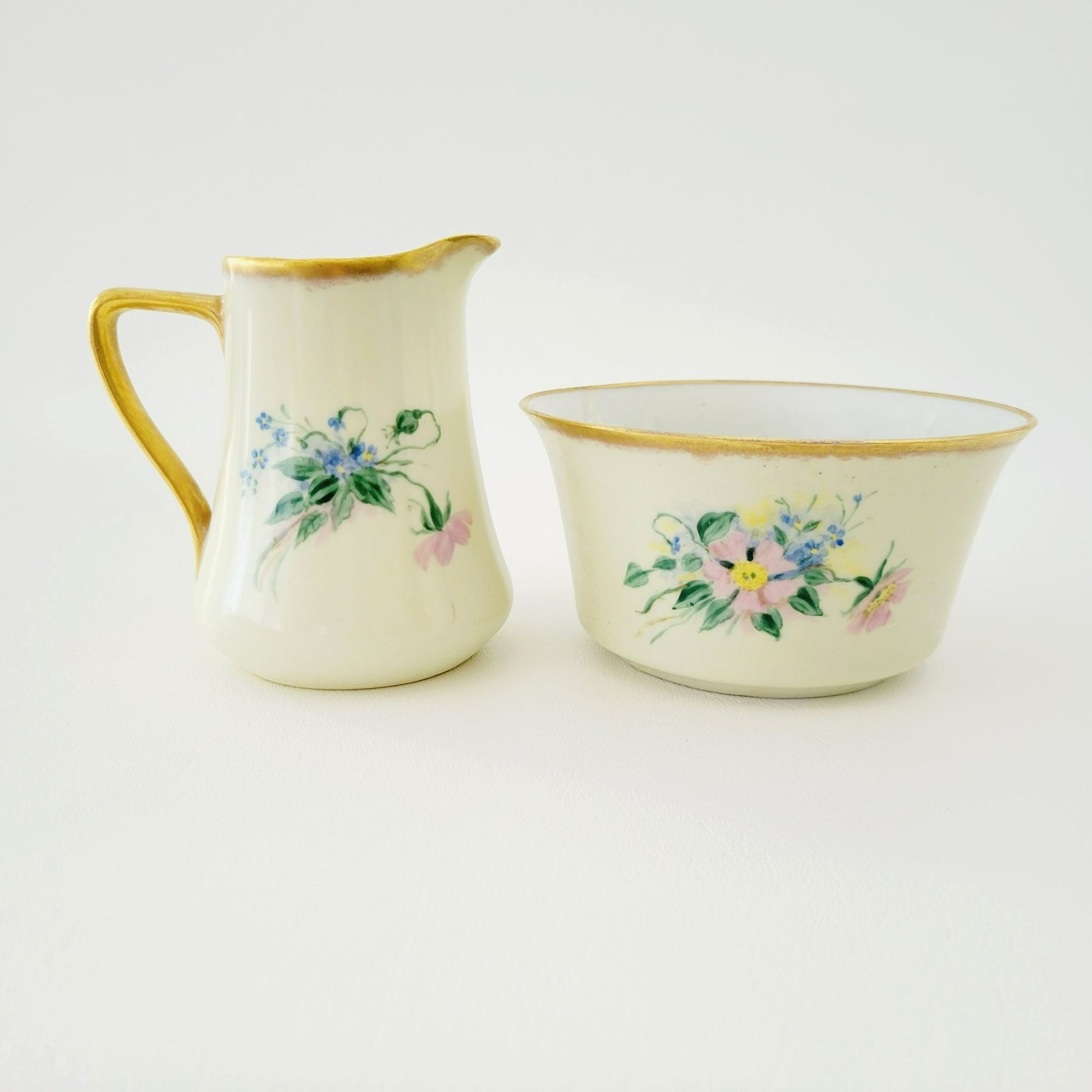 Rare Rosenthal Antique Floral Creamer, Sugar Bowl & Tea Tray, Hand Painted, c.1891-1906 Germany