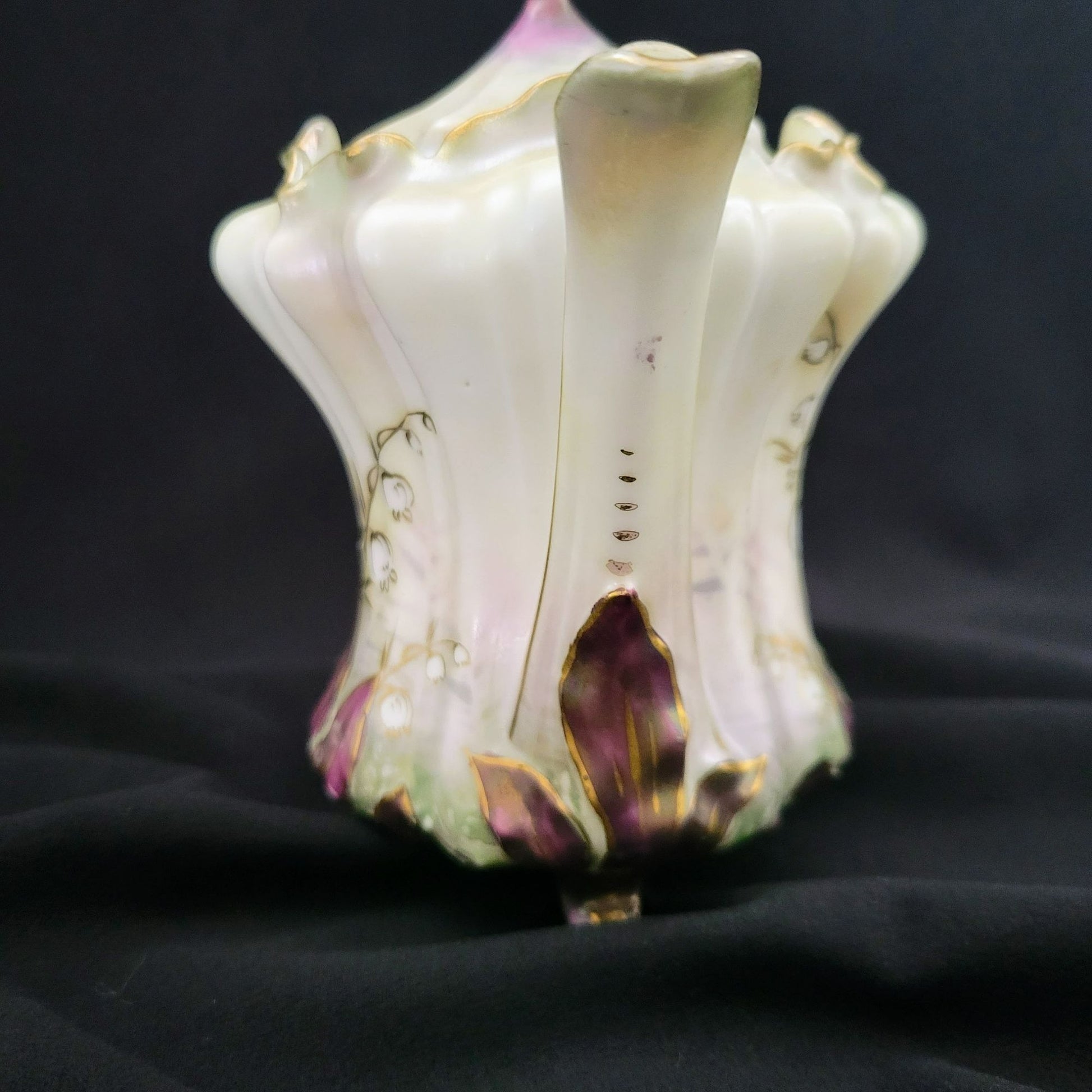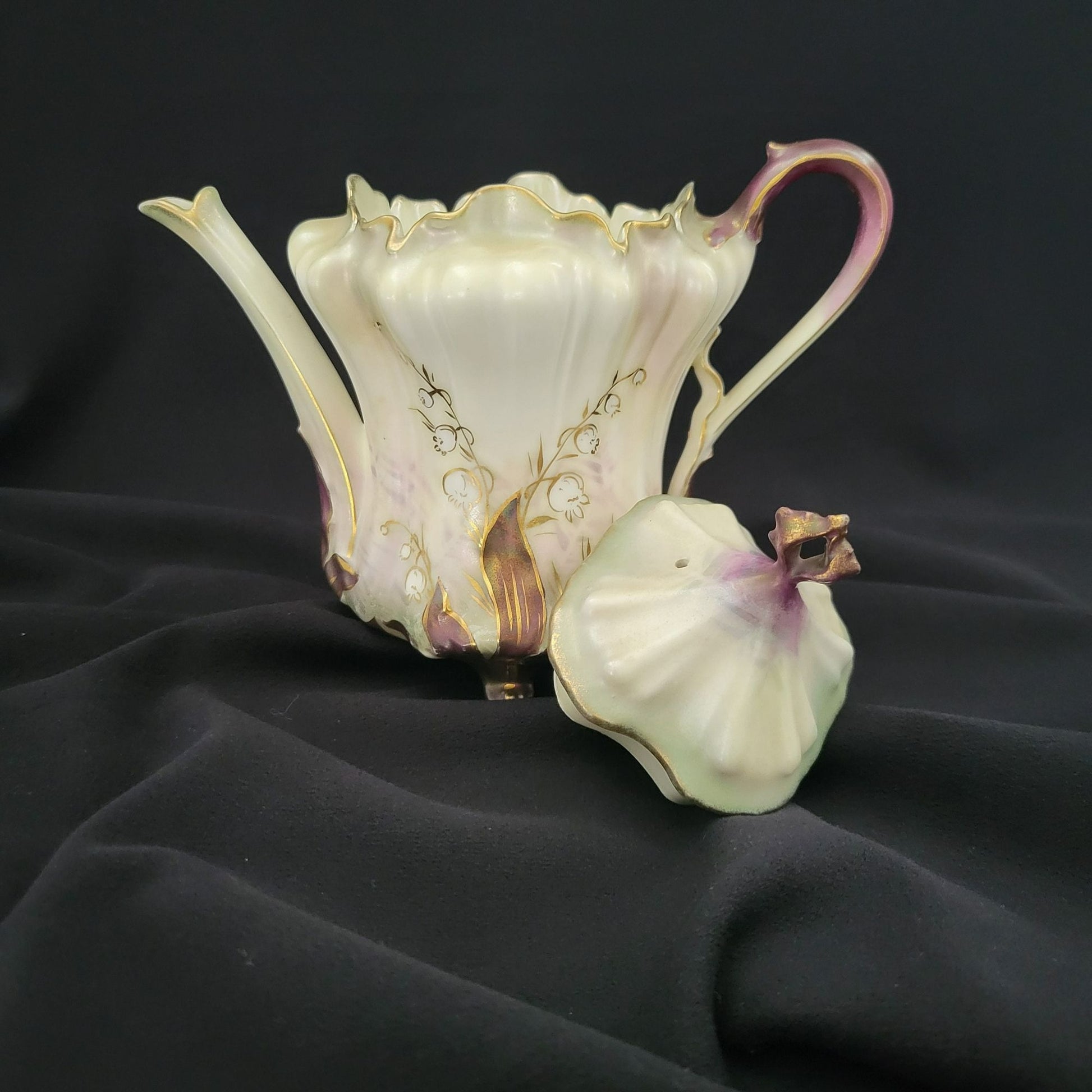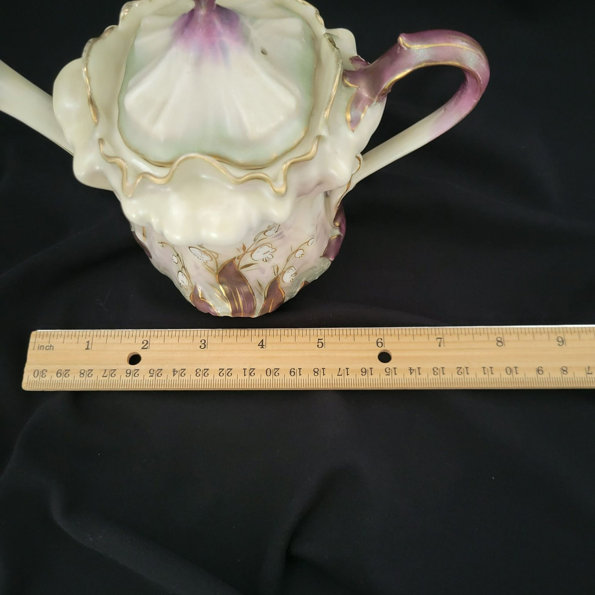 Rare Vintage RS Prussia Lily of the Valley Teapot Hand Painted on Satin Smooth Finish, Gold Accents