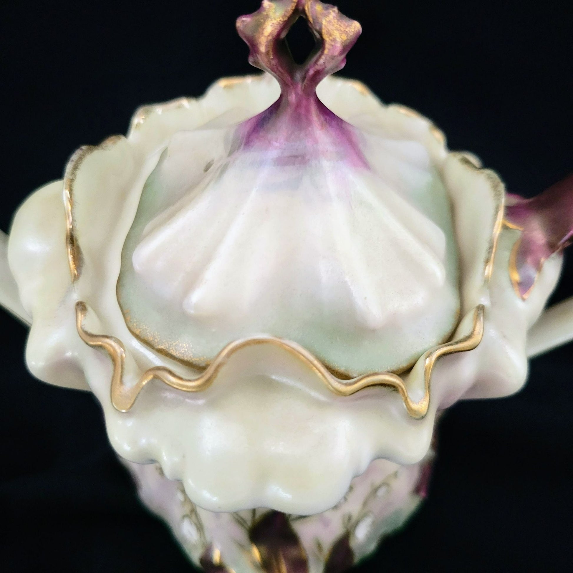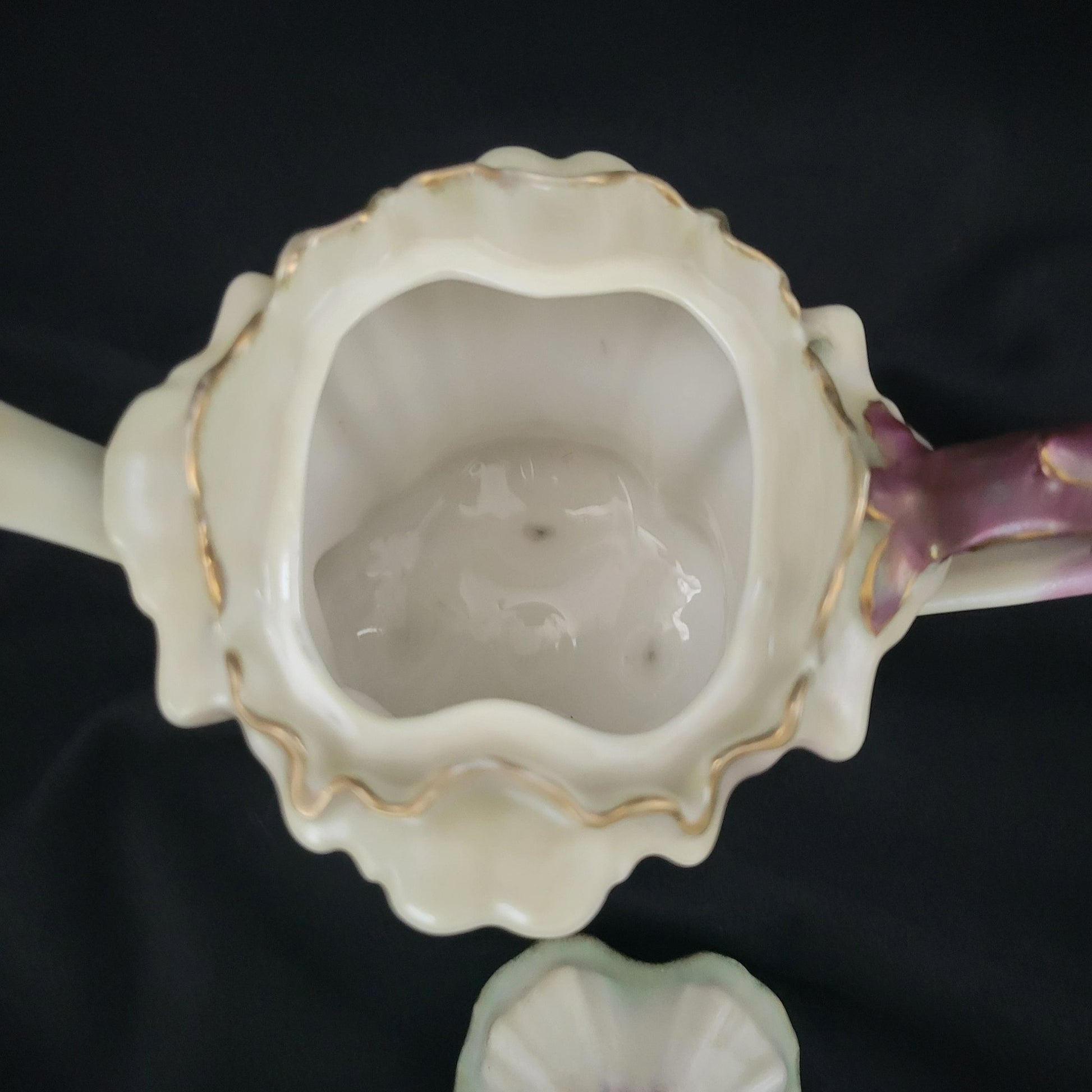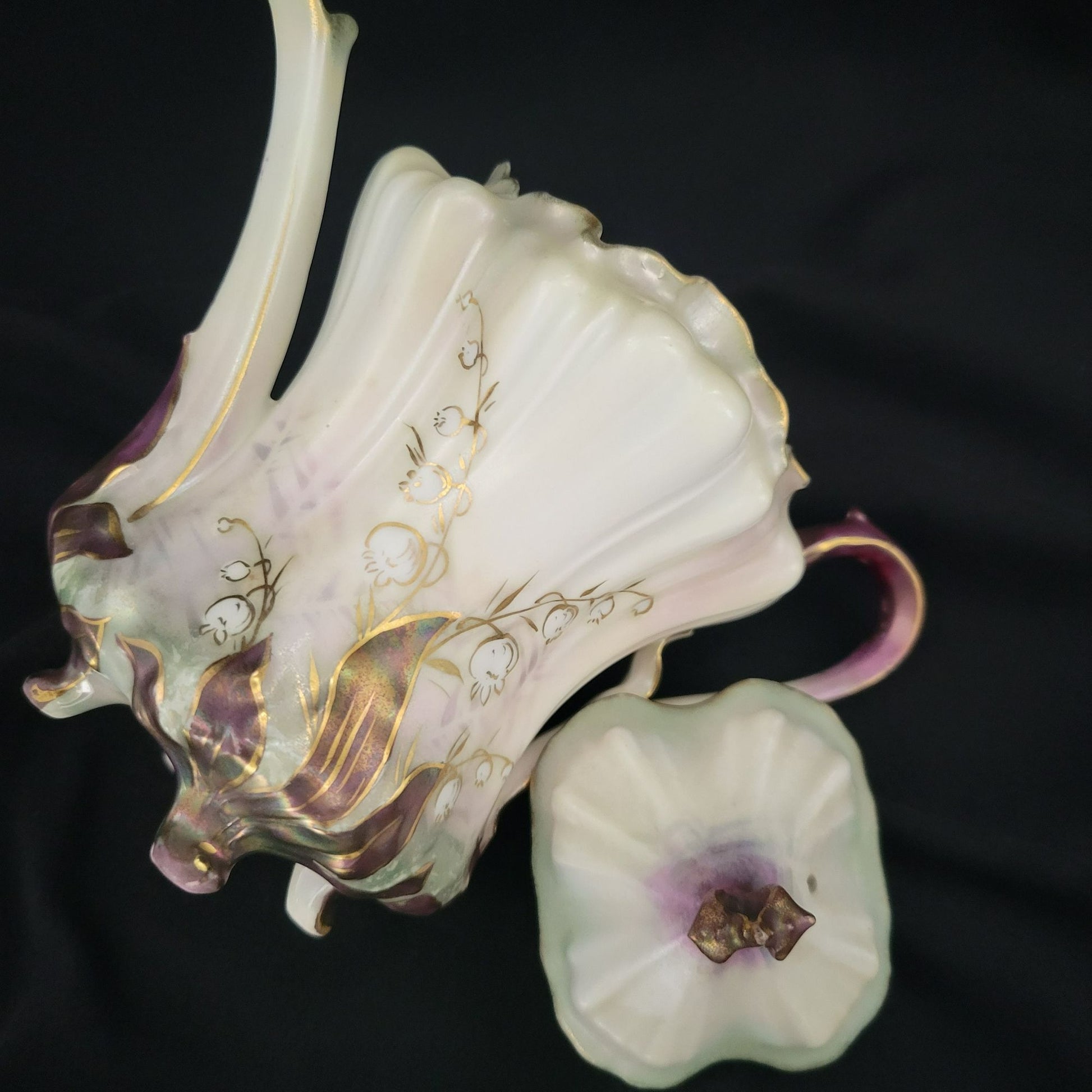 Rare Vintage RS Prussia Lily of the Valley Teapot Hand Painted on Satin Smooth Finish, Gold Accents