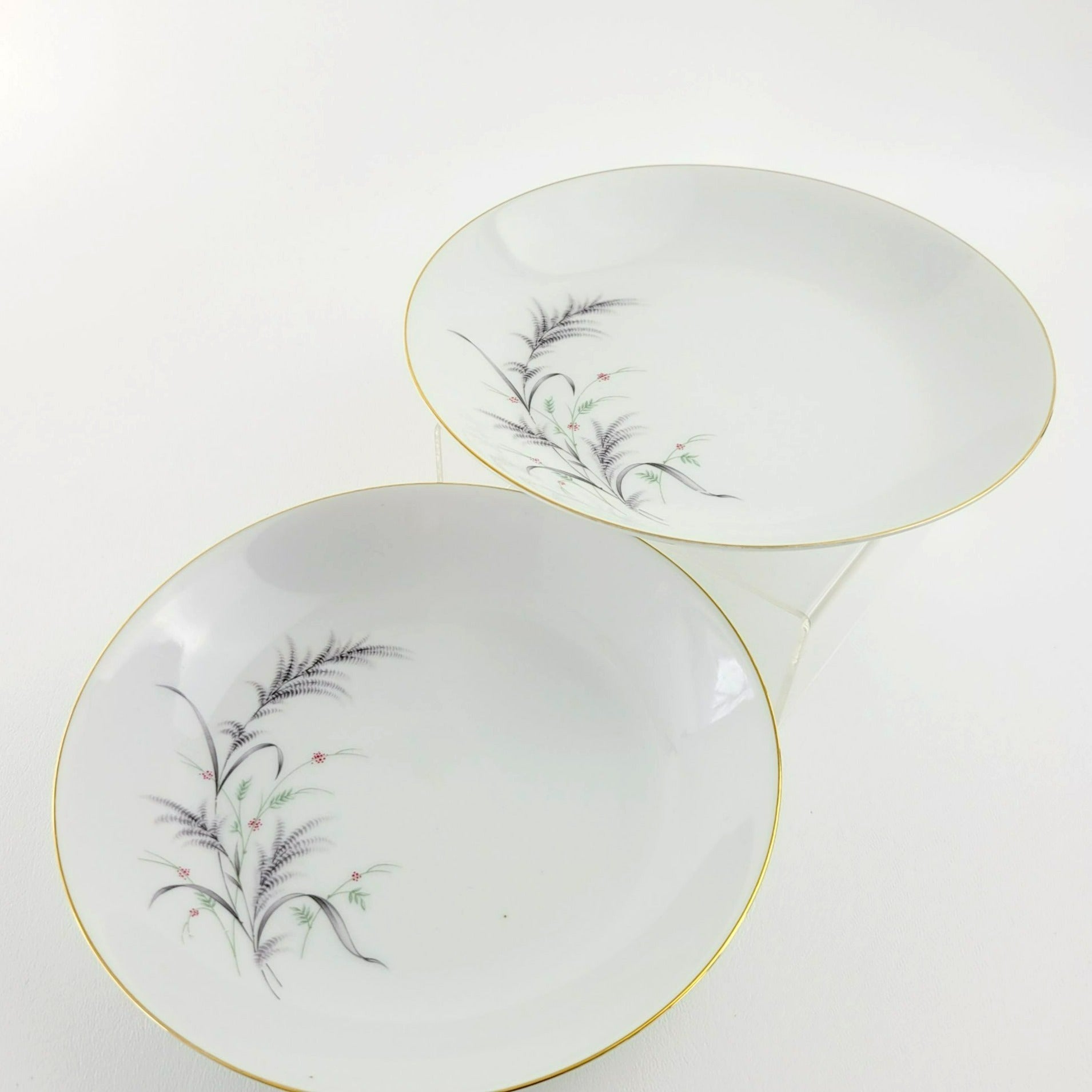 This pretty low pasta bowls features a delicate gray wheat design with pink and green accents is by Thomas, a subsidiary of Rosenthal. Made in Germany, it's perfect for serving or display, adding a touch of sophistication to any table setting.
