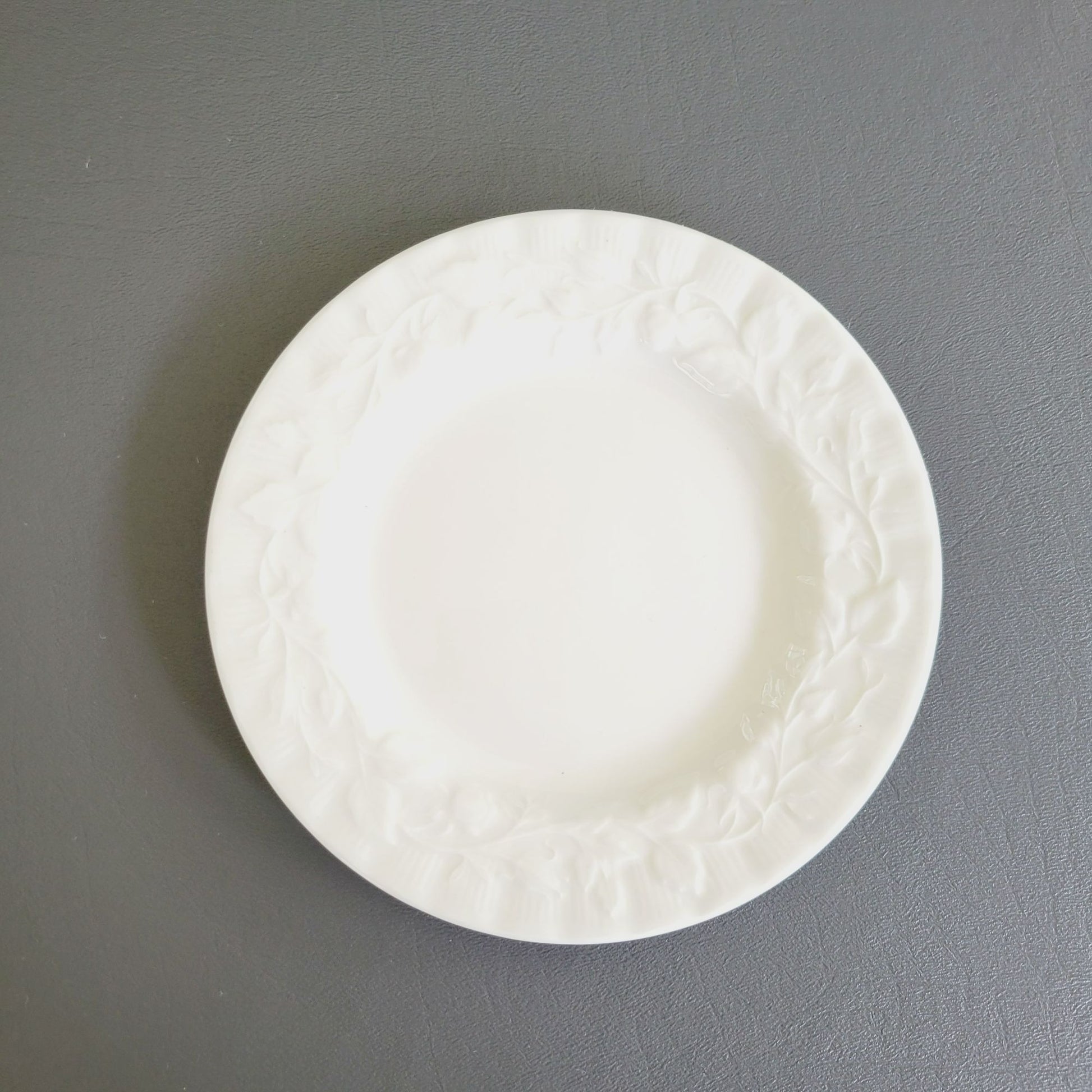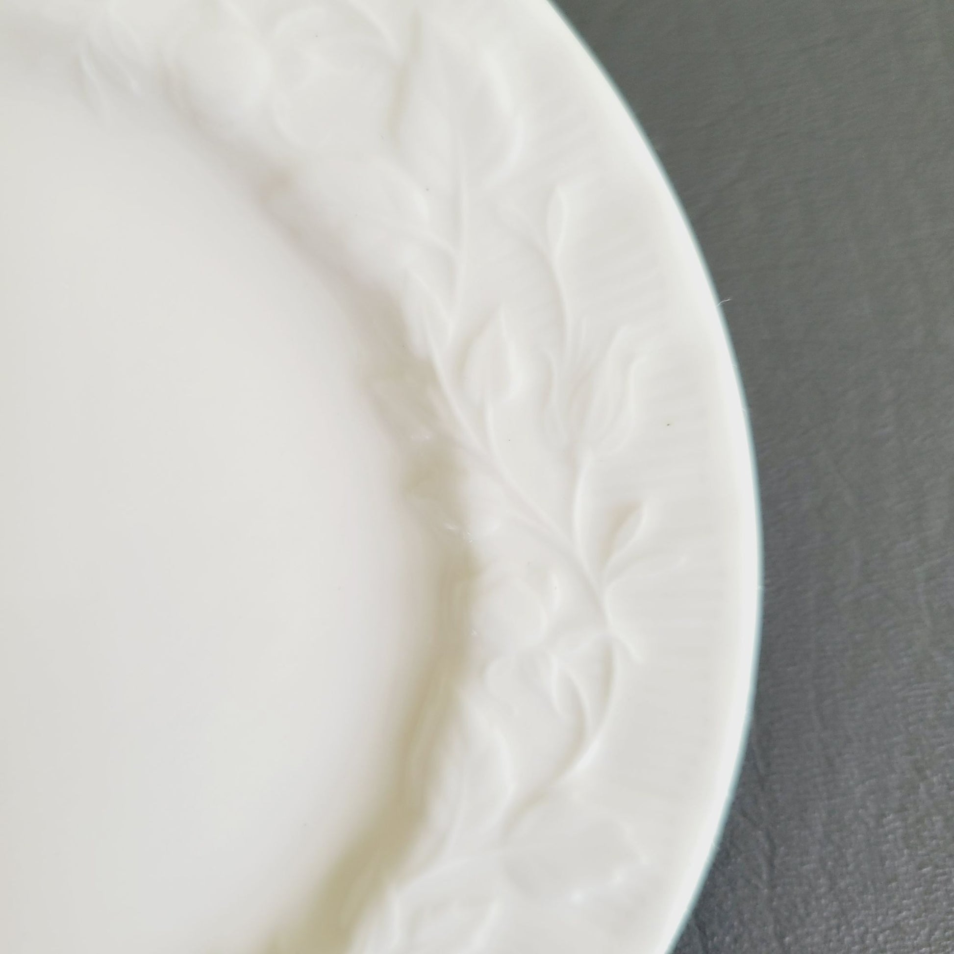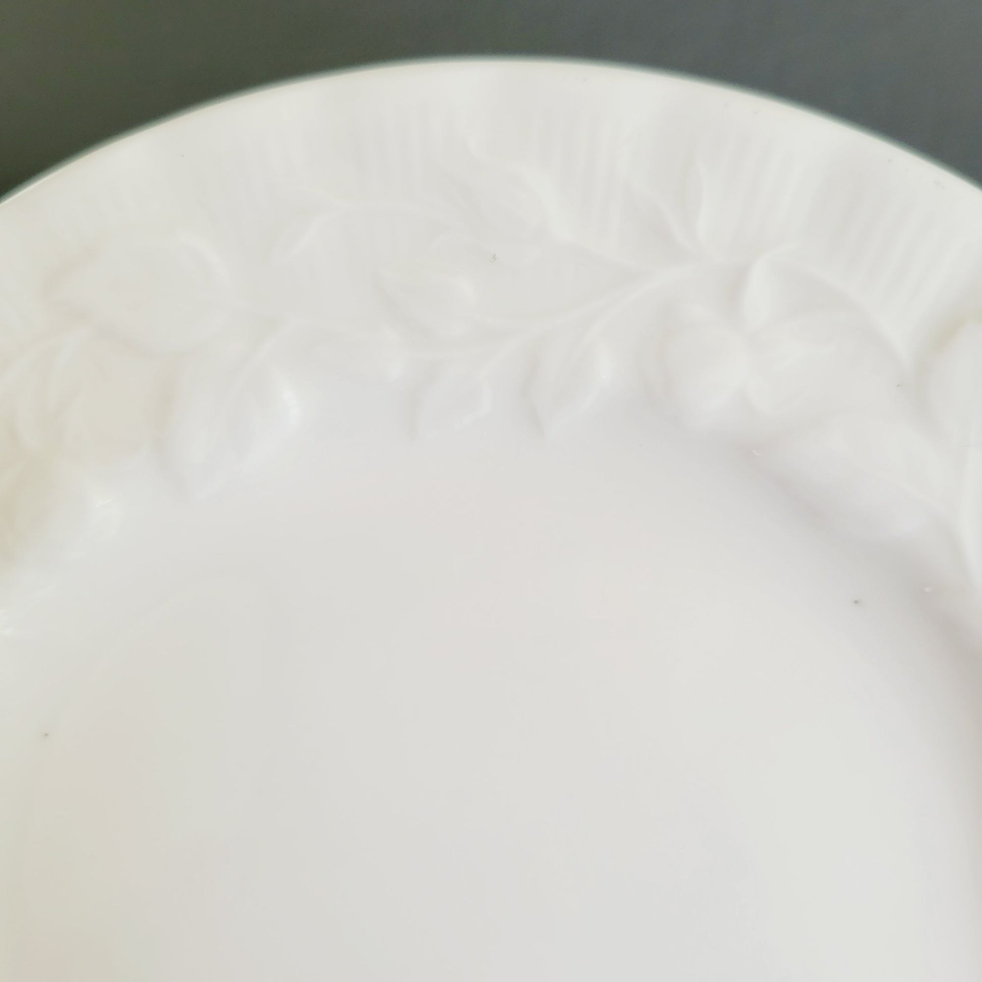 This exquisite Royal Albert Old English Garden Bread Plate exudes elegance with its all-white embossed roses design and no-trim shell edge. Made from bone china, it's perfect for wedding showers or as an addition to your dinnerware collection.