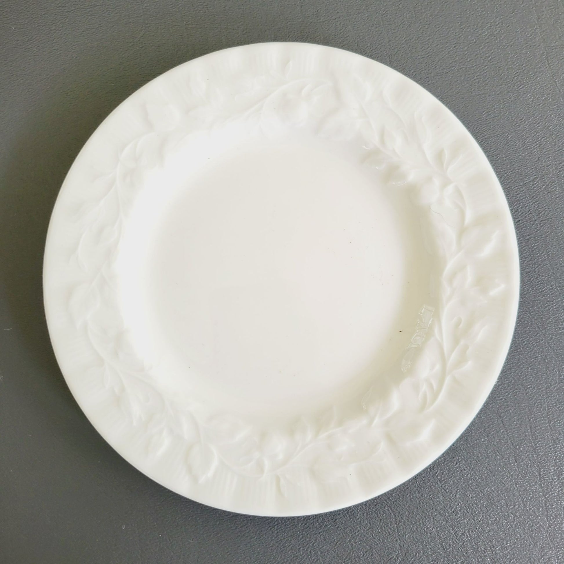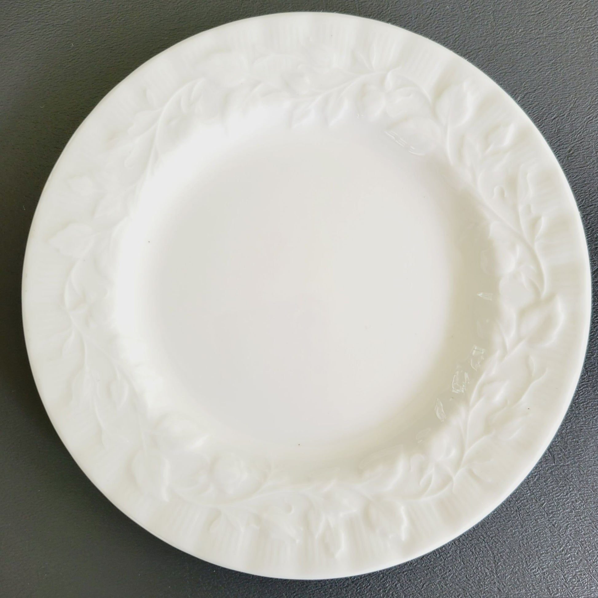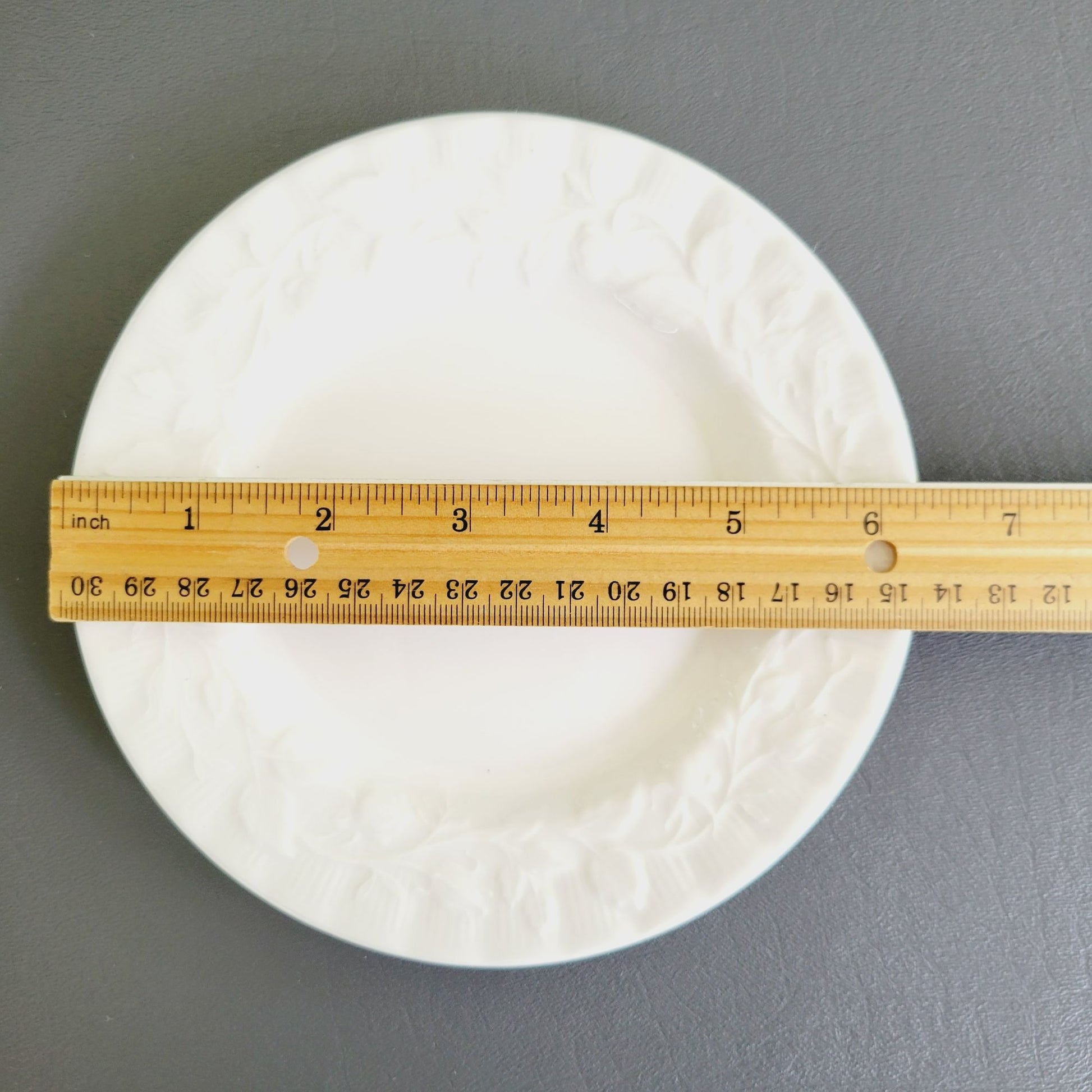 This exquisite Royal Albert Old English Garden Bread Plate exudes elegance with its all-white embossed roses design and no-trim shell edge. Made from bone china, it's perfect for wedding showers or as an addition to your dinnerware collection.