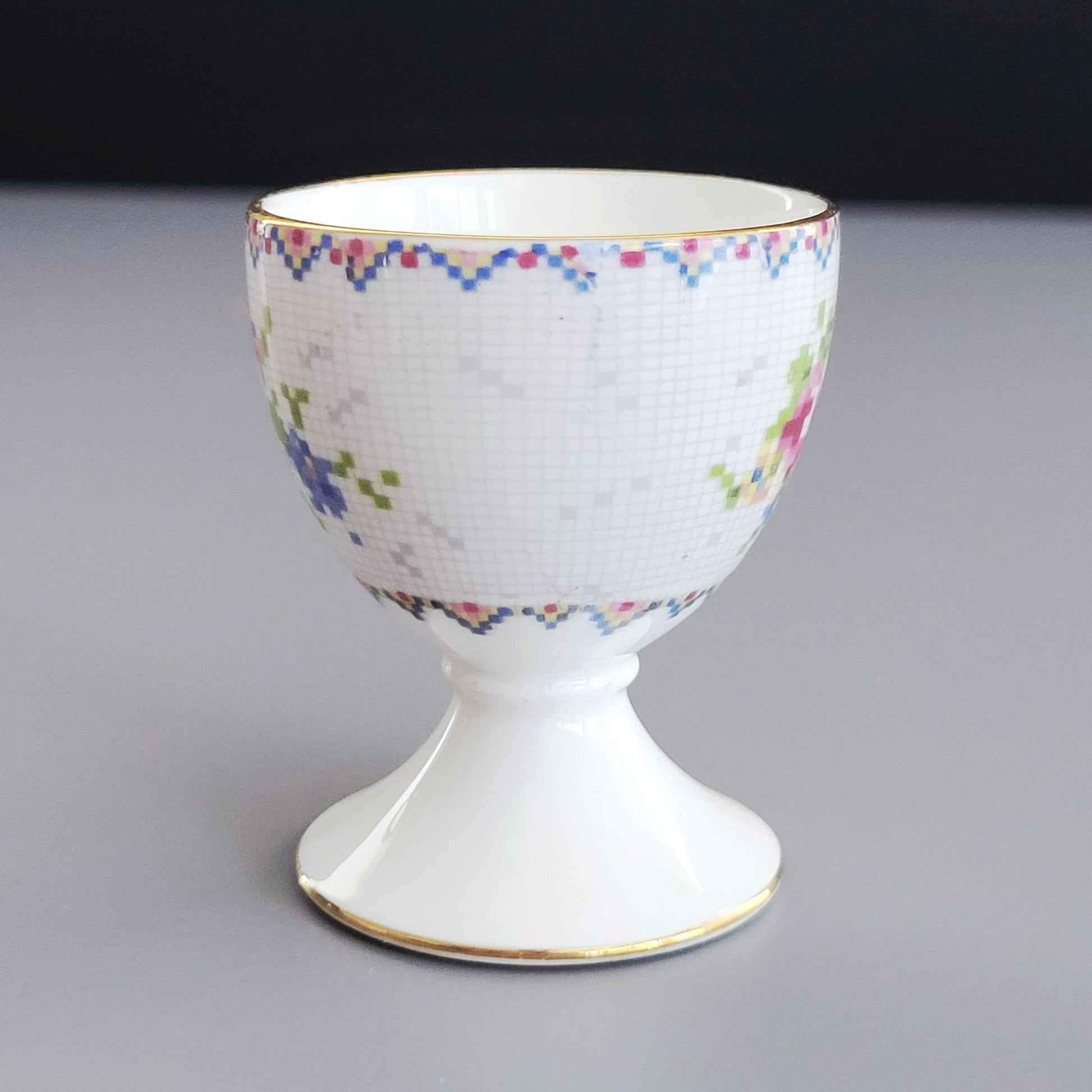 This exquisite set of two Royal Albert Petit Point single egg cup features a charming pixel floral design crafted in England. Perfect for collectors and lovers of vintage elegance.