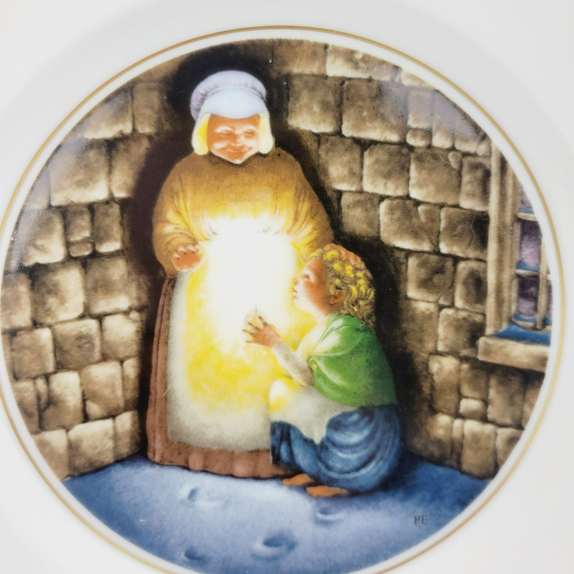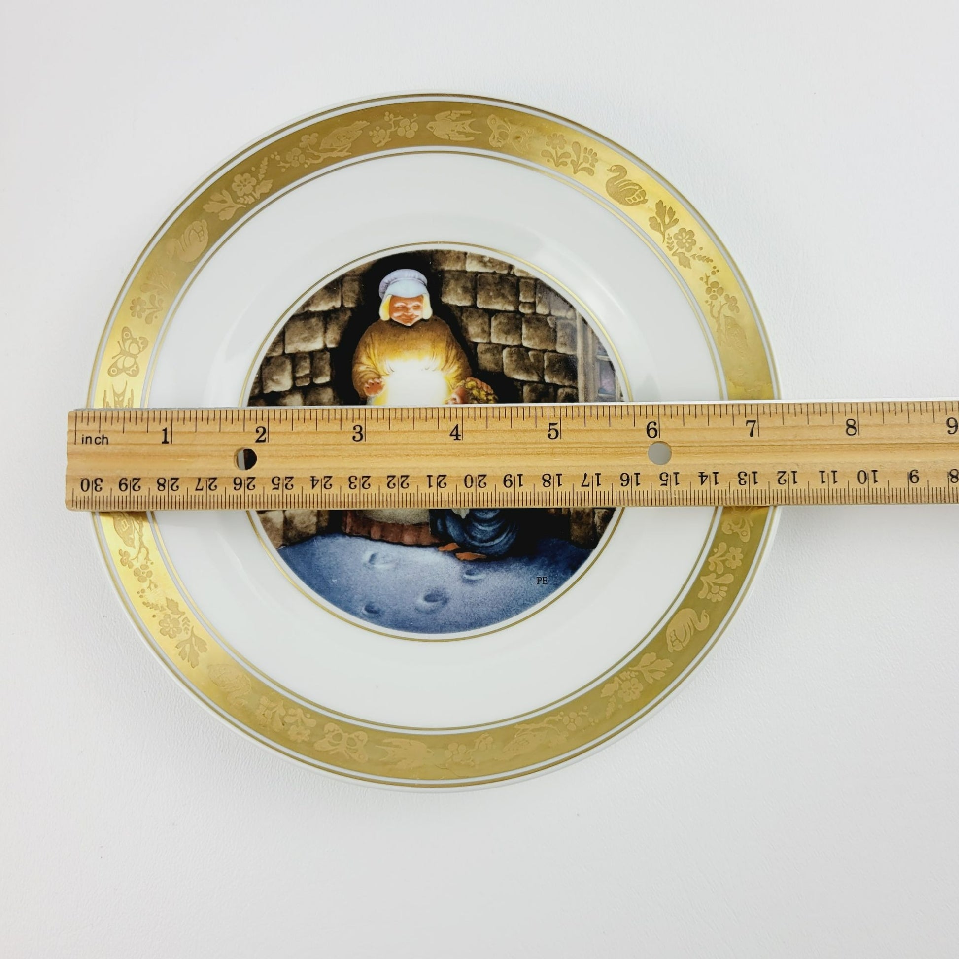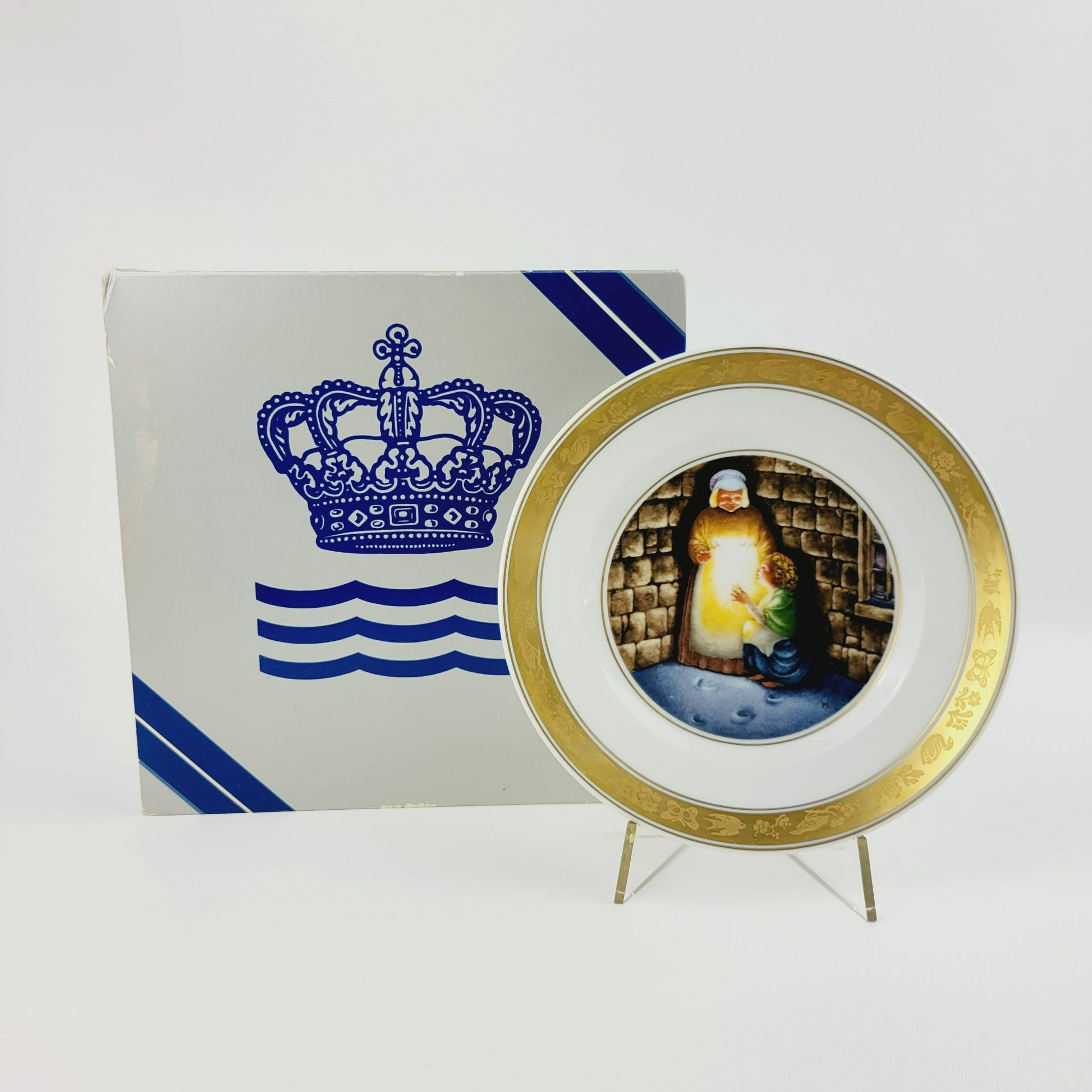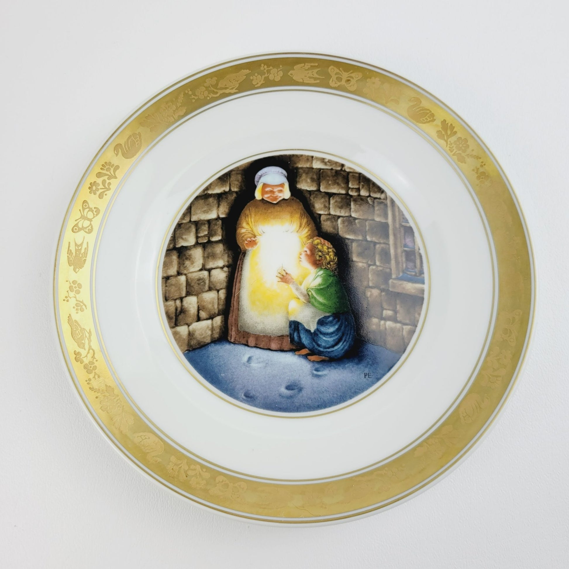 Royal Copenhagen The Little Match Girl Hans Christian Andersen Fairy Tale Plate, Gold Trim with Etched Design, c.1975-76 Denmark