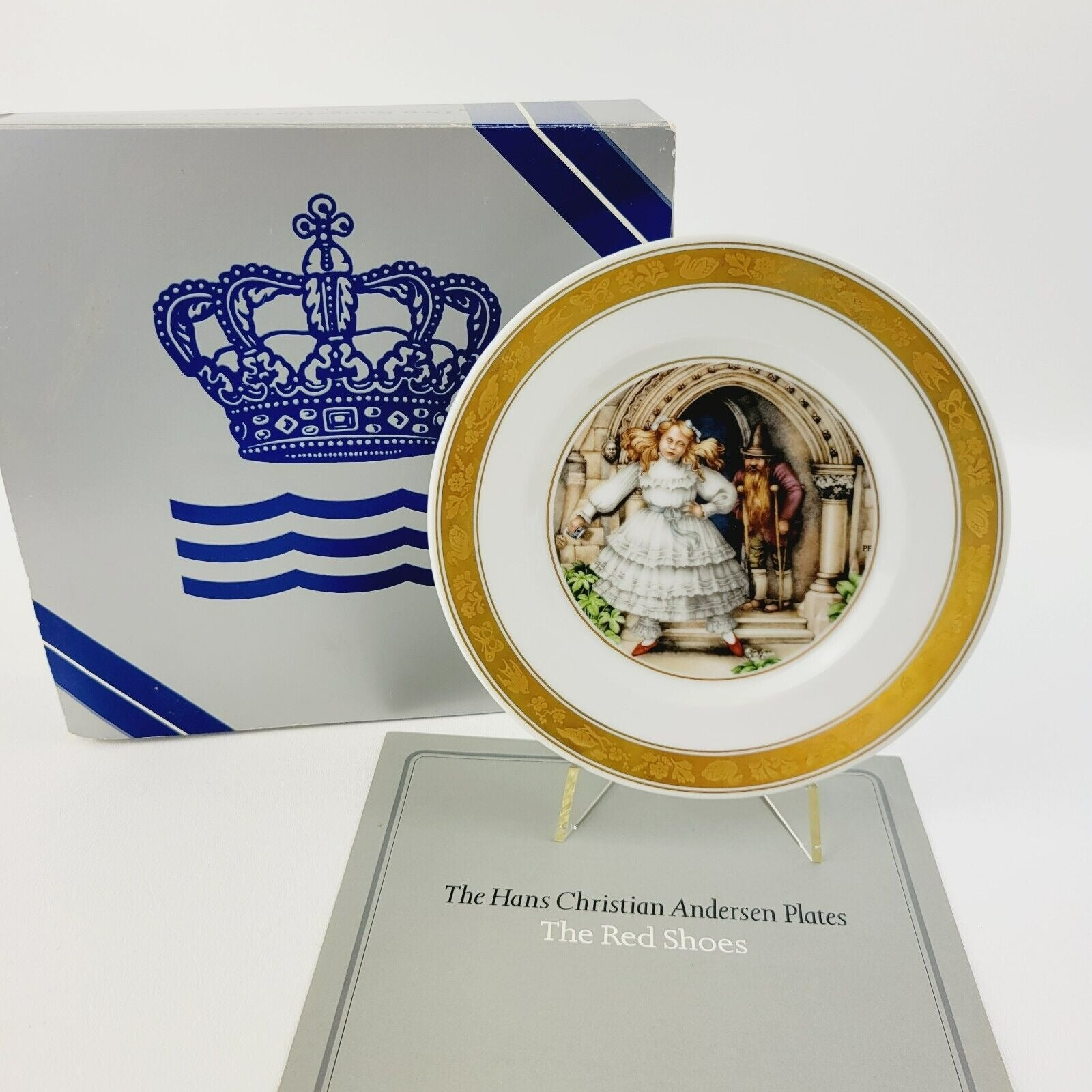Royal Copenhagen The Red Shoes Hans Christian Andersen Fairy Tale Story Plate, Gold Trim with Etched Design, c.1975-76 Denmark