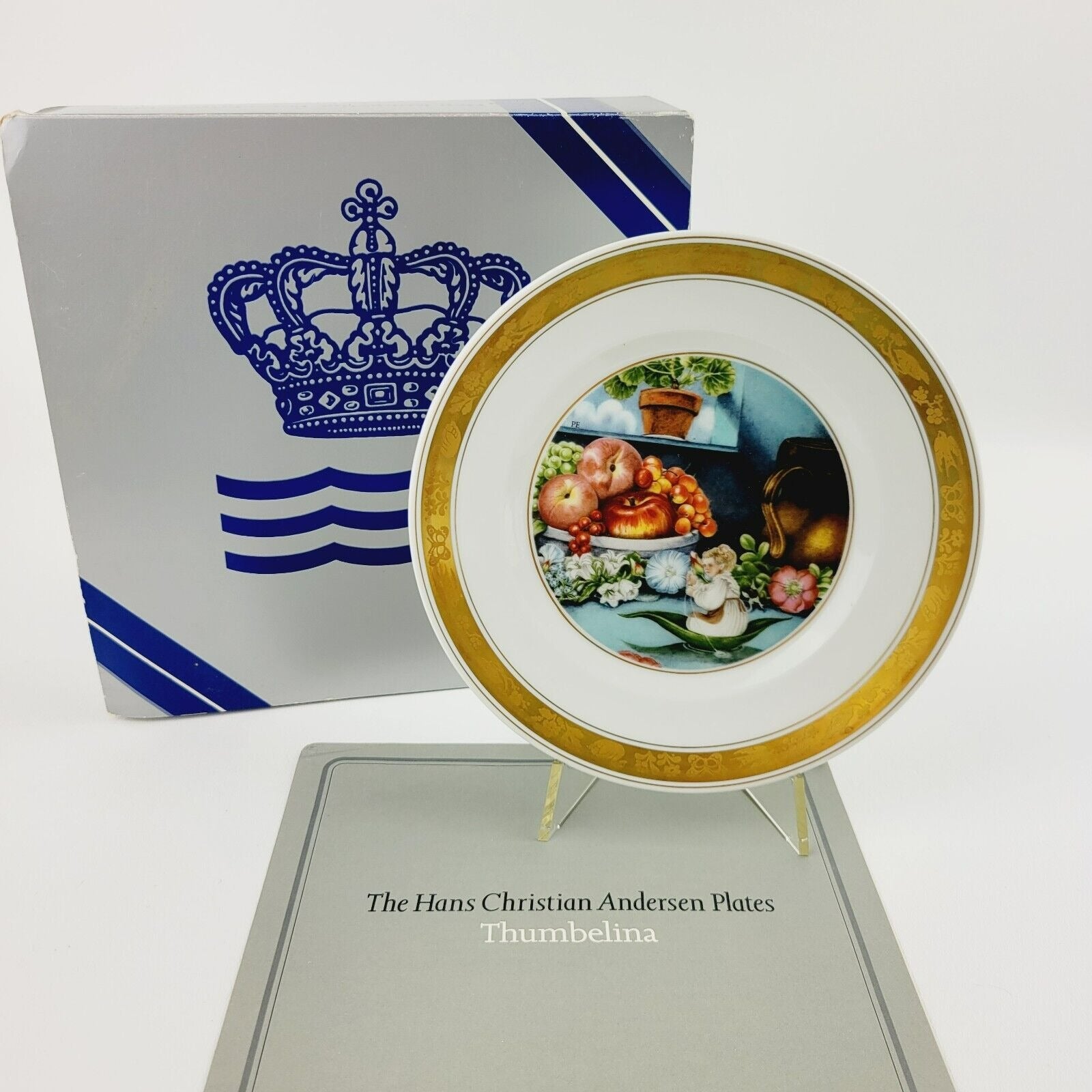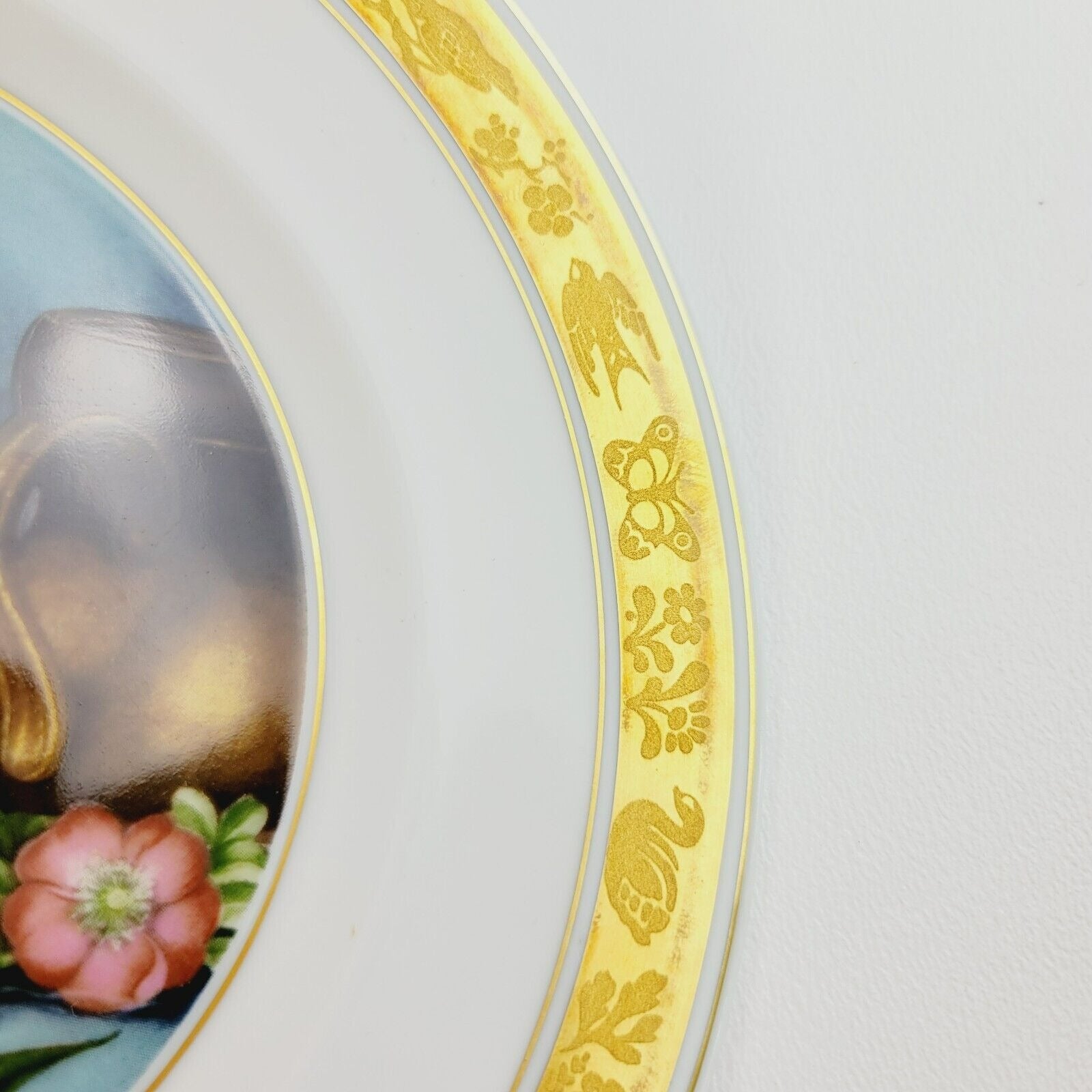 Royal Copenhagen Thumbelina Hans Christian Andersen Fairy Tale Story Plate, Gold Trim with Etched Design, c.1975-76 Denmark