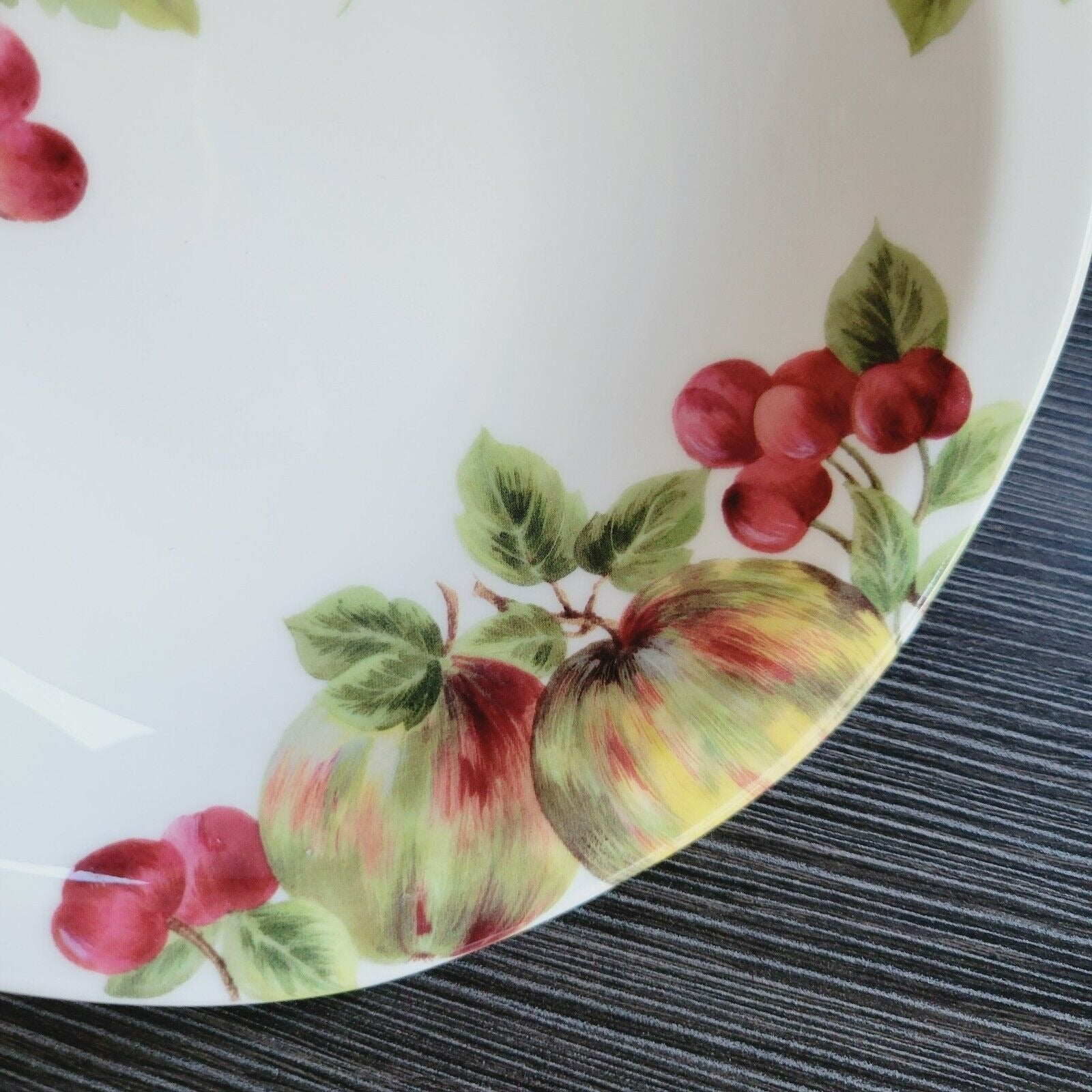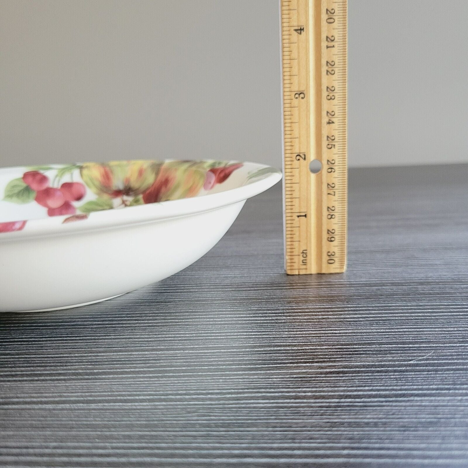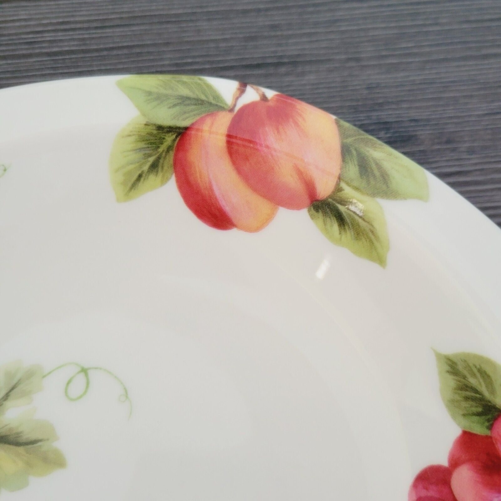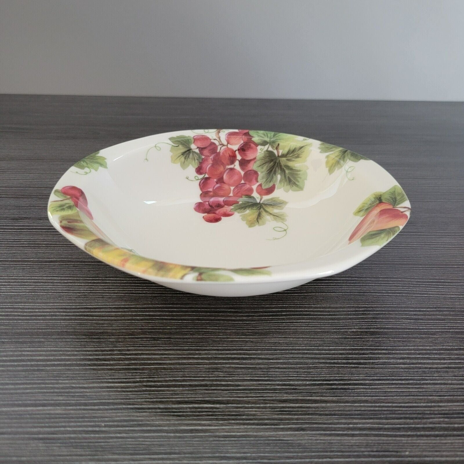 Royal Doulton Vintage Grape Soup/Cereal Bowl features intricate fruit pattern, perfect for adding elegance to your dining experience. Made in England from fine china, this 1990s dinnerware piece combines durability with timeless beauty.