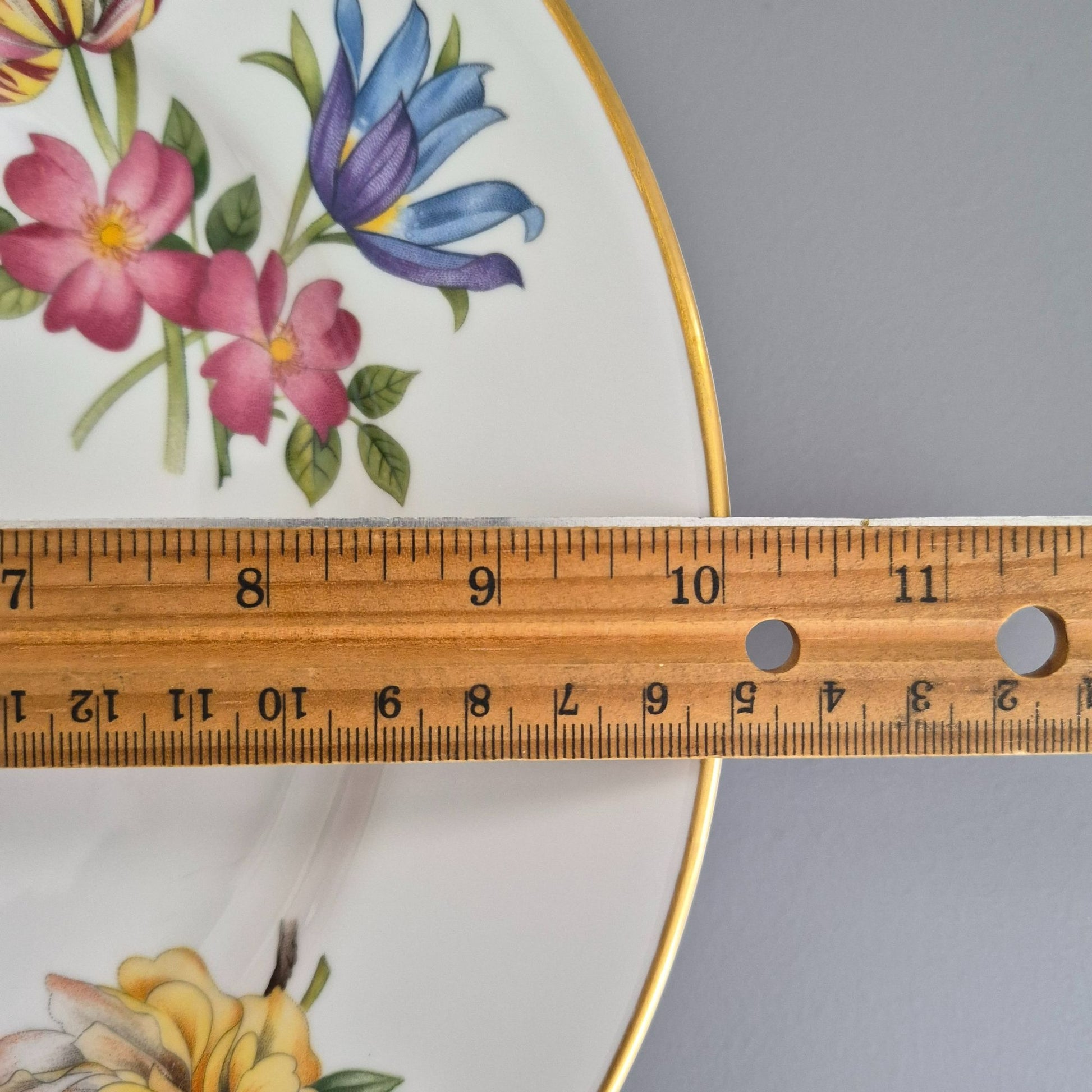 Elegant vintage Royal Worcester Pershore dinner plate featuring bright floral designs and gold trim. Made in England between 1980-84, this discontinued china piece is perfect for collectors or as a replacement.