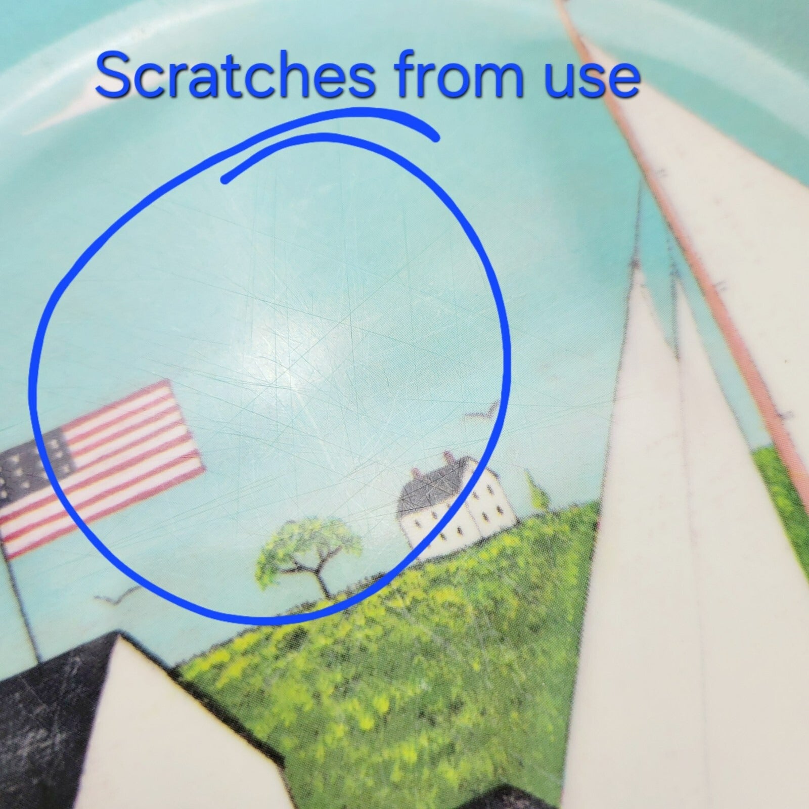 Plates are in good condition with no cracks or chips, however there are scratches from use (see photo).