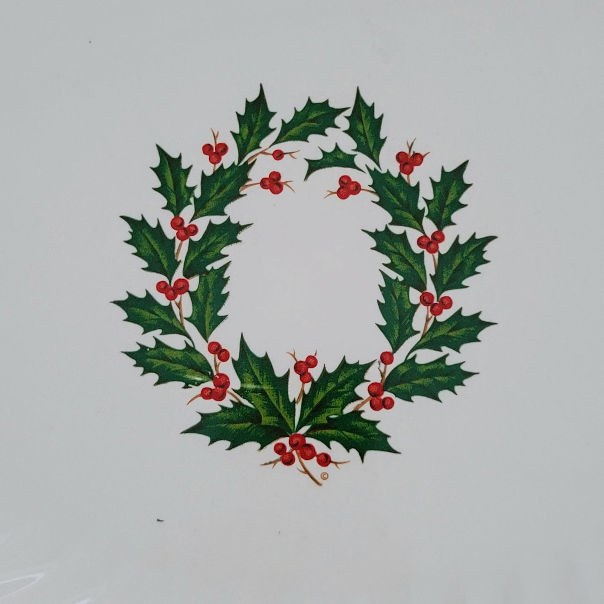 Add a touch of vintage charm to your holiday table with this Scio Holly 12" Oval Platter. Featuring a scalloped edge and classic red and green holly berry design in the center, this platter is perfect for serving festive dishes.