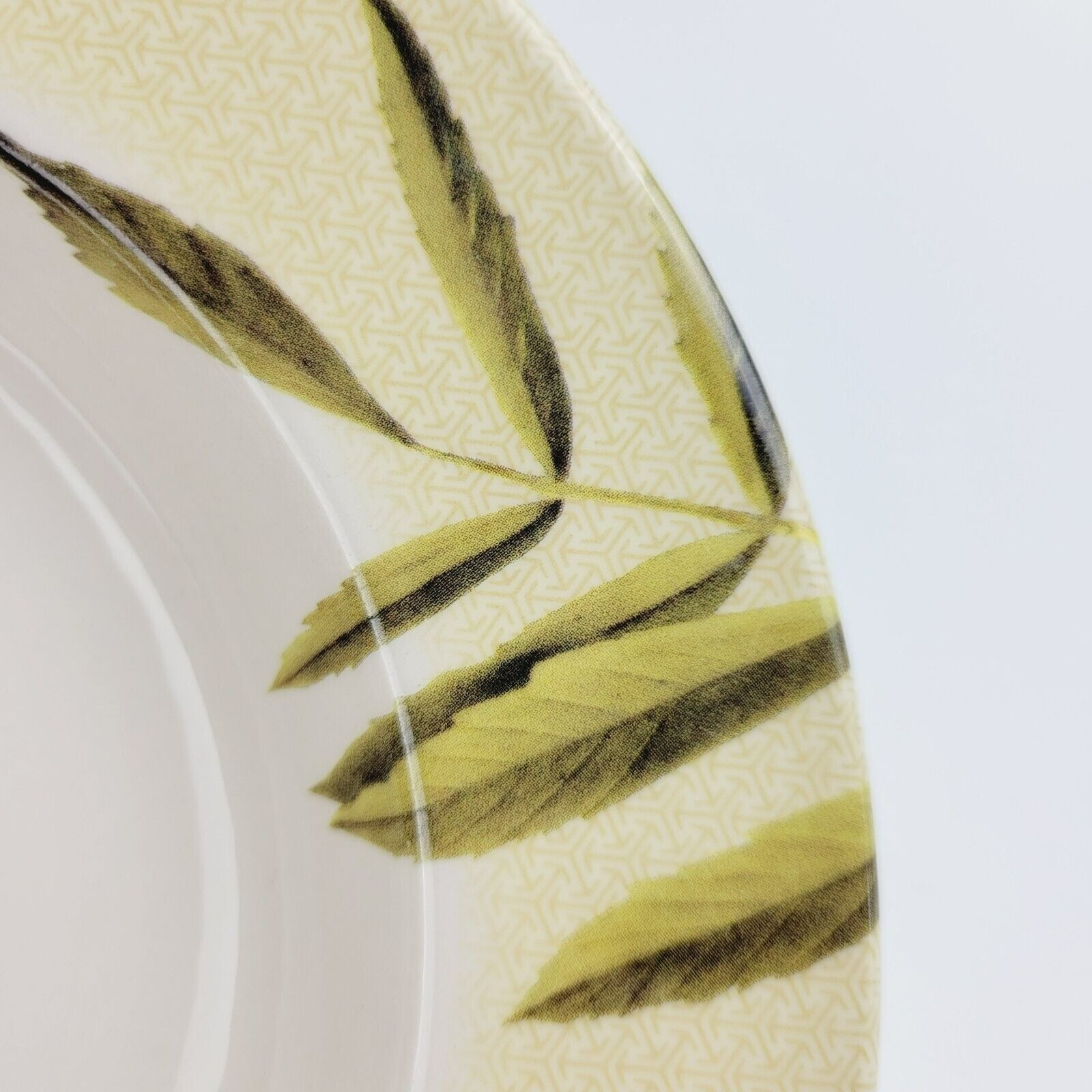 Spode Fruit Haven Rimmed Soup Bowl features a charming butterfly, bee, fruit, and leaves design. Perfect for fall dinnerware, this 9" porcelain bowl adds elegance to your table.