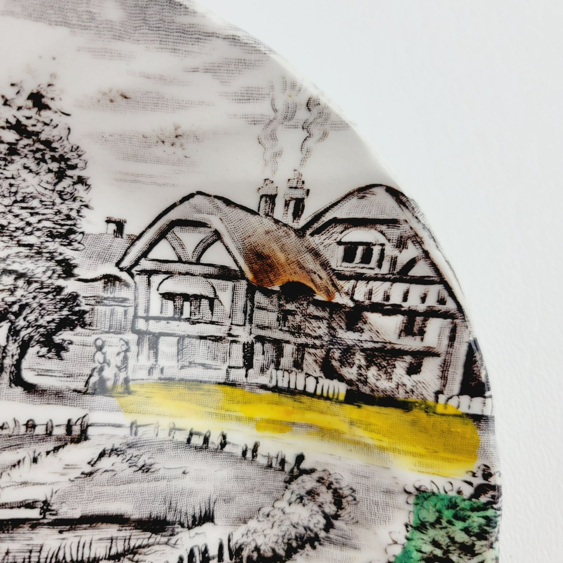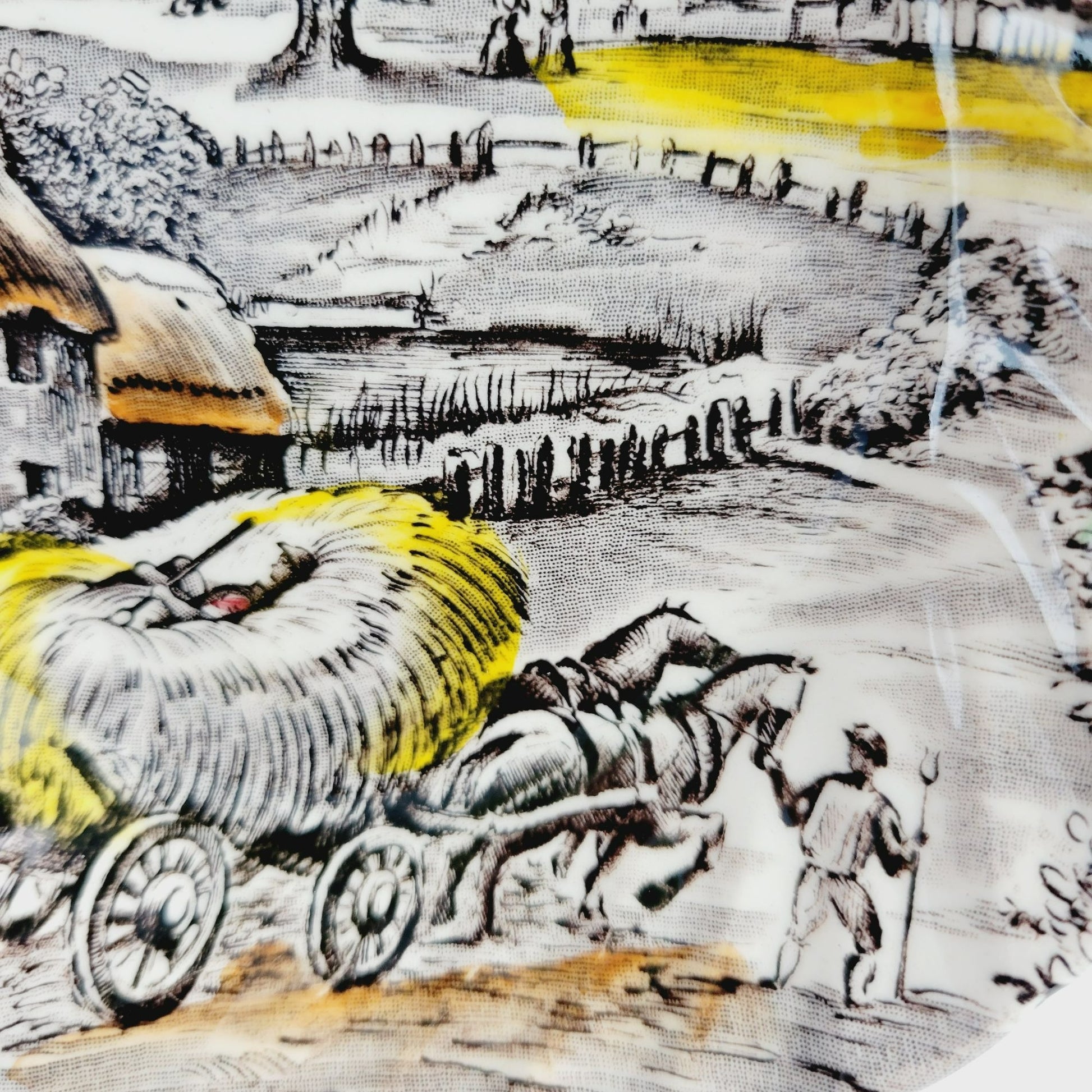 This Staffordshire Yorkshire dessert bowls showcases an English countryside farm scene. Crafted from durable ironstone, it features a beautiful brown multicolor design, perfect for collectors or everyday use.