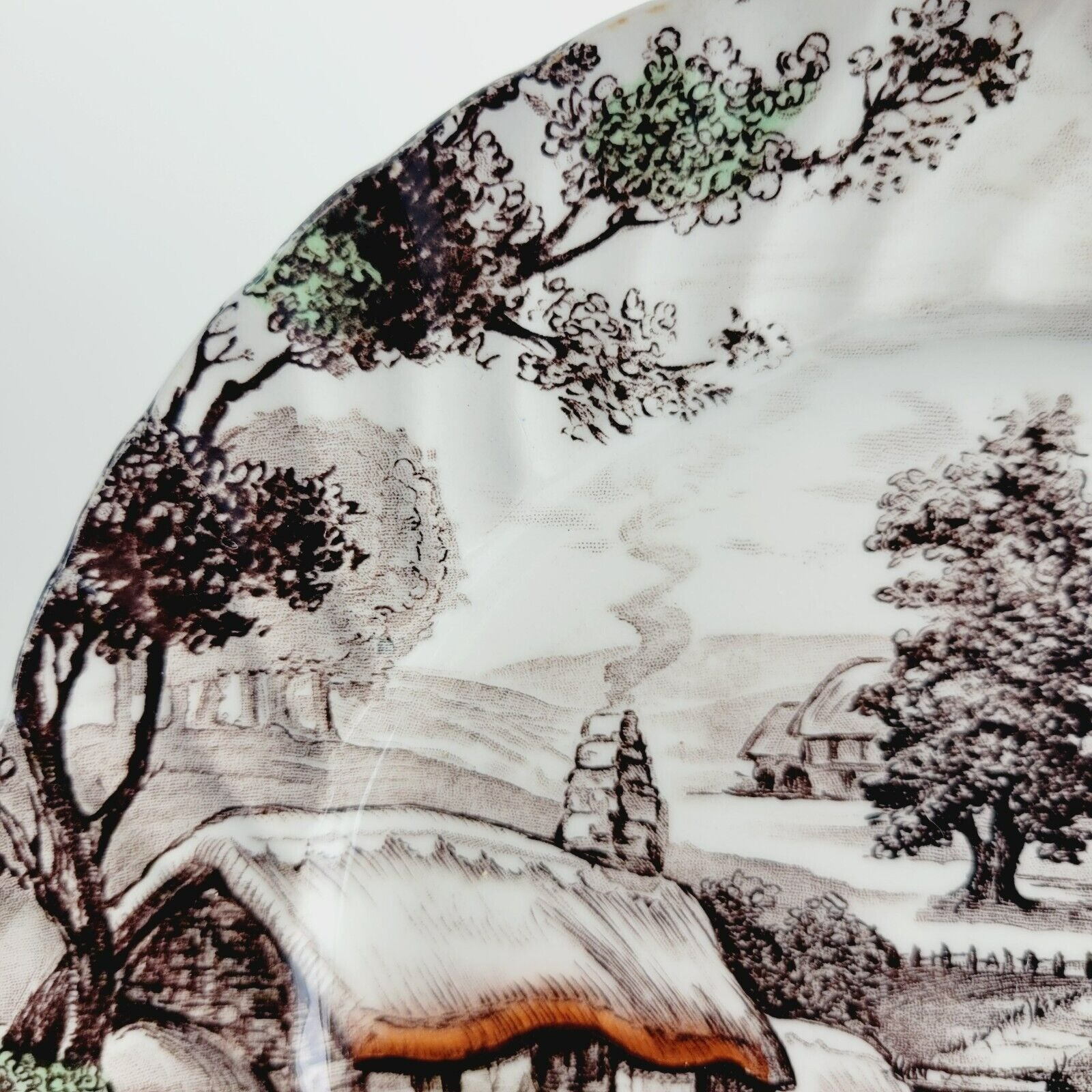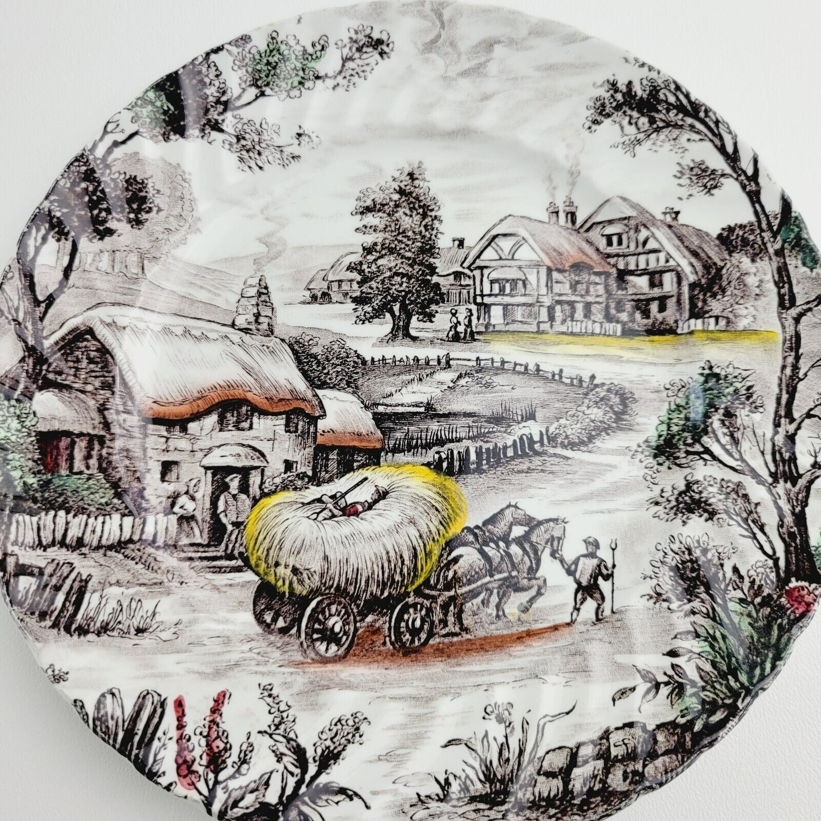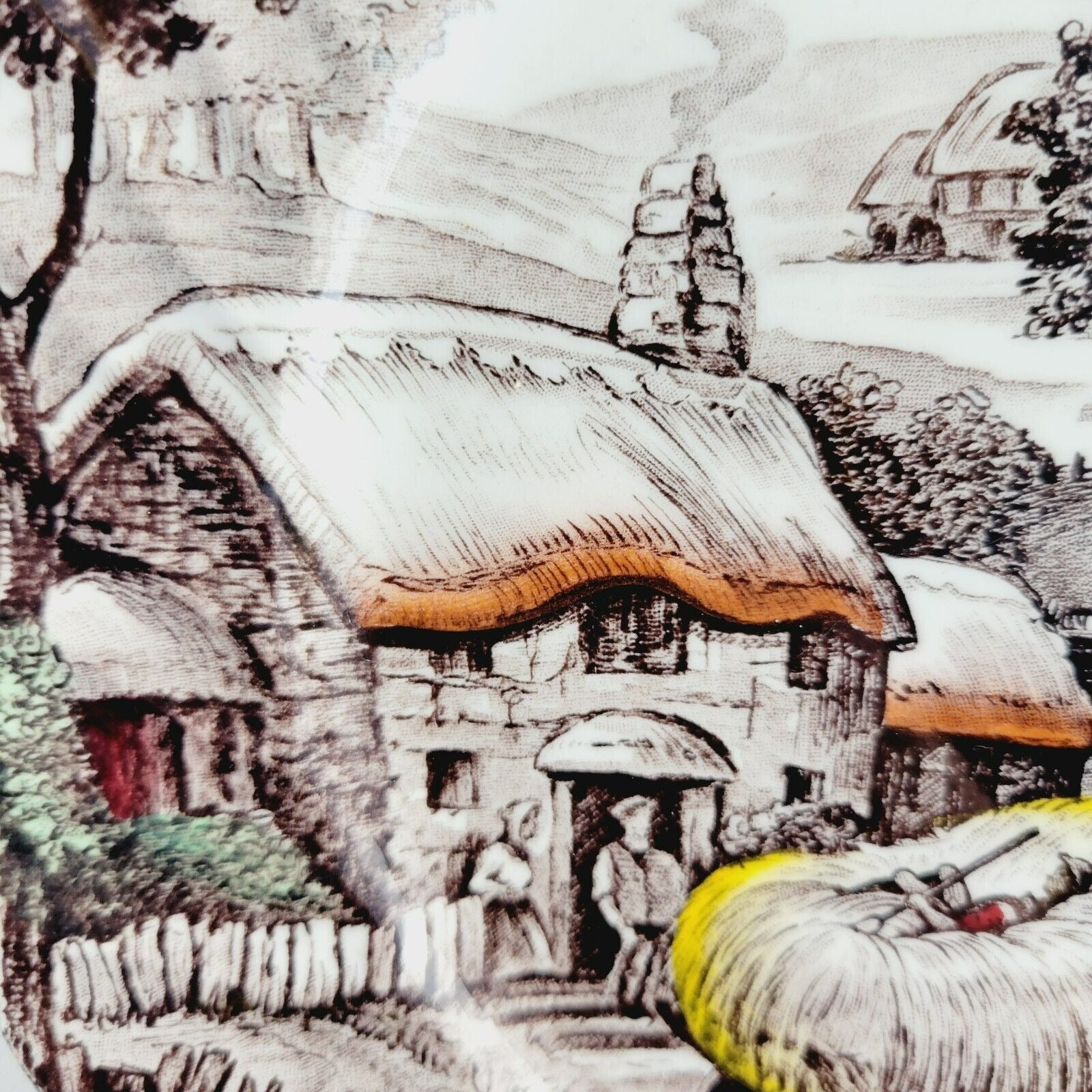 This Staffordshire Yorkshire plates showcases an English countryside farm scene. Crafted from durable ironstone, it features a beautiful brown multicolor design, perfect for collectors or everyday use.