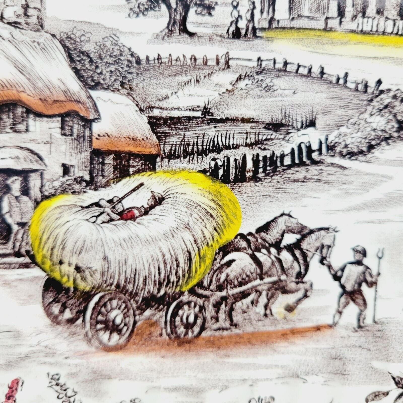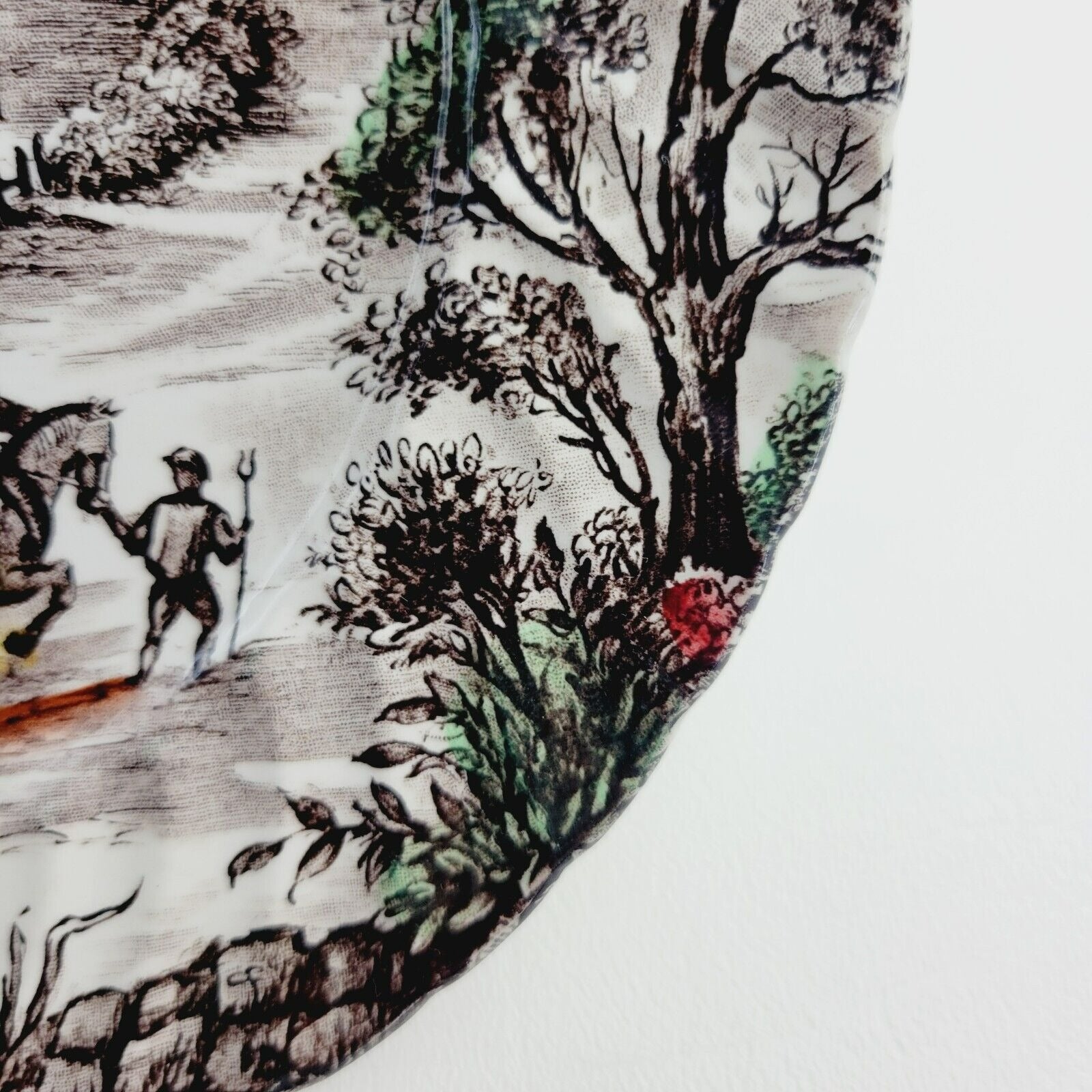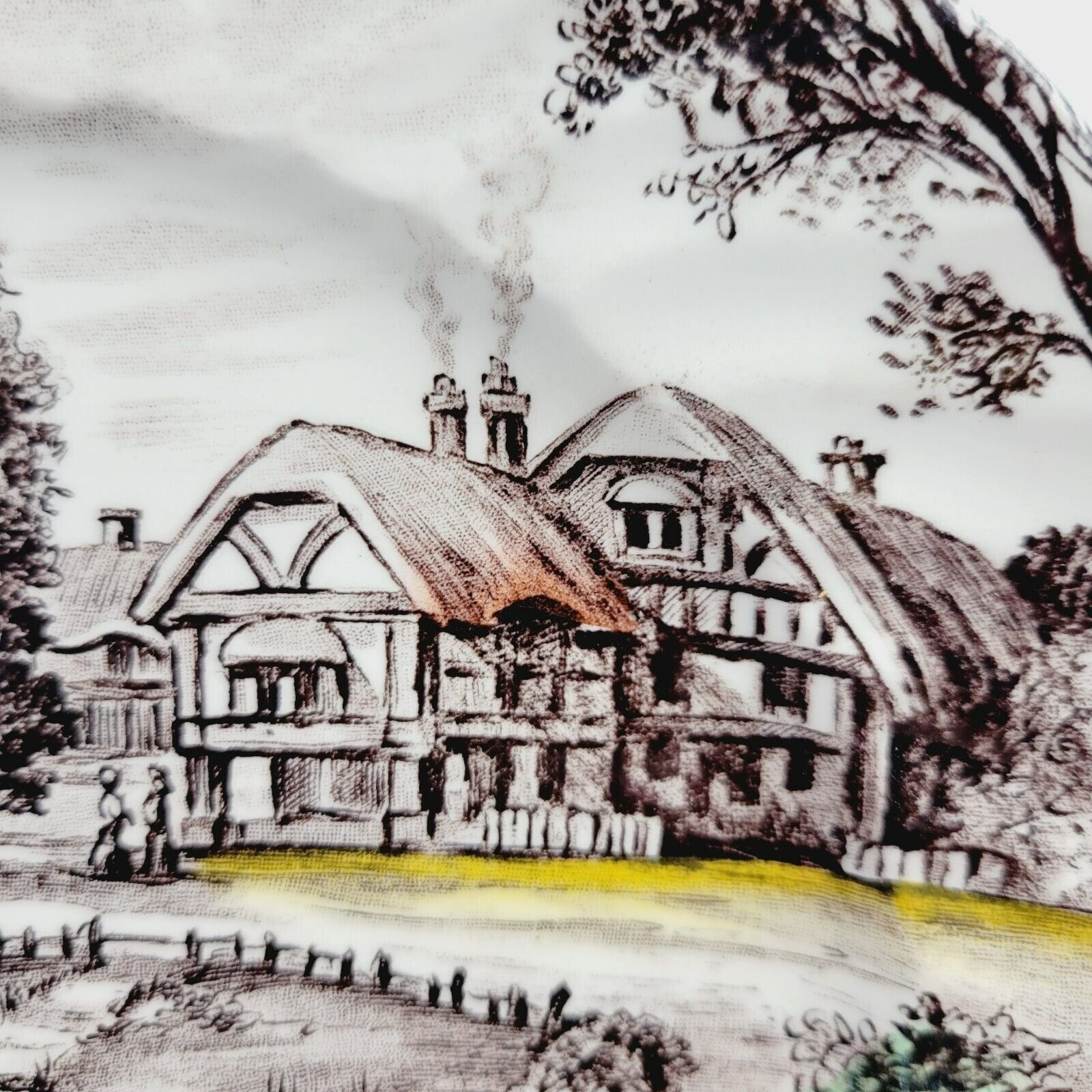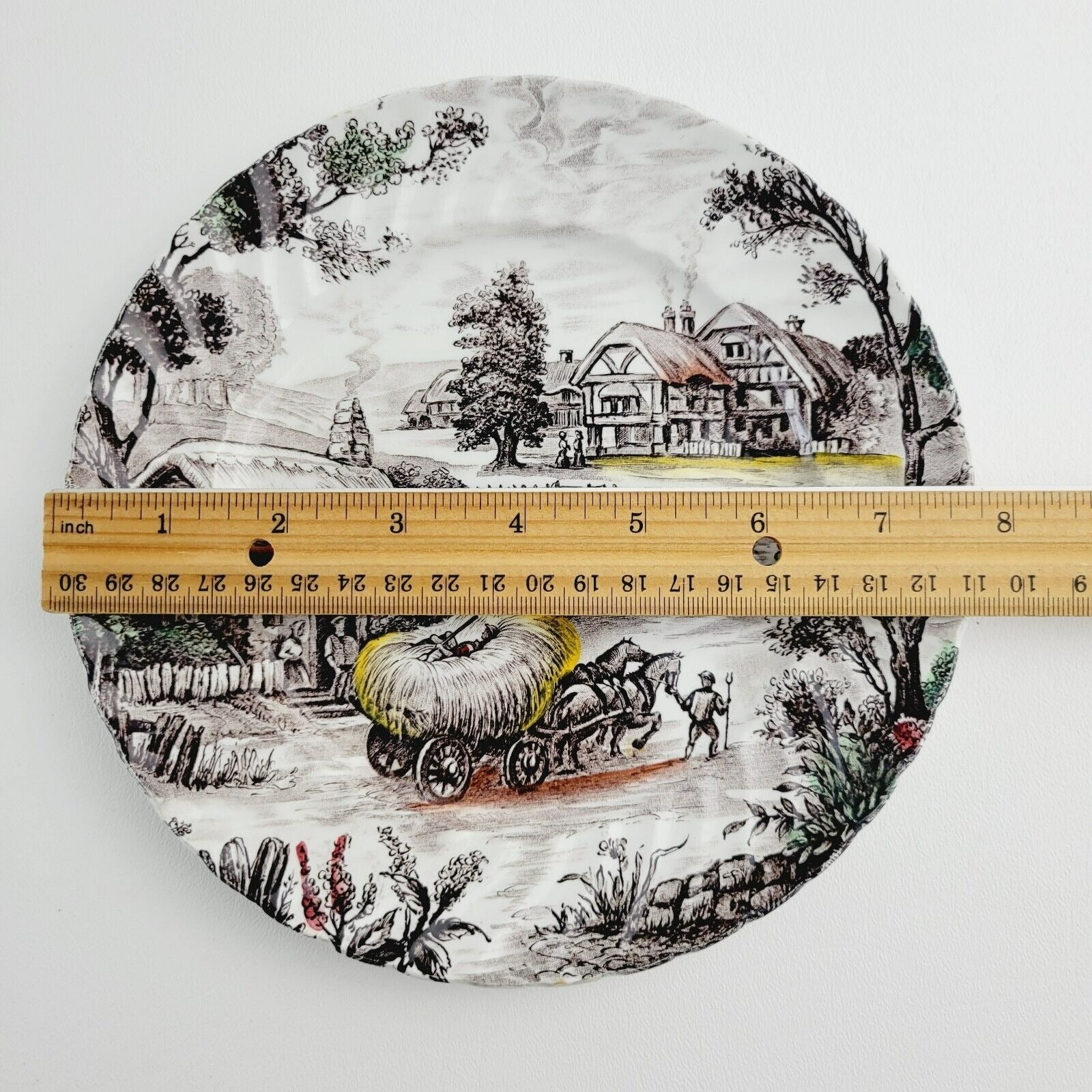 This Staffordshire Yorkshire plates showcases an English countryside farm scene. Crafted from durable ironstone, it features a beautiful brown multicolor design, perfect for collectors or everyday use.