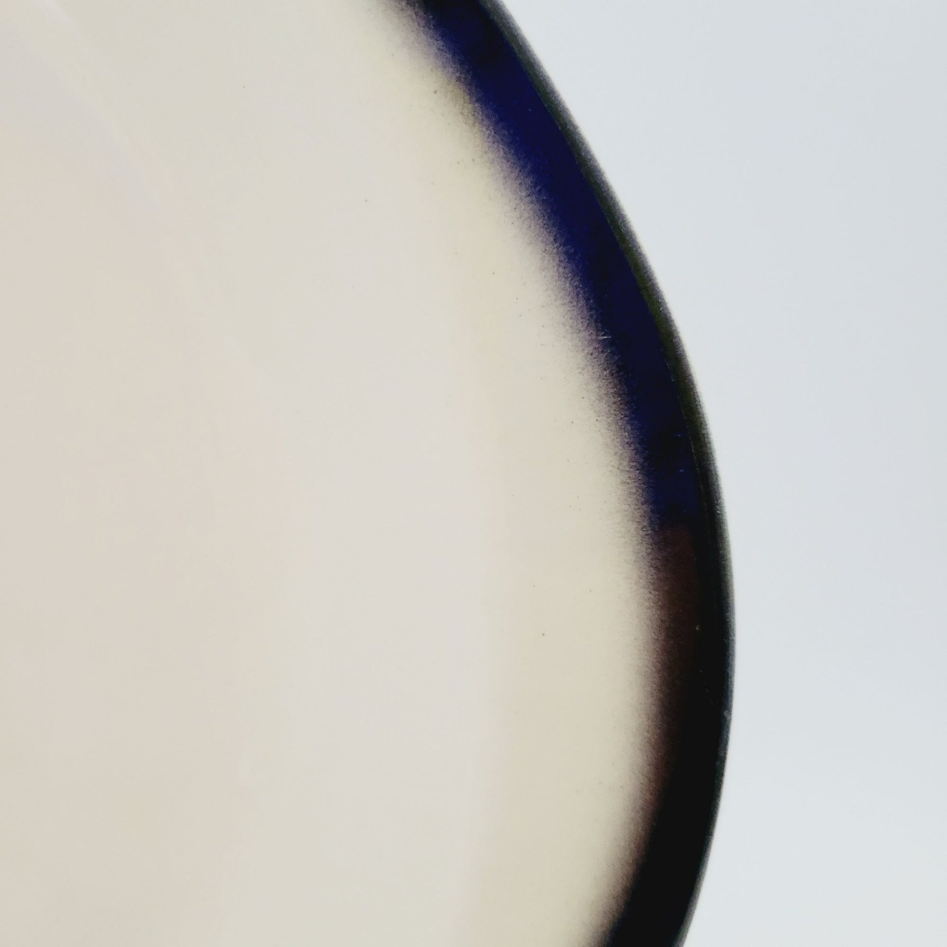 This Stetson Potteries Fuchsia Pink & Black 11" Oval Platter is a stunning piece of 1960s dinnerware. With its pink floral design, fading black edge, and crazing effect, it brings a touch of retro mid-century modern style to any table.