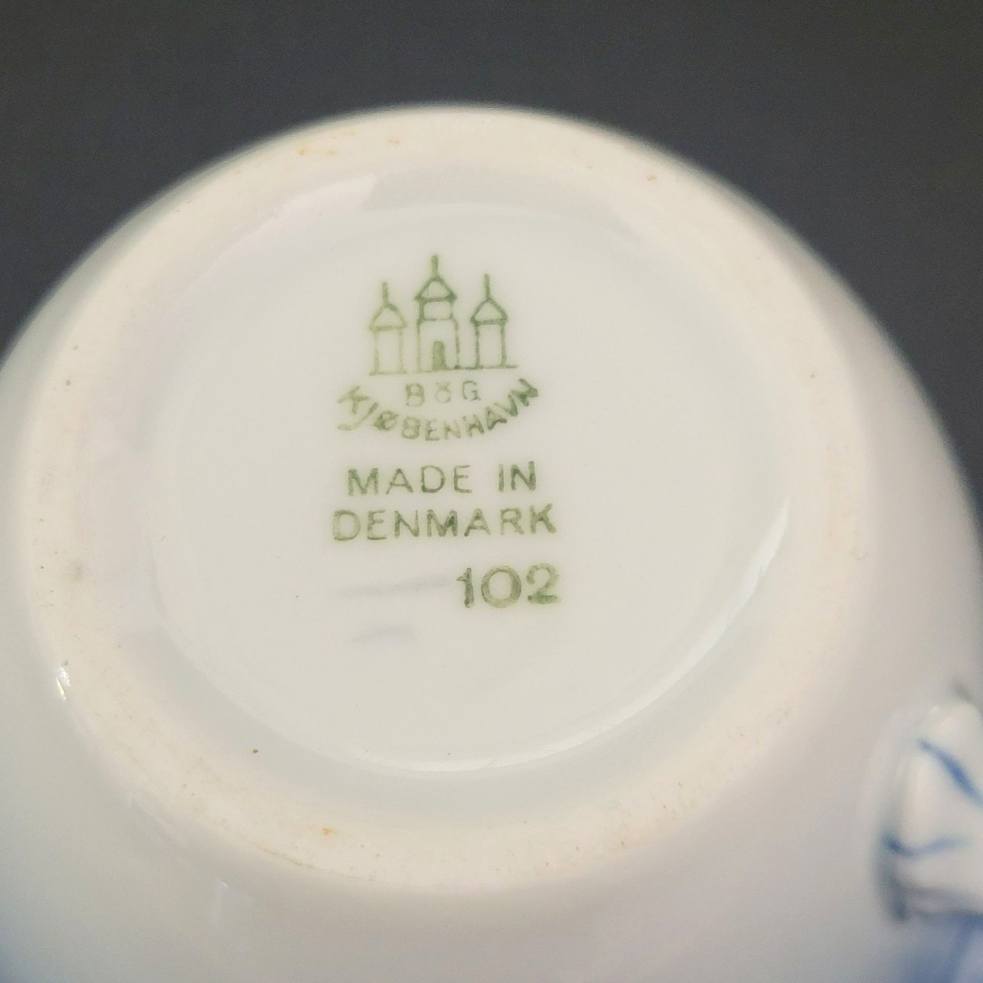 Bing & Grondahl Seagull Espresso Cup Set, Blue & White Ombre, Embossed with Gold Trim, Made in Denmark