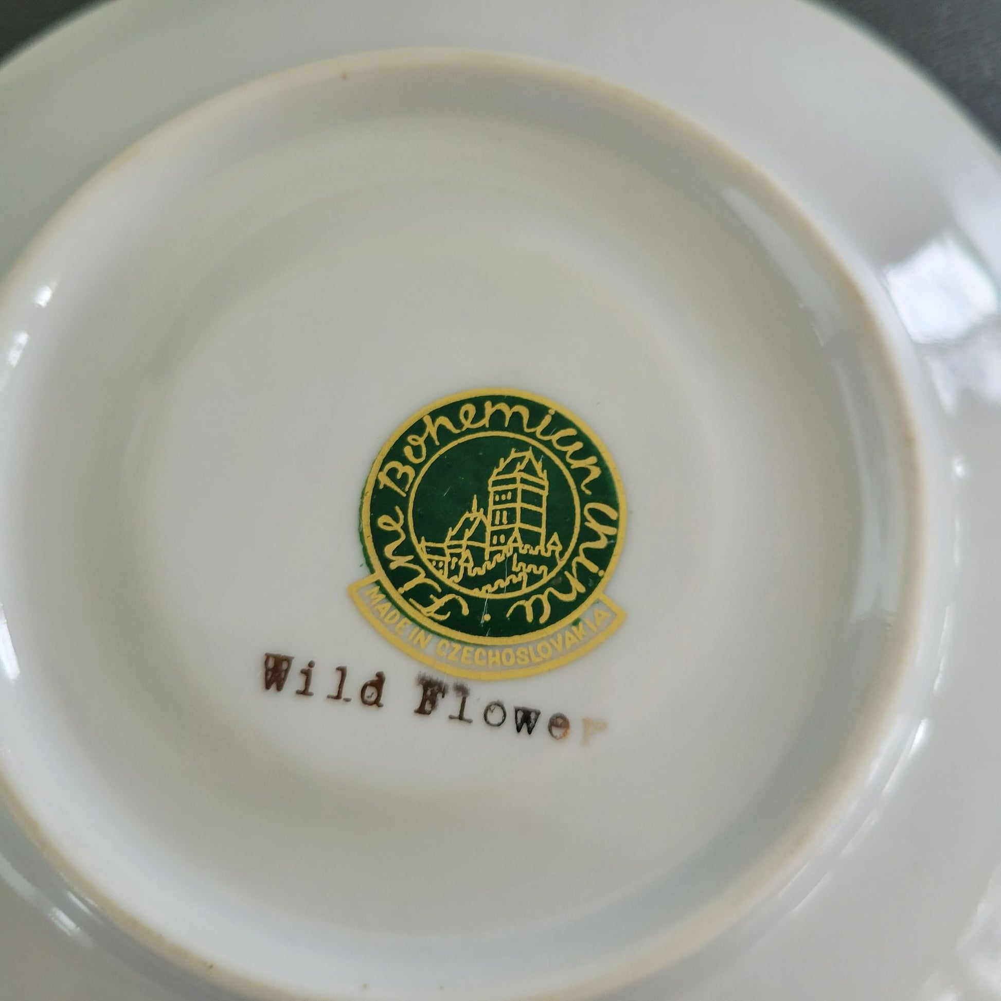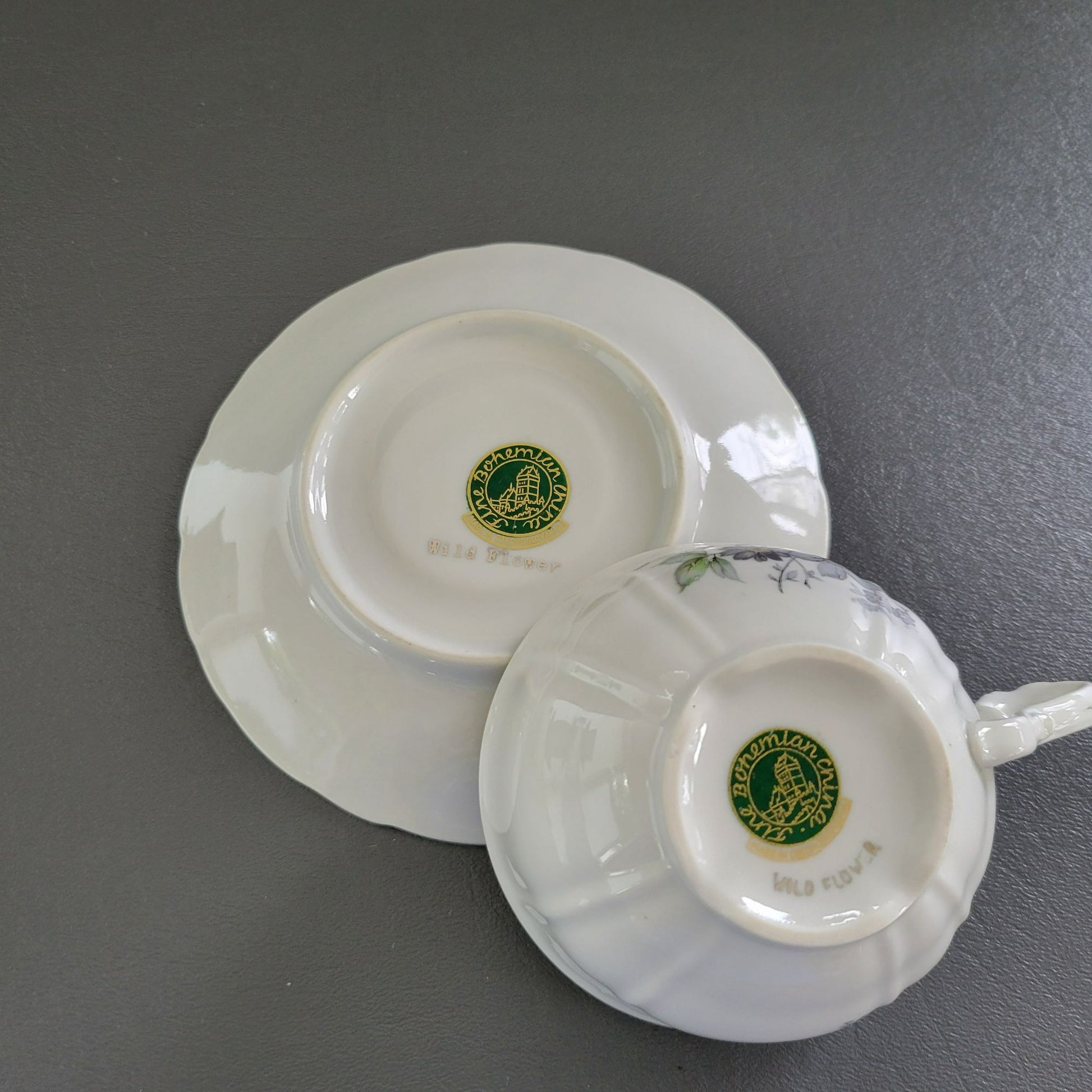 Bohemian China Wild Flower Teacup & Saucer, 2 Sets, Made in Czechoslovakia