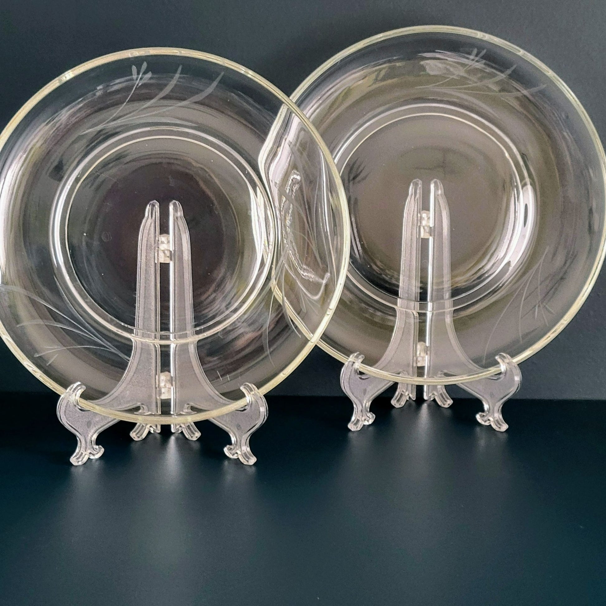 • Set of 2 etched clear glass plates