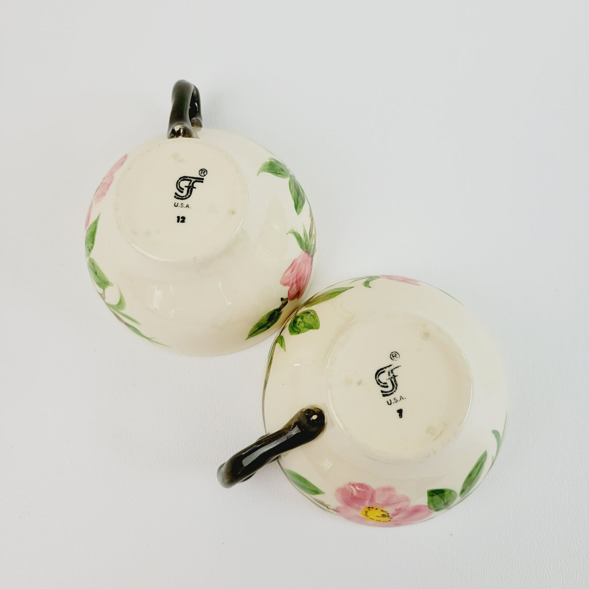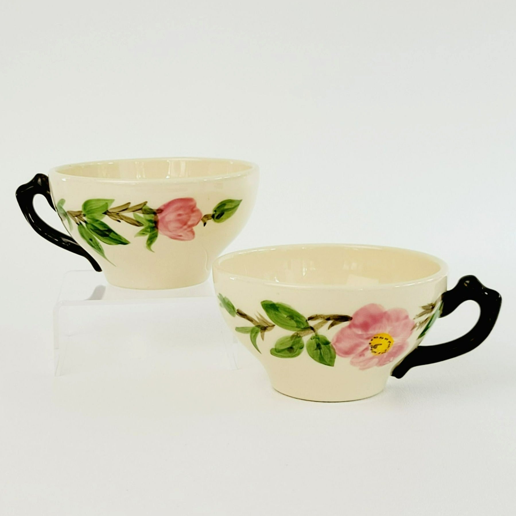 Franciscan Desert Rose Cups, Set of 2, Pink Floral Hand Painted & Embossed c.1979-84 USA