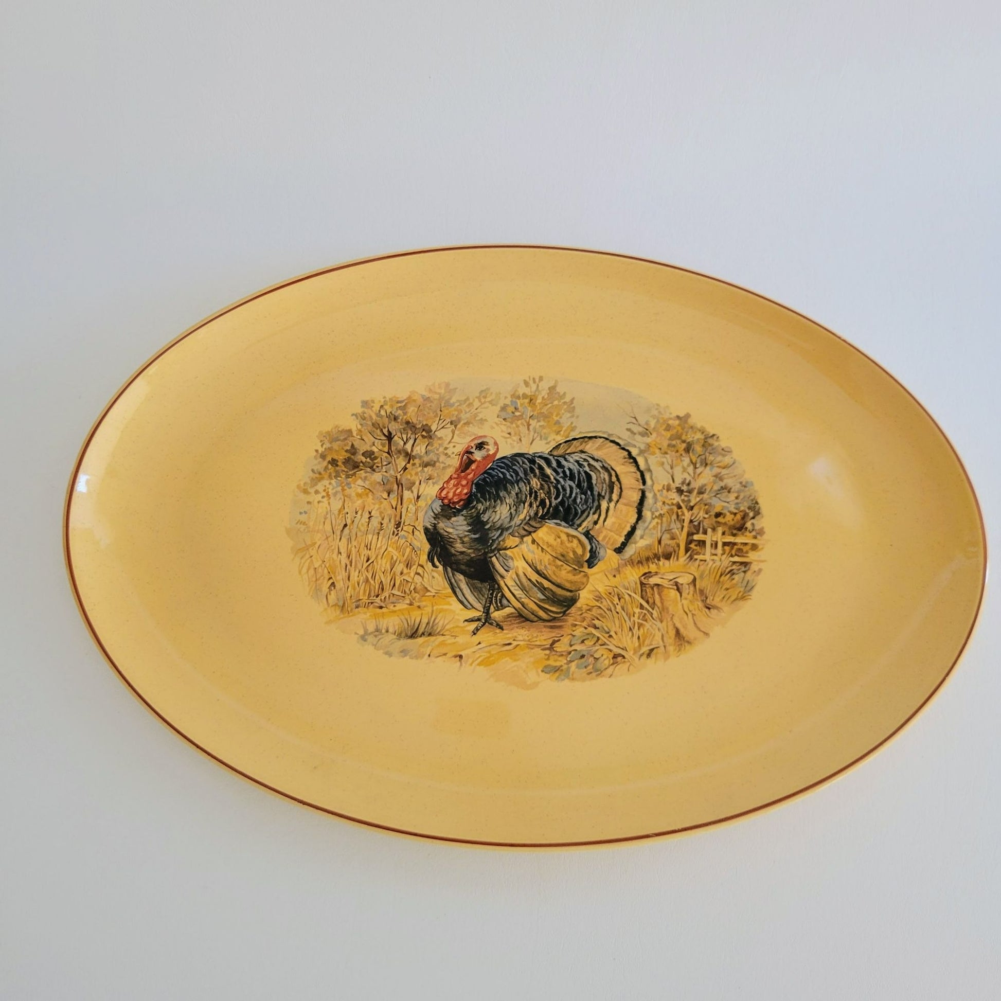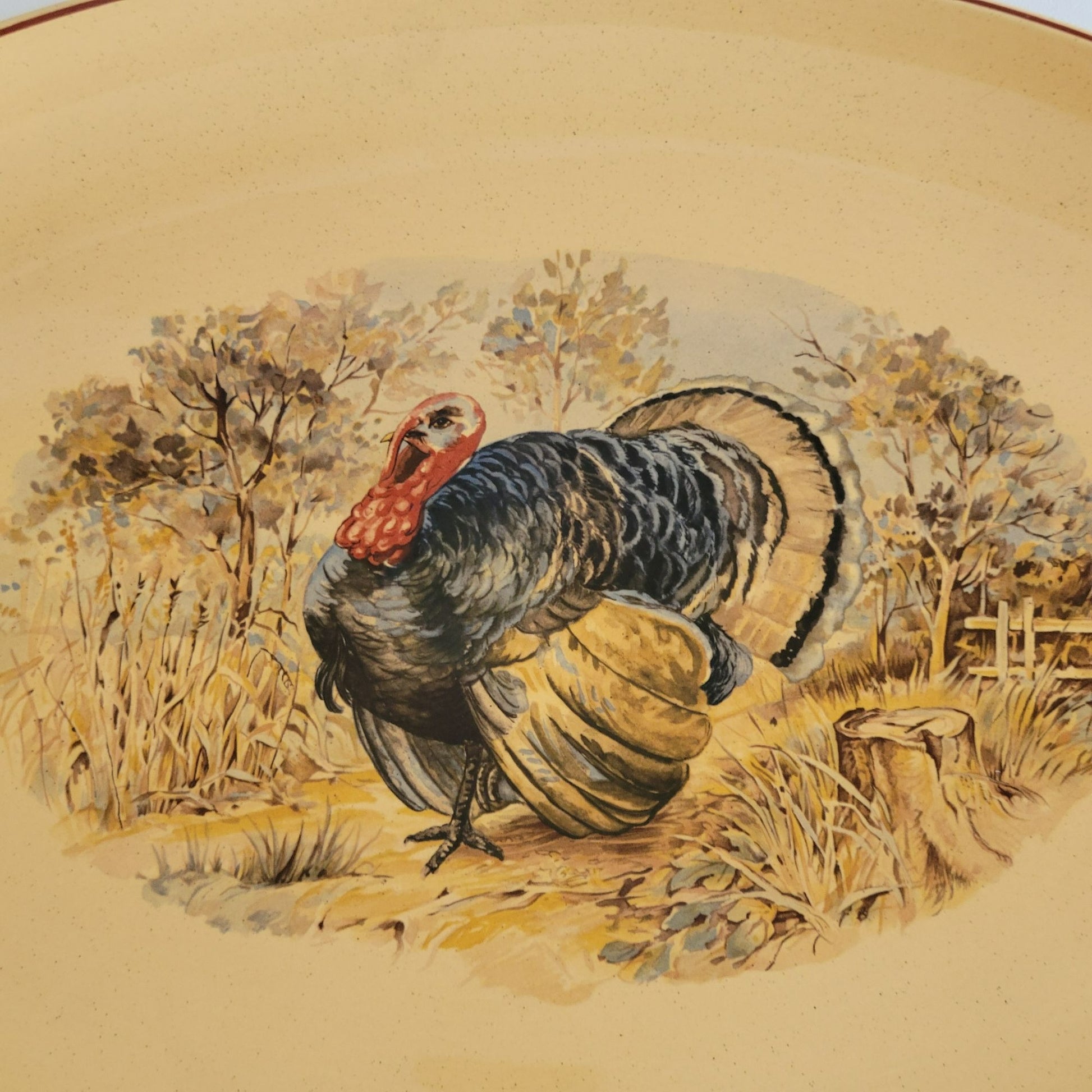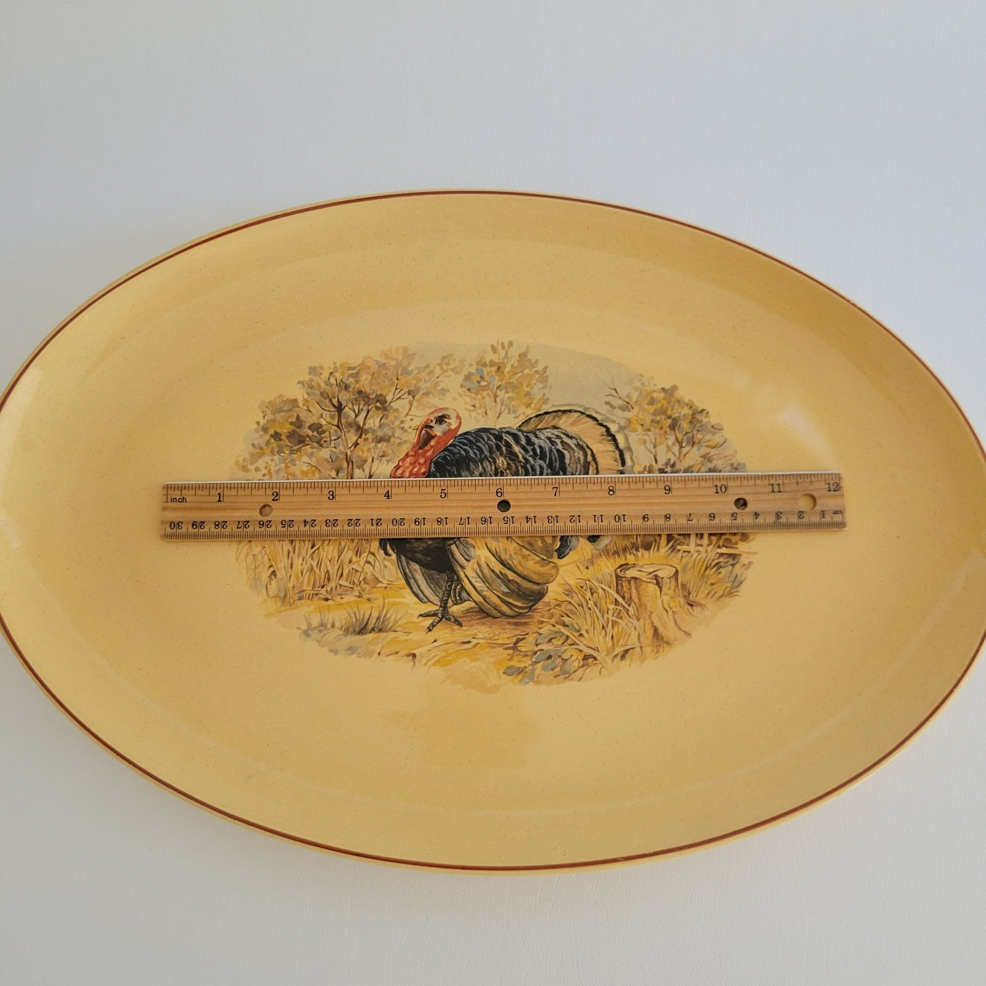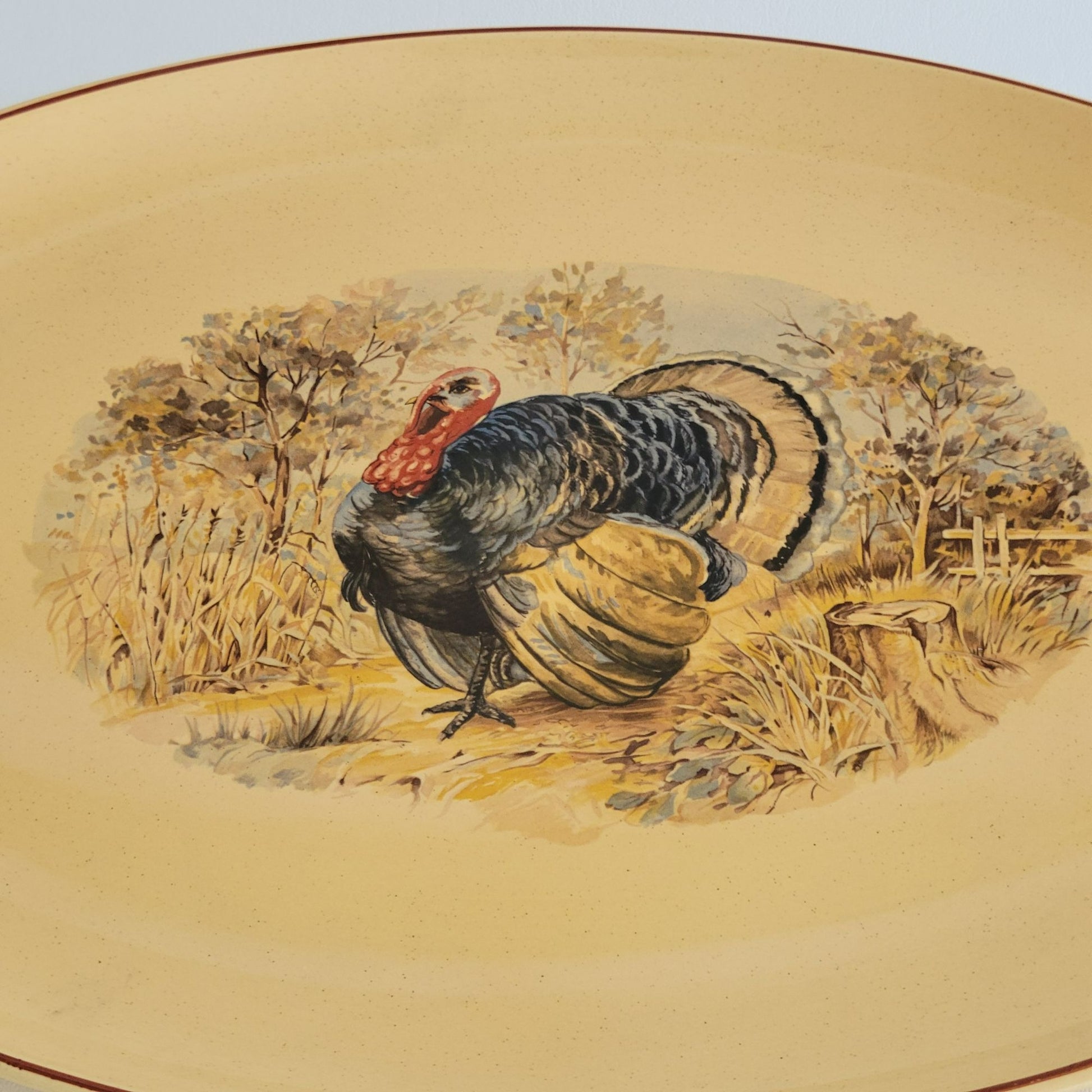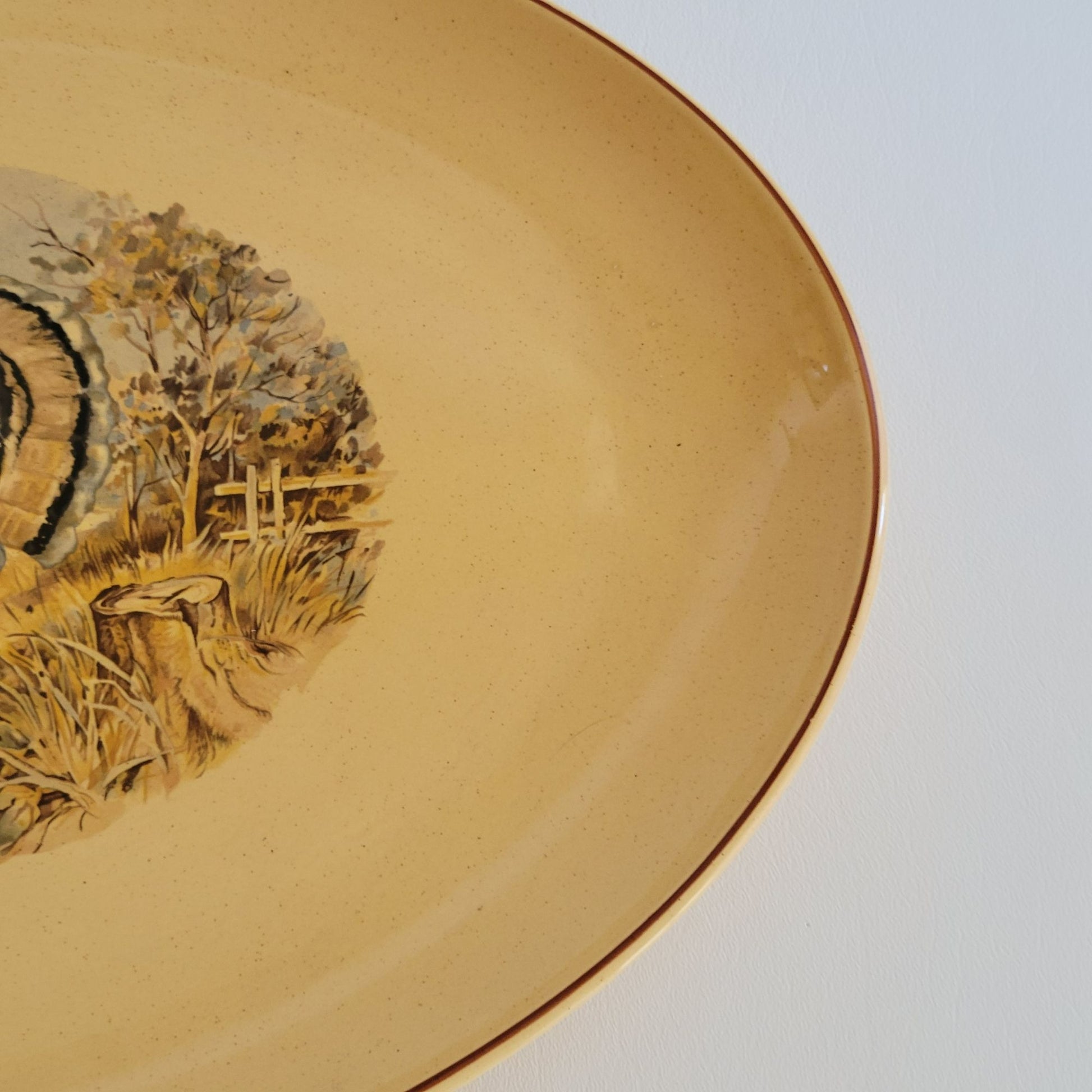 Vintage Hand-Painted Turkey 17" Oval Platter